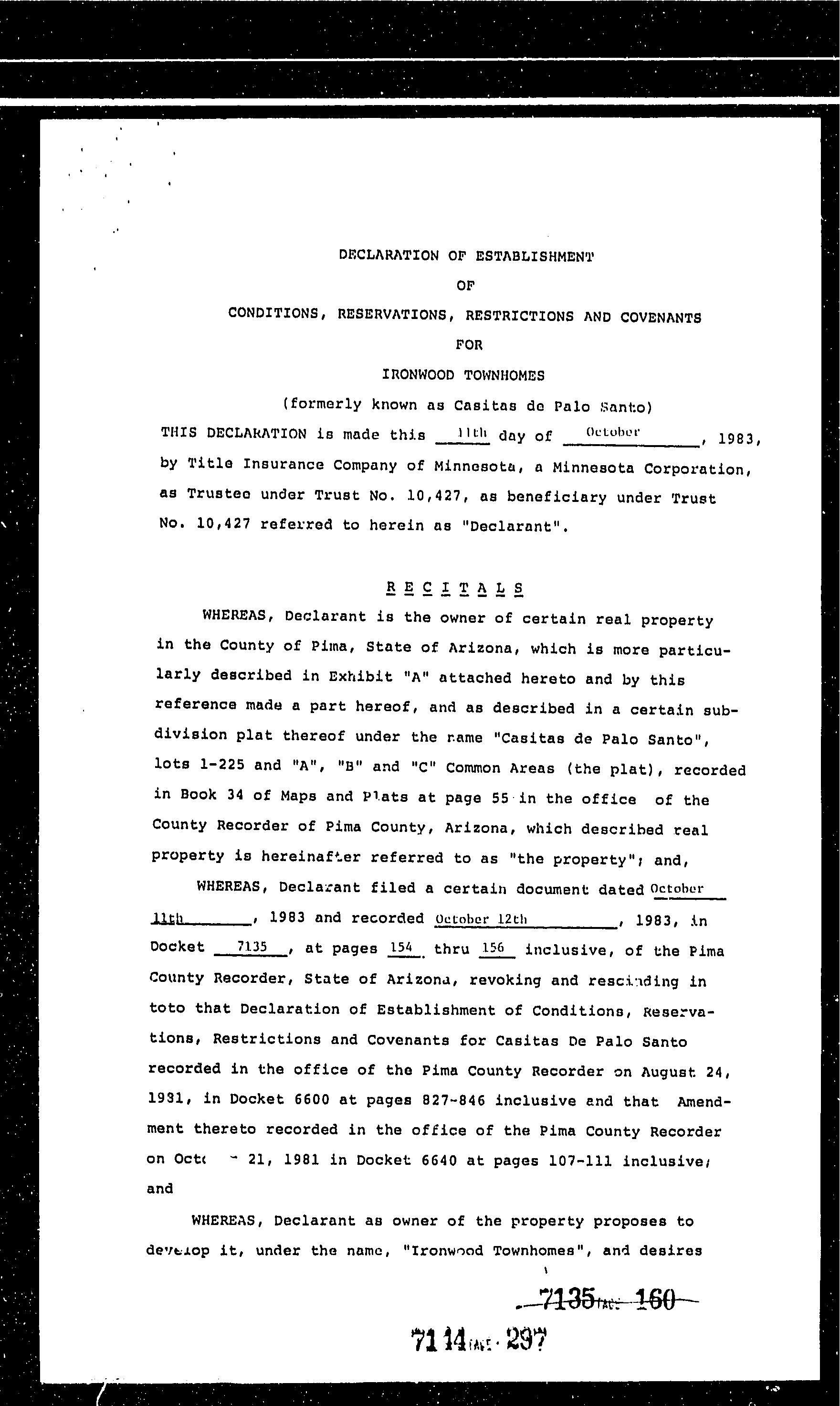 Legal Description : Casitas De Palo Santo (townhouses) Lot 10 County : Pima, Az APN : 103-21-0390
