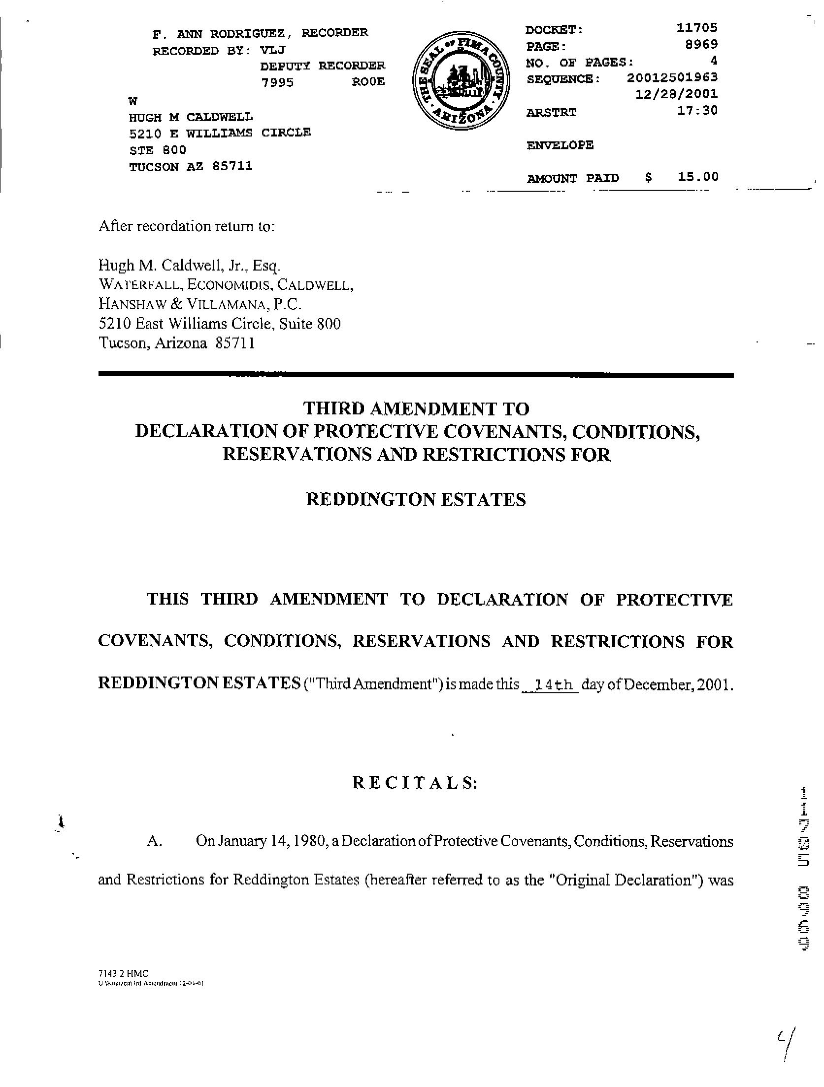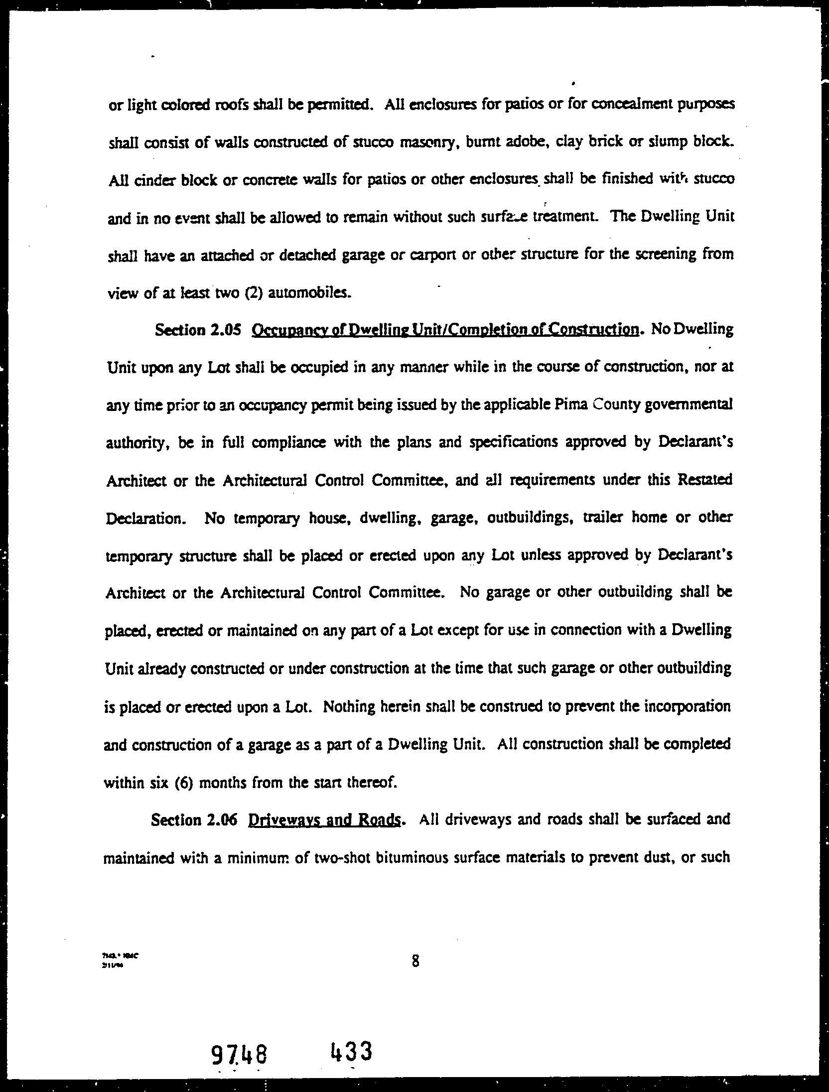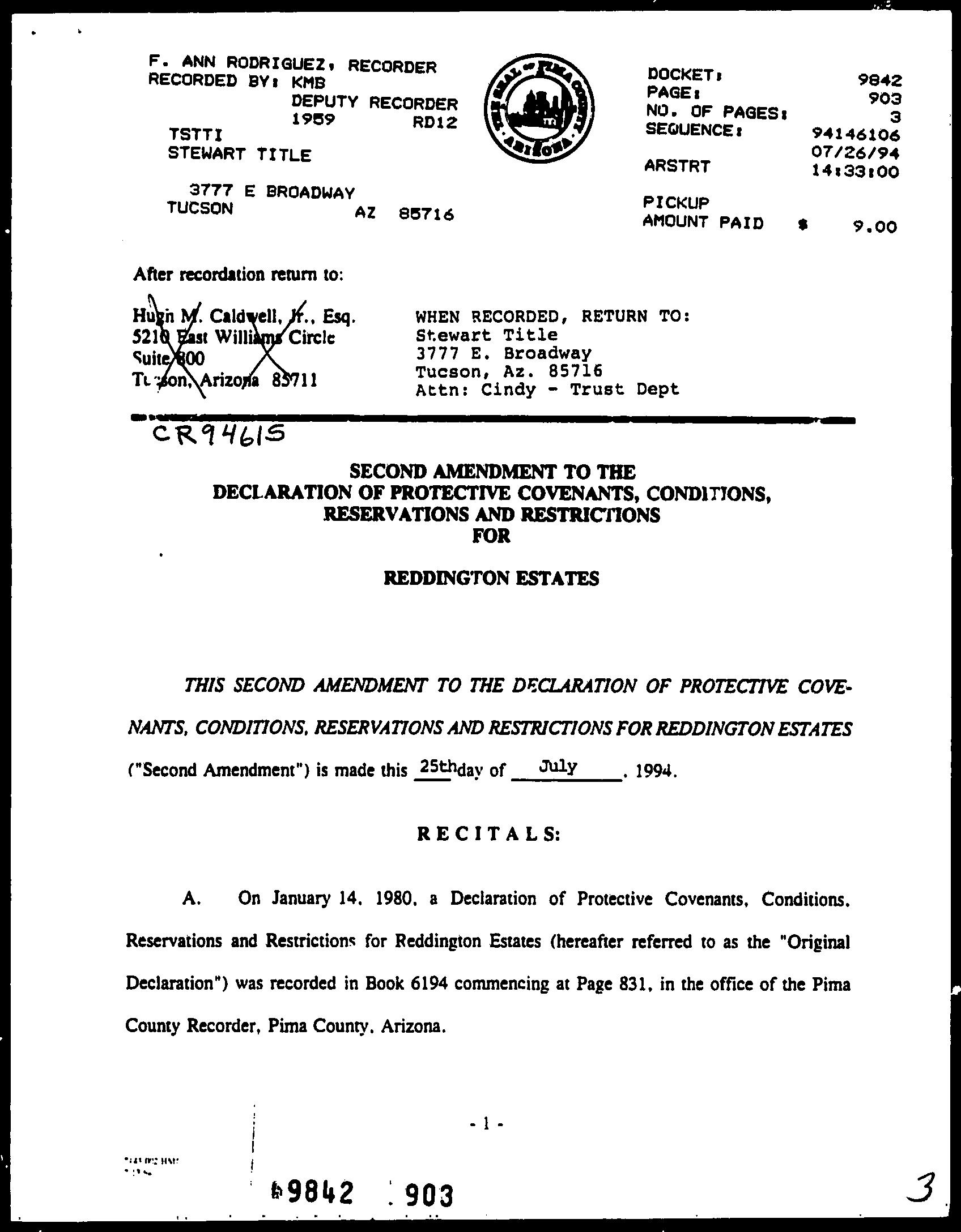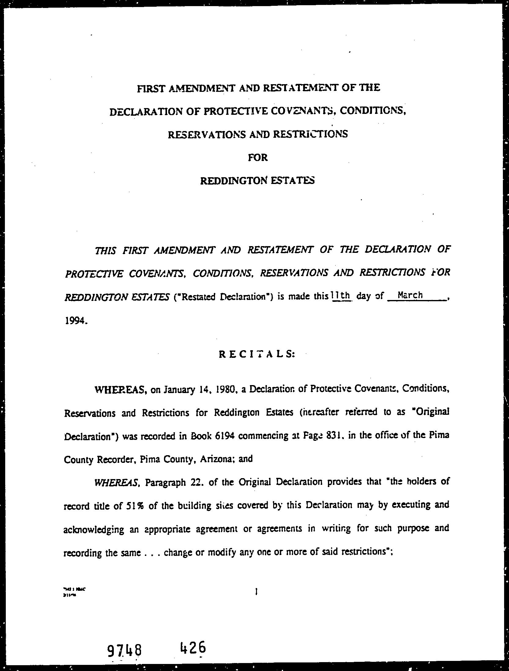 ConditionsCovenants,&Restrictions Thank you for the opportunity to be of service. Restrictions indicating a preference, limitation or discrimination based on race, color, religion, sex, handicap, familial status, or national origin are hereby deleted to the extent such restrictions violate 42 USC 3604(c). This information is furnished without fee and without benefit of a complete title search. No liability is assumed by First American Title or Title Security. If it is desired that liability be assumed, you may apply for a policy of title insurance with First American Title Insurance Company.