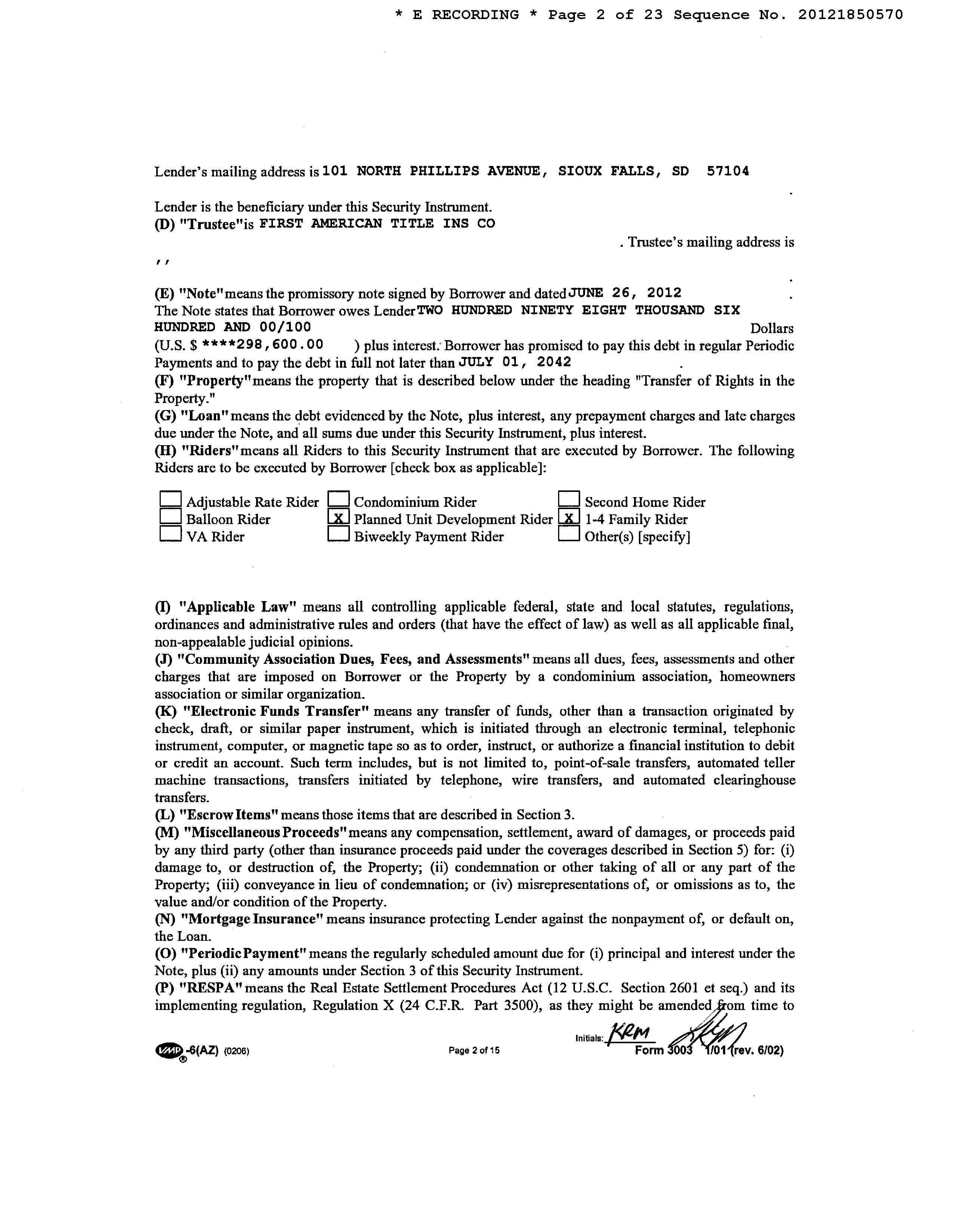 Subject Property : 2466 N Redington Pl Tucson AZ 85749 Owner Information Owner Name : Metz Karl R / Metz Linda K Mailing Address : 7072 Calle Jon Corte, Navarre FL 32566-8948 R005 Vesting Codes : / / Community Property Owner OccupiedIndicator : A Location Information Legal Description : Redington Estates Lot 4 County : Pima, Az APN : 205-38-1940 Census Tract / Block : 40.51 / 2 Subdivision : Redington Estates Township-Range- Sect : 13S-16E-32 Map Reference : 32-13S-16E Legal Book/Page : 31-97 School District : Tanque Verde Legal Lot : 4 Munic/Township : Tanque Verde Market Area : 13 Last Market Sale Information Recording/Sale Date : 08/05/2004 / 07/00/2004 1st Mtg Int. Rate/Type : / Fixed Rate Loan Sale Price : $449,000 1st Mtg Document # : 12359-4617 Document # : 12359-4614 1st Mtg Term : 30 Deed Type : Warranty Deed Price Per SqFt : $175.25 1st Mtg Amount/Type : $333,700 / Cnv 2nd Mtg Amount/Type : $92,850 / Conv Title Company : First American Title Lender : Wells Fargo Bk Seller Name : Cendant Mobility Financial Prior Sale Information Prior Rec/Sale Date : 08/03/1995 / 08/00/1995 Prior Lender : Long Bch Mtg Co Prior Sale Price : $239,000 Prior 1st Mtg Amt/Type : $203,000 / Conv Prior Doc Number : 10099-1444 Prior 1st Mtg Rate/Type : / Fixed Rate Loan Prior Deed Type : Joint Tenancy Deed Customer Name : Lisa Mrazek Customer Company Name : First American Title Insurance Company Prepared On : 08/26/2022 © 2022 CoreLogic. All rights reserved