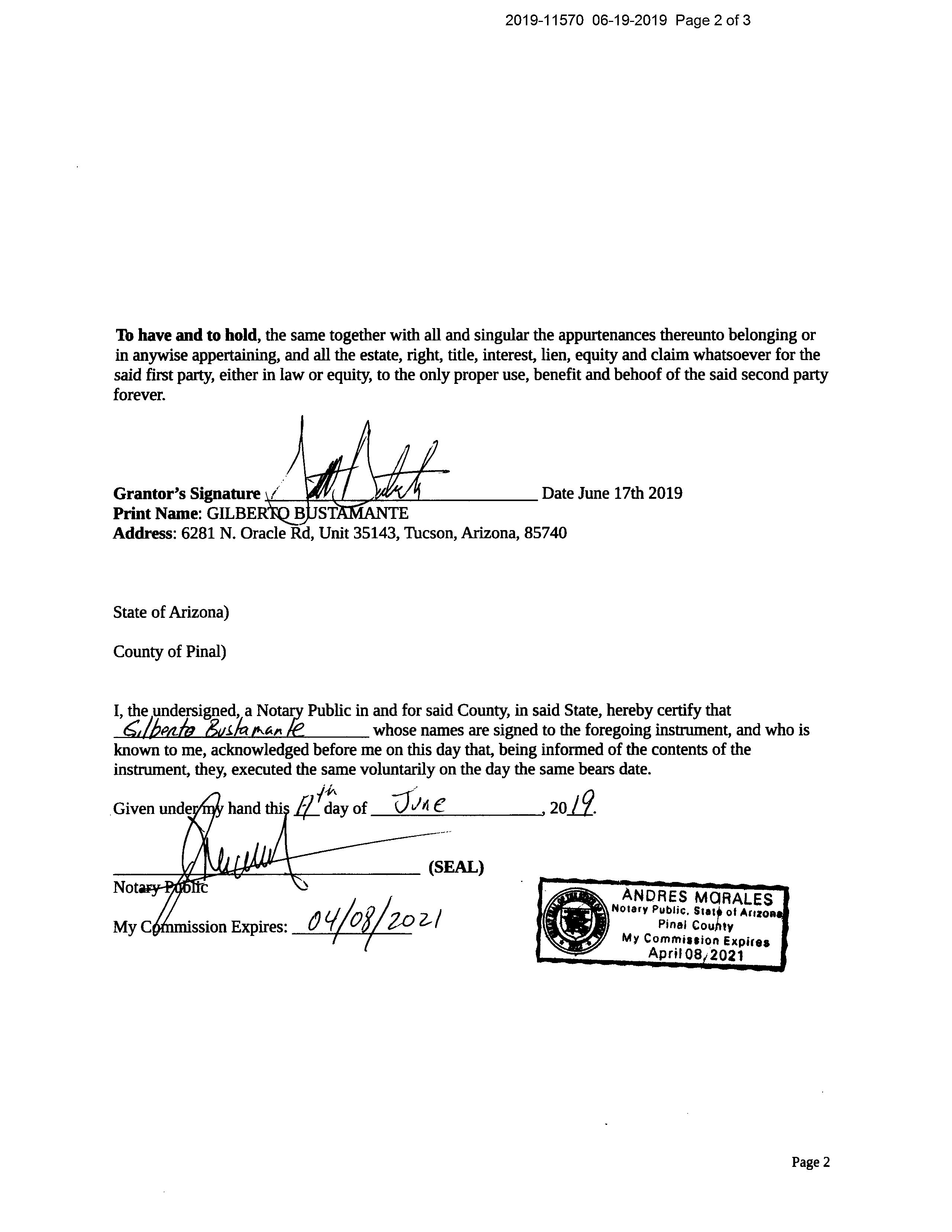 Recording/Sale Date : 11/28/2018 / 10/25/2018 Deed Type : Quit Claim Deed Document # : 21841