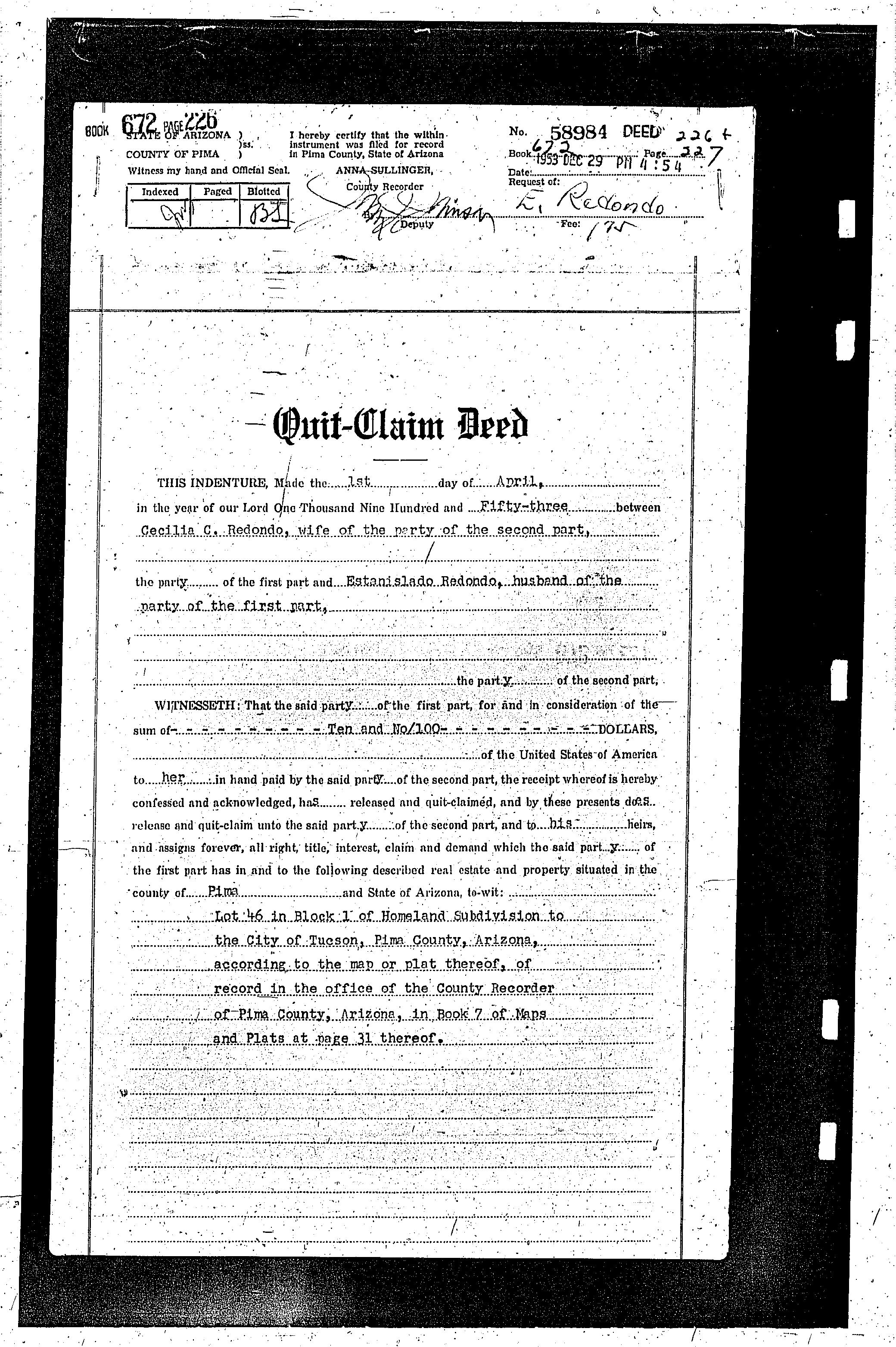 Recording/Sale Date : 12/29/1953