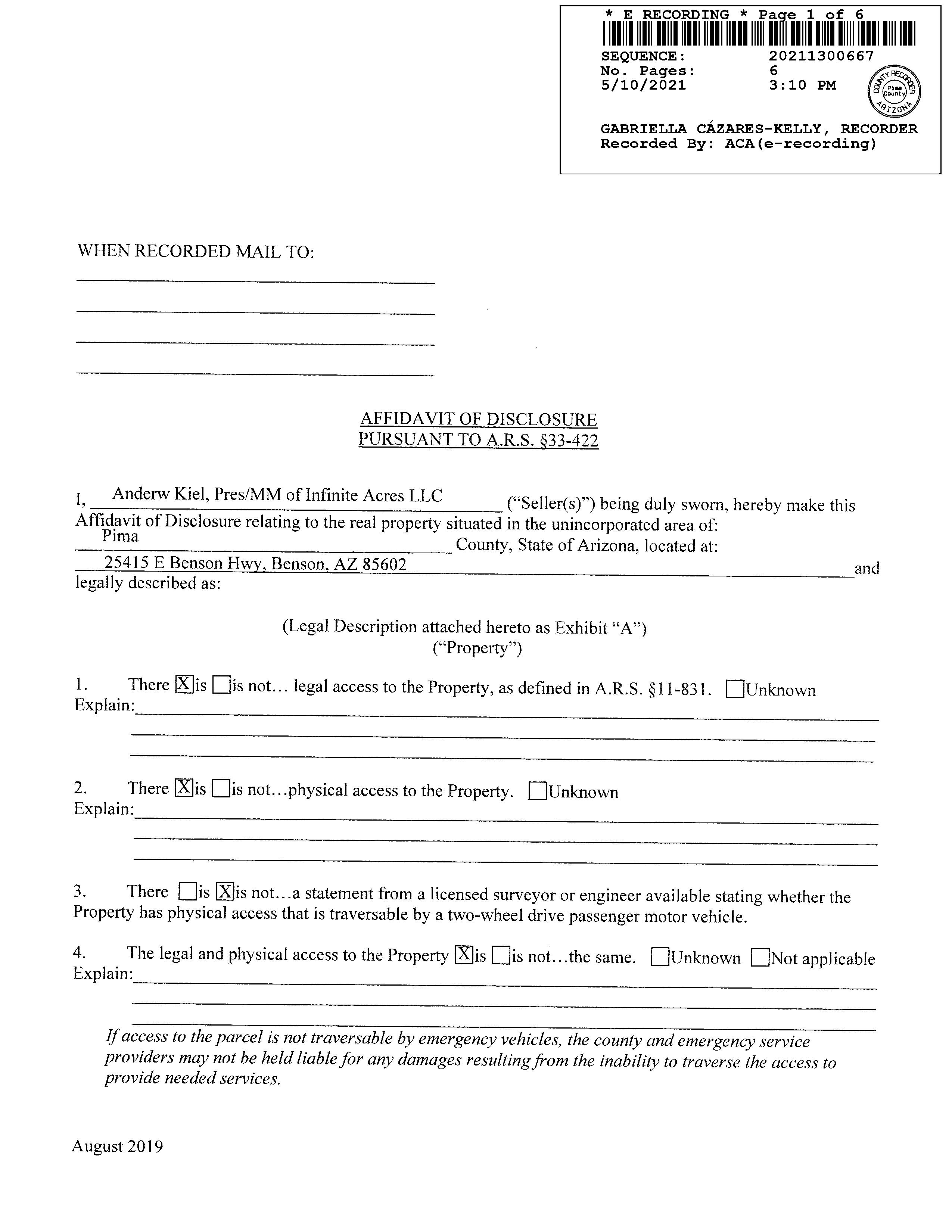 Subject Property : 25415 E Benson Hwy Benson AZ 85602