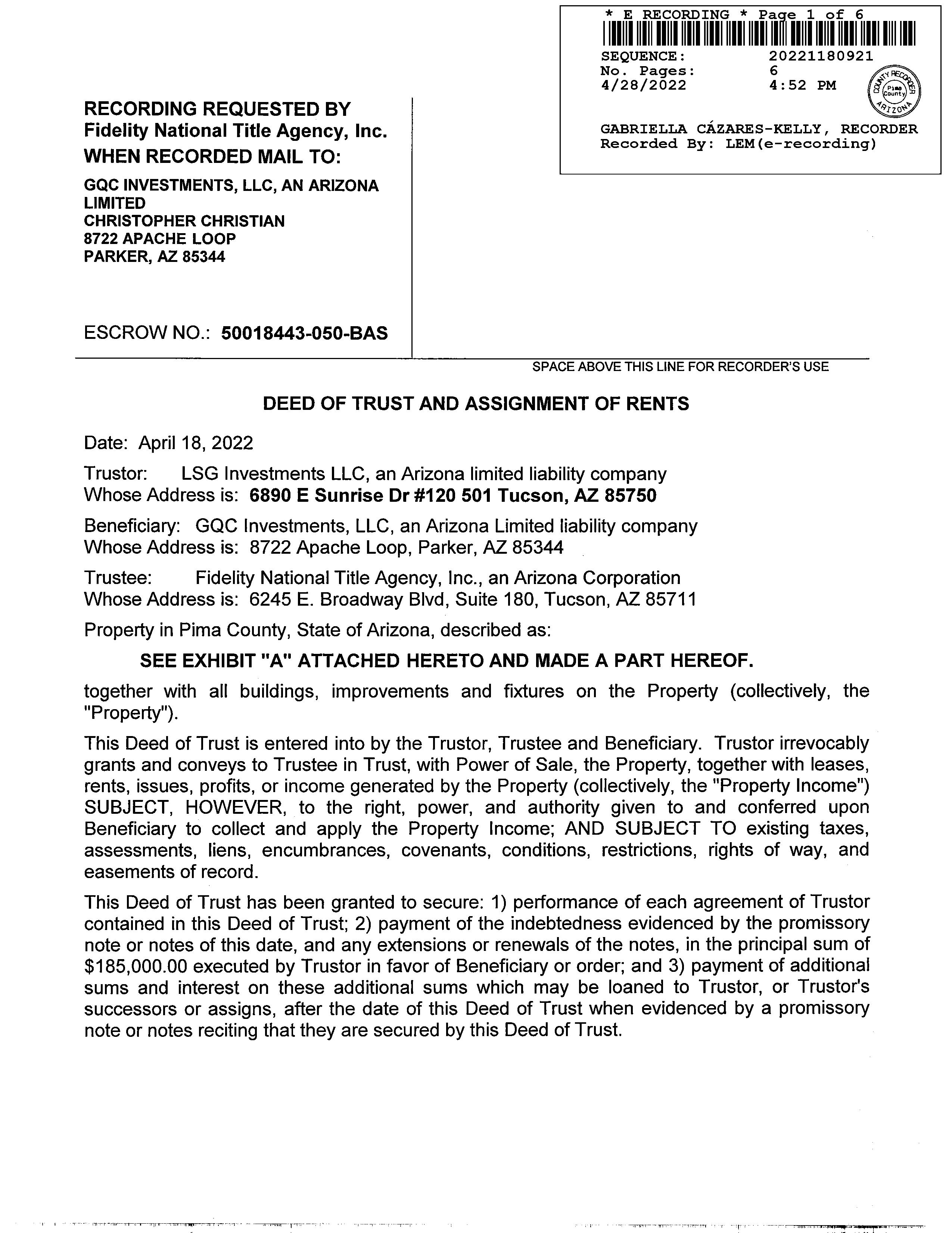 Recording/Sale Date : 04/28/2022 / 04/18/2022 1st Mtg Amount/Type : $185,000 / Pp