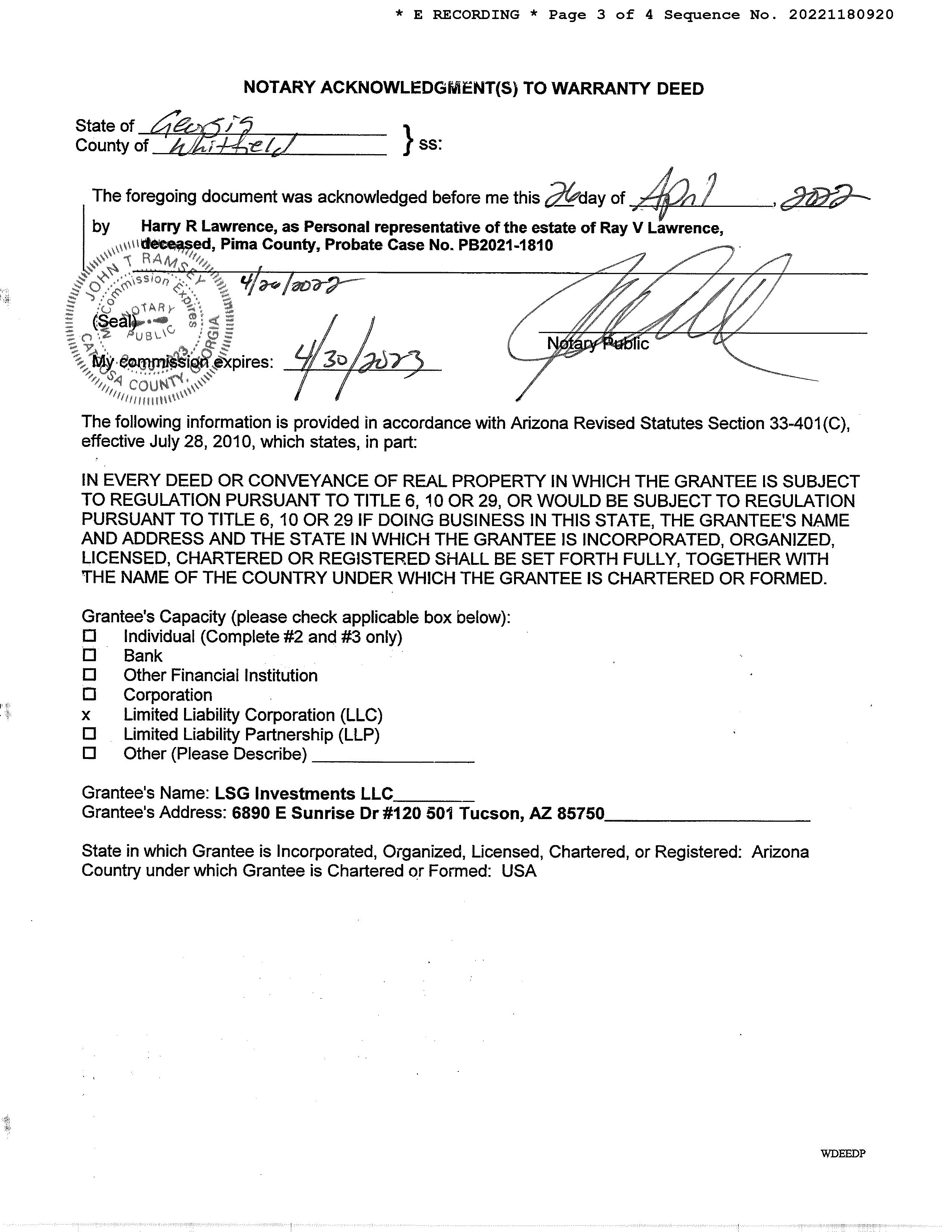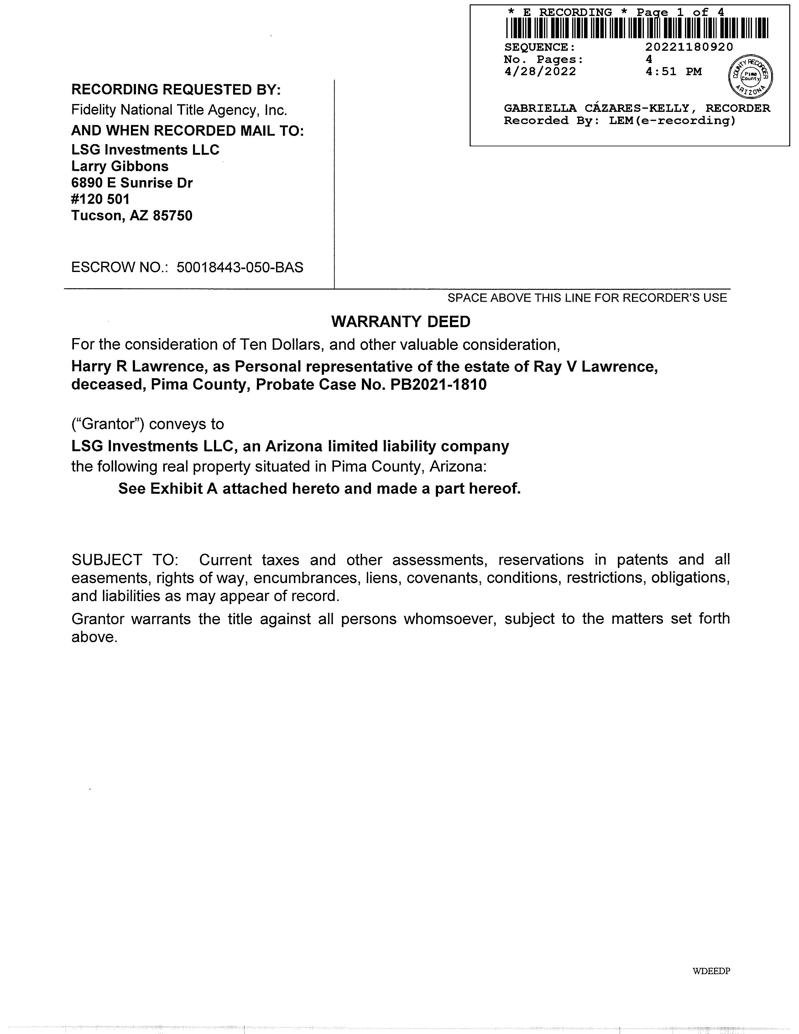 Deed Type : Warranty Deed