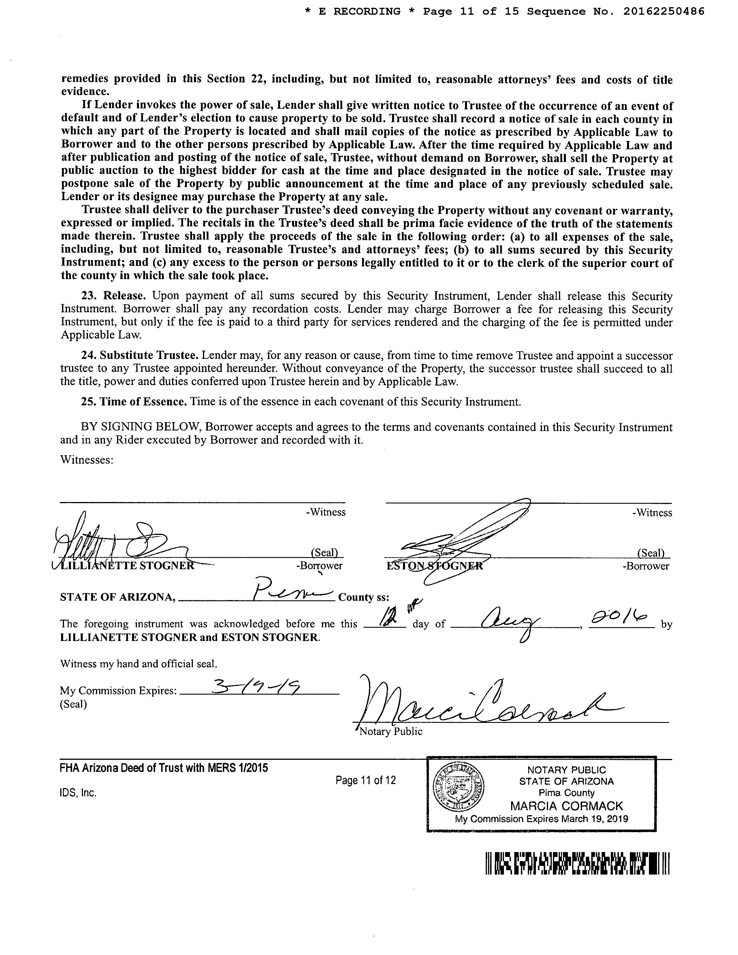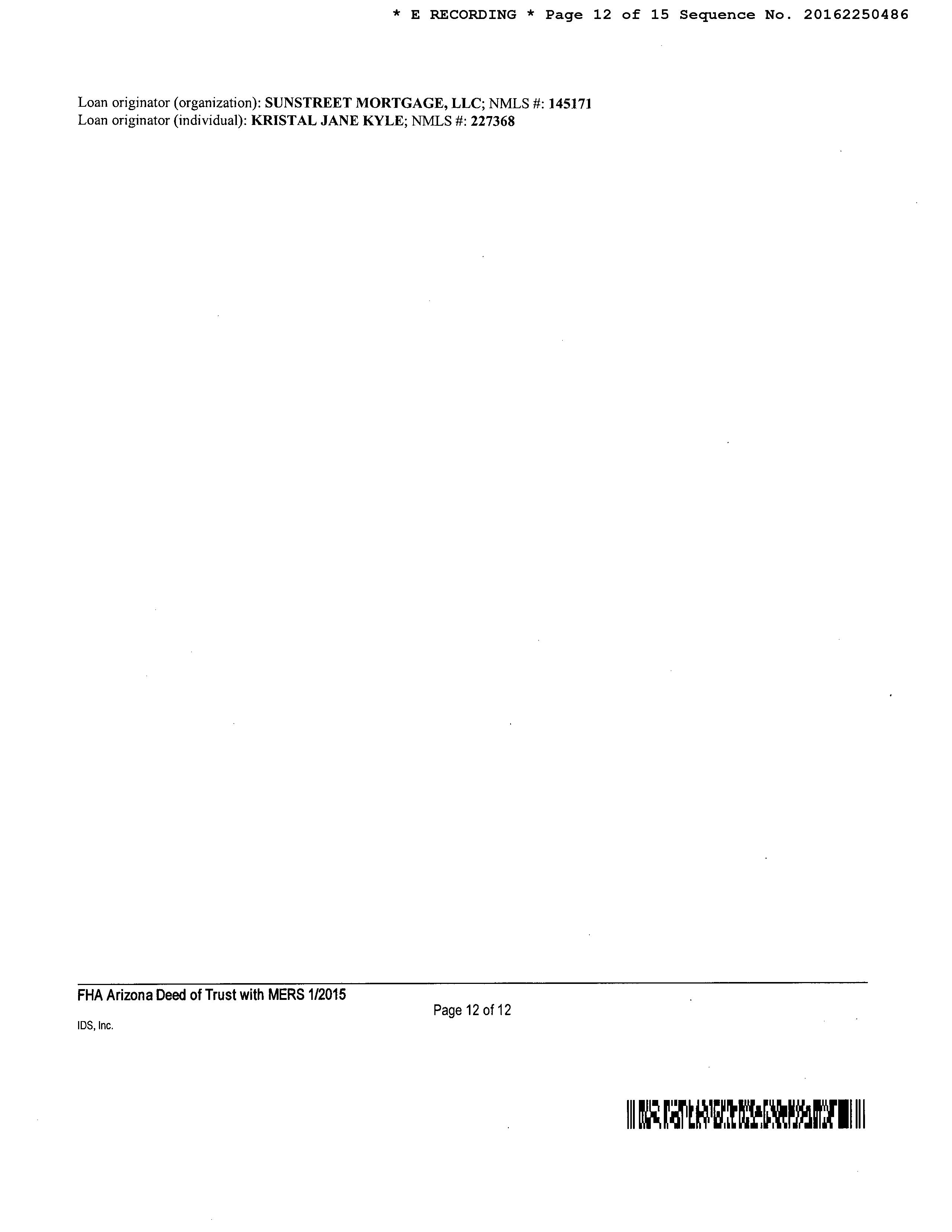 Seller Name: Carbajal Antonio & Gloria Lender: Sunstreet Mtg LLC Title Company: Catalina Title