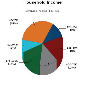 Female Population: 55.27% Average Household Income: $43,438 Married People: 59.98% Unmarried People: 40.02%