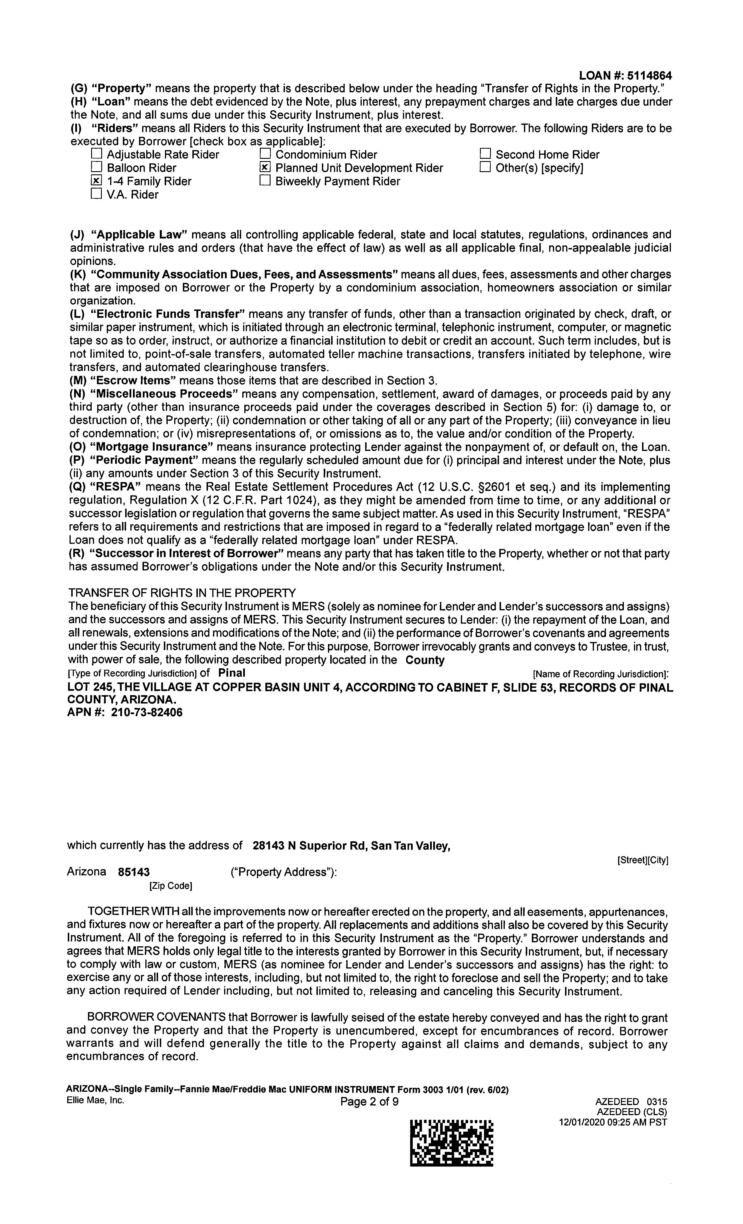 Subject Property : 28143 N Superior Rd San Tan Valley AZ 85143