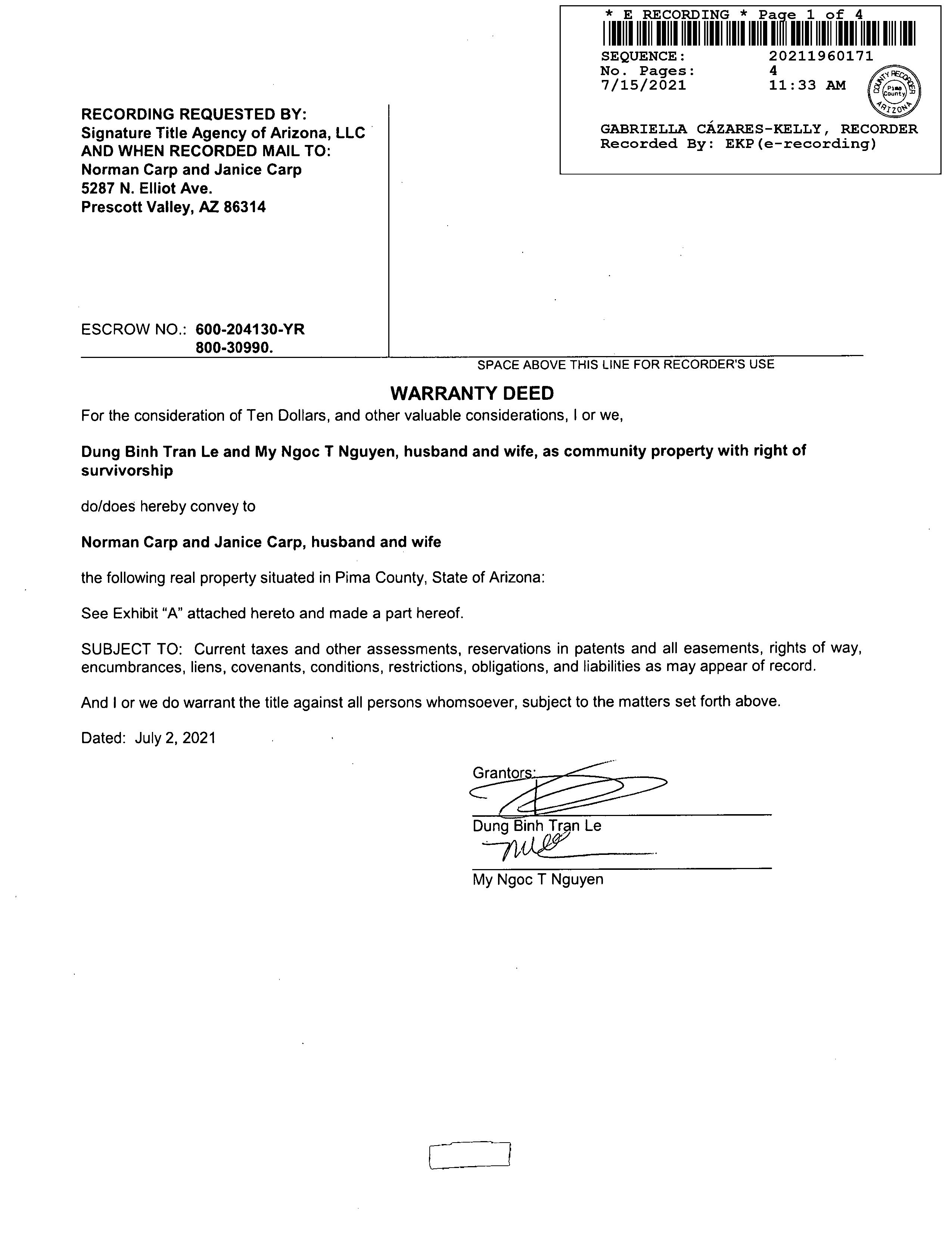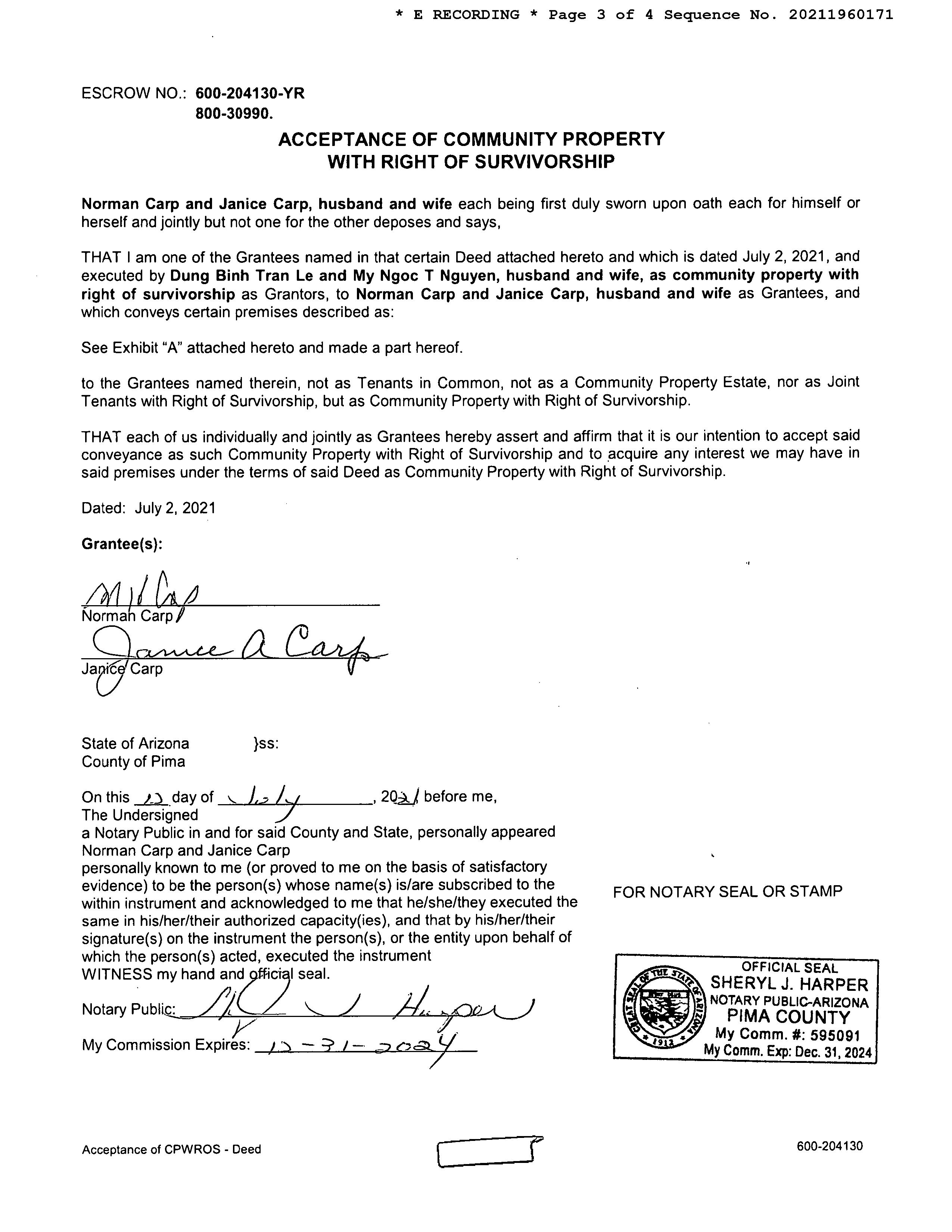 Owner Name: Carp Living Trust / APN / Alternate APN: 225-02-7430 / Deed Type: Warranty Deed