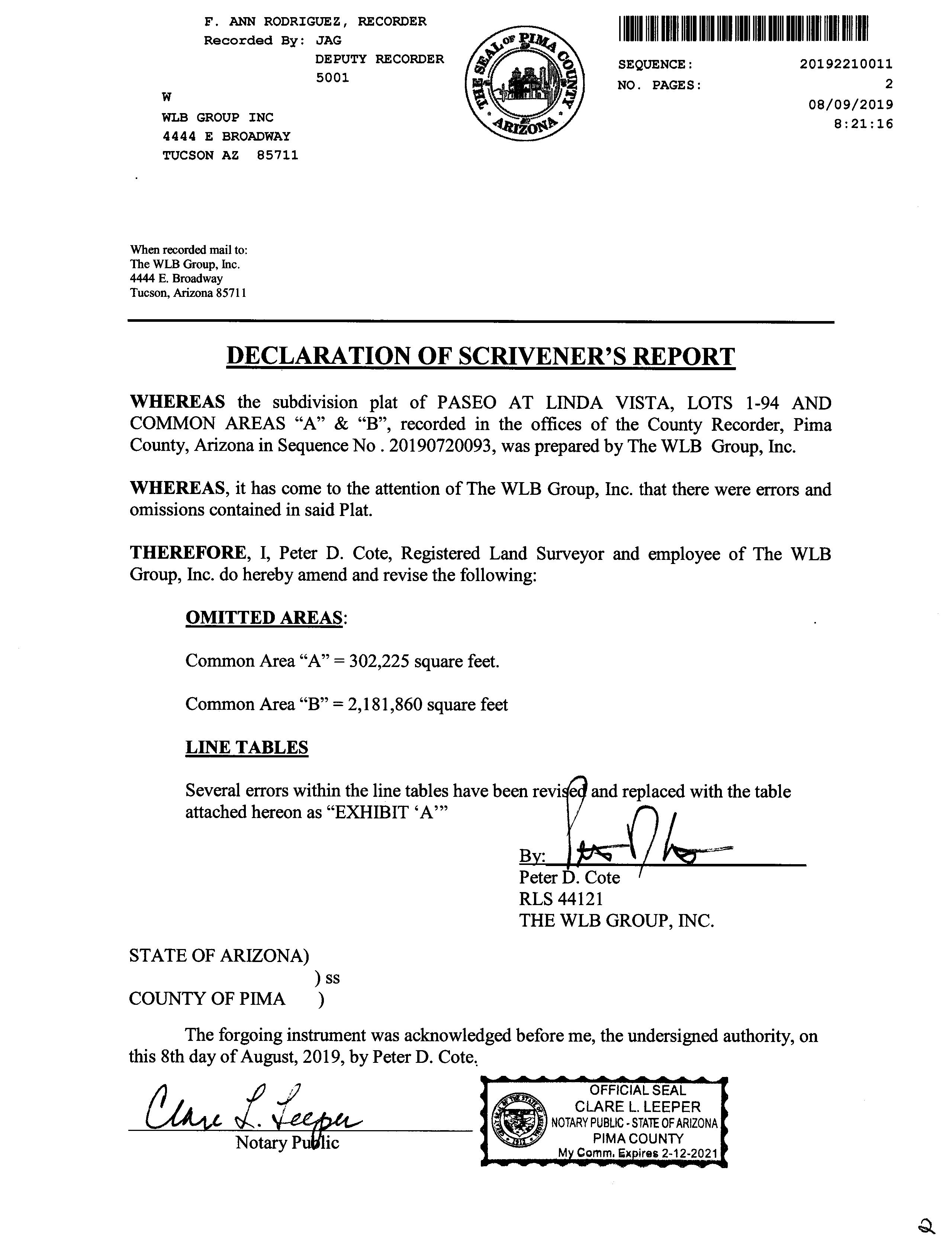 Mailing Address : 2850 W Shannon Ridge Rd, Tucson AZ 85742-8963 R097