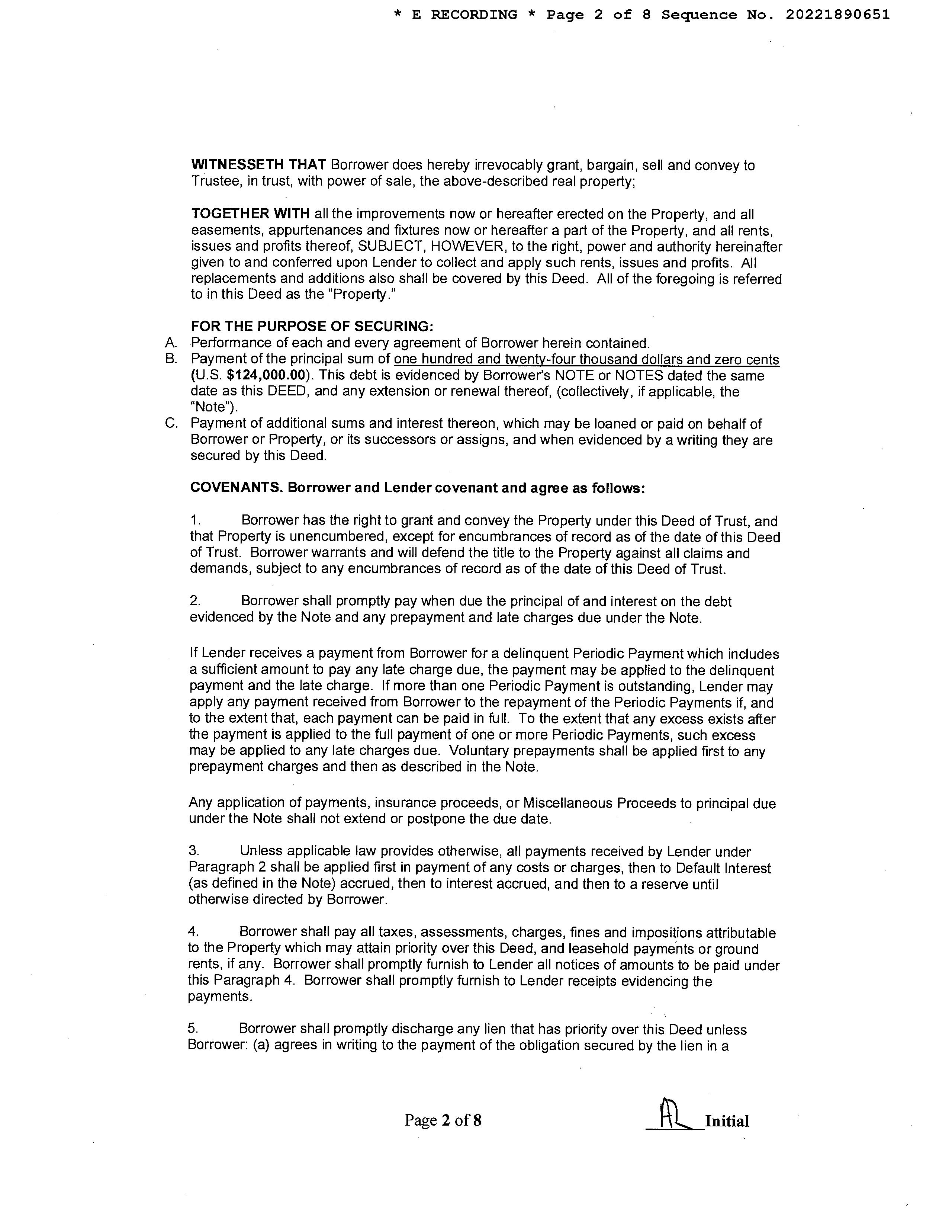 Recording/Sale Date : 07/08/2022 / 06/24/2022 1st Mtg Amount/Type : $124,000 / Cnv