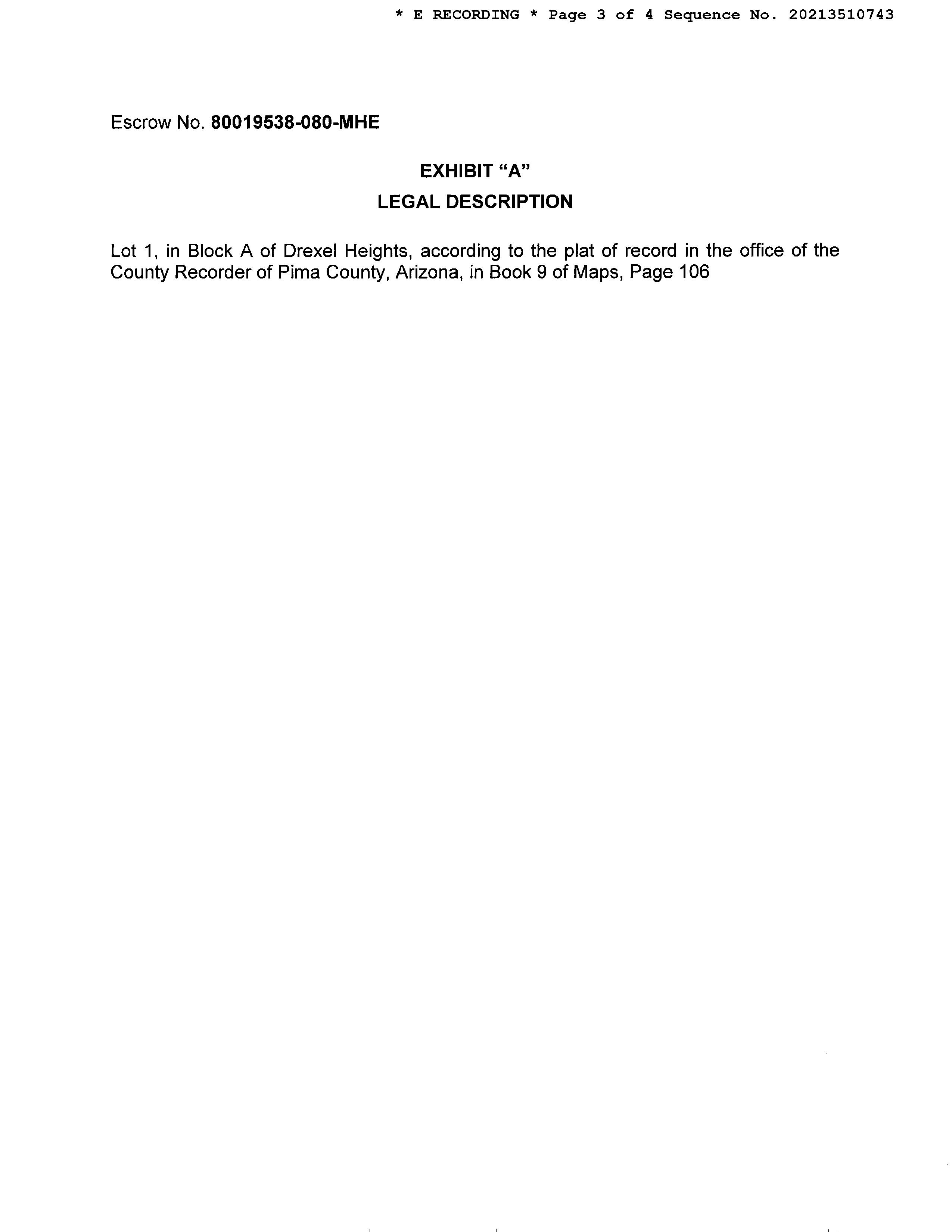 PARCEL: 137-24-0010 PARCEL: 137-24-0010 INSTRUMENT REC DATE OWNER: CELINA PADILLA PLLC AFFIDAVIT 2021 3510743 12/17/2021 SITUS: 2701 W DREXEL RD PC MAIL: 8524 S PLACITA SAN BERNARDO PLAT: LOT 00001 BLOCK 00A LEGAL: DREXEL HEIGHTS AMENDED LOT 1 BLK A CURRENT TAXES INFORMATION THROUGH 10/21/2022 LAND IMPR EXEMPT RATE AREA SPECIAL DISTRICTS PRIMARY 4,479 0 0 10.6293 0102 SECONDARY 50 7,765 0 5.4694 2022 TOTAL TAX BILLED 644.28 2022 TAX AMT TAX DUE INTEREST DATE PAID TOTAL DUE FIRST HALF 322.14 322.14 4.30 326.44 SECOND HALF 322.14 322.14 0.00 322.14 TOTAL CURRENT TAXES DUE 11/22 648.58 12/22 652.87 (ESTIMATED) IMPROVEMENTS MULTI FAMILY PHYSICAL CONDITION ABOVE AVERAGE BLDG SQFT 504 FULL CASH VALUE 78,151 YEAR BUILT 1950 LAND USE 01 20 NUMBER OF STORIES 1.0 LOT SIZE 1 STDLT STORIES HEIGHT 0 SCHOOL DISTRICT 0102 EXTERIOR WALLS OTHER LAND FULL CASH VALUE 502 GRADE MATERIALS IMPR FULL CASH VALUE 77,649