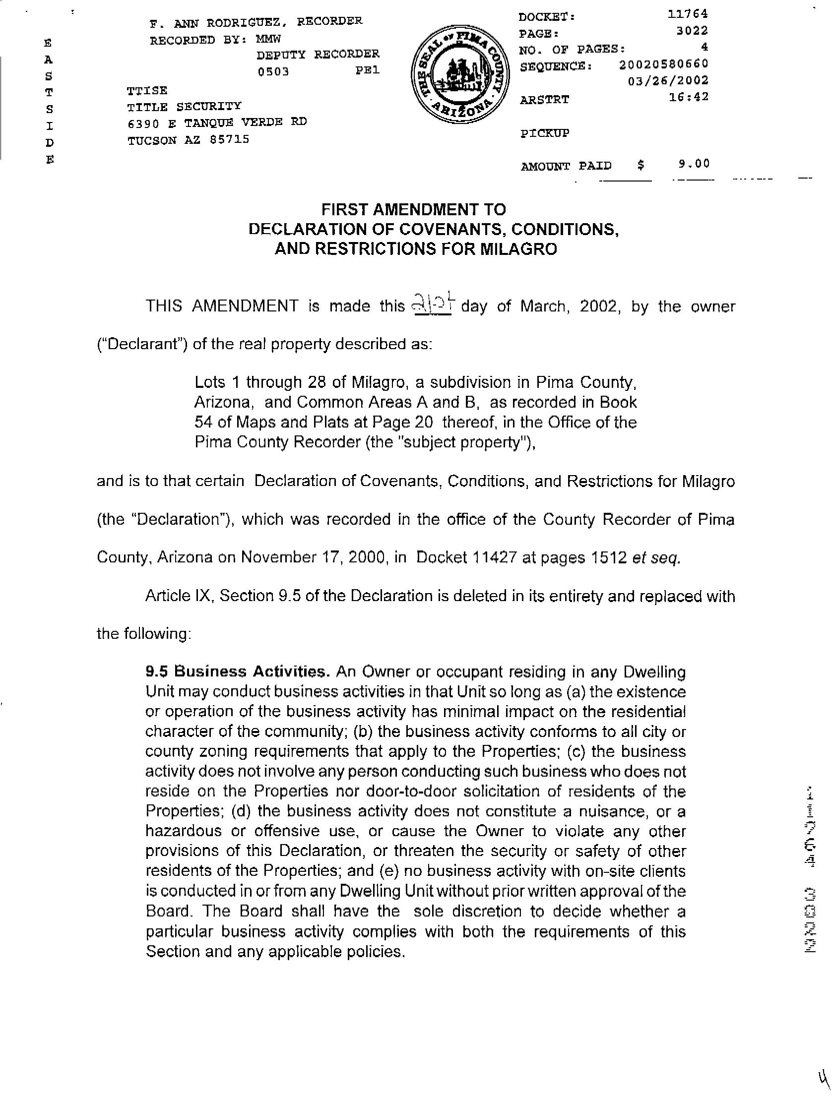 1 MAIN OFFICE 520.885.1600 | Fax 520.885.2309 6390 E. Tanque Verde Rd. Tucson, AZ 85715