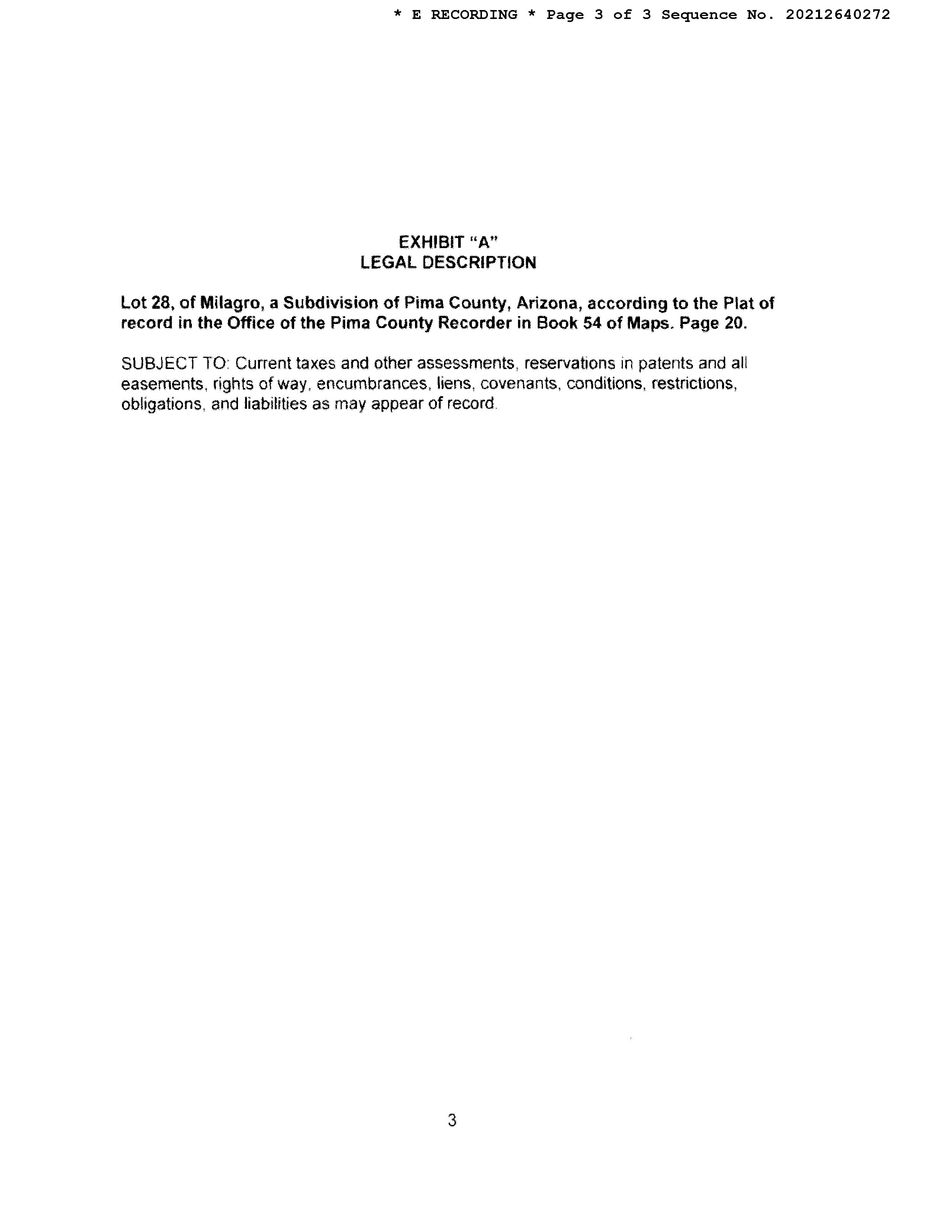 Legal Description : Milagro Lot 28 County : Pima, Az