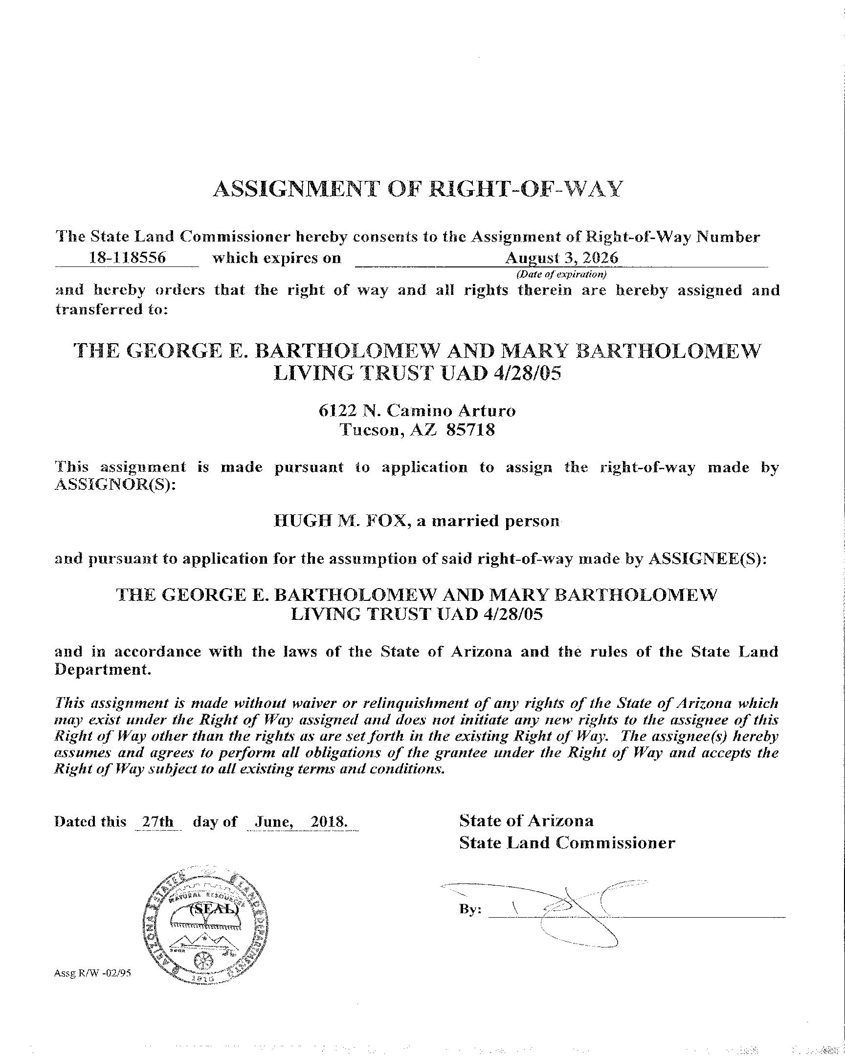 Mailing Address : 6122 N Camino Arturo, Tucson AZ 85718-2802 C033