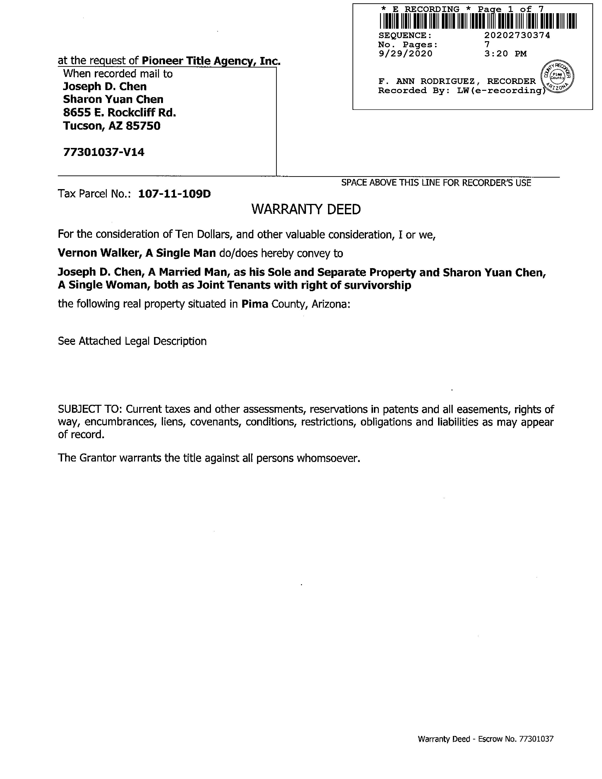 Owner Name : Chen Joseph D / Chen Sharon Yuan