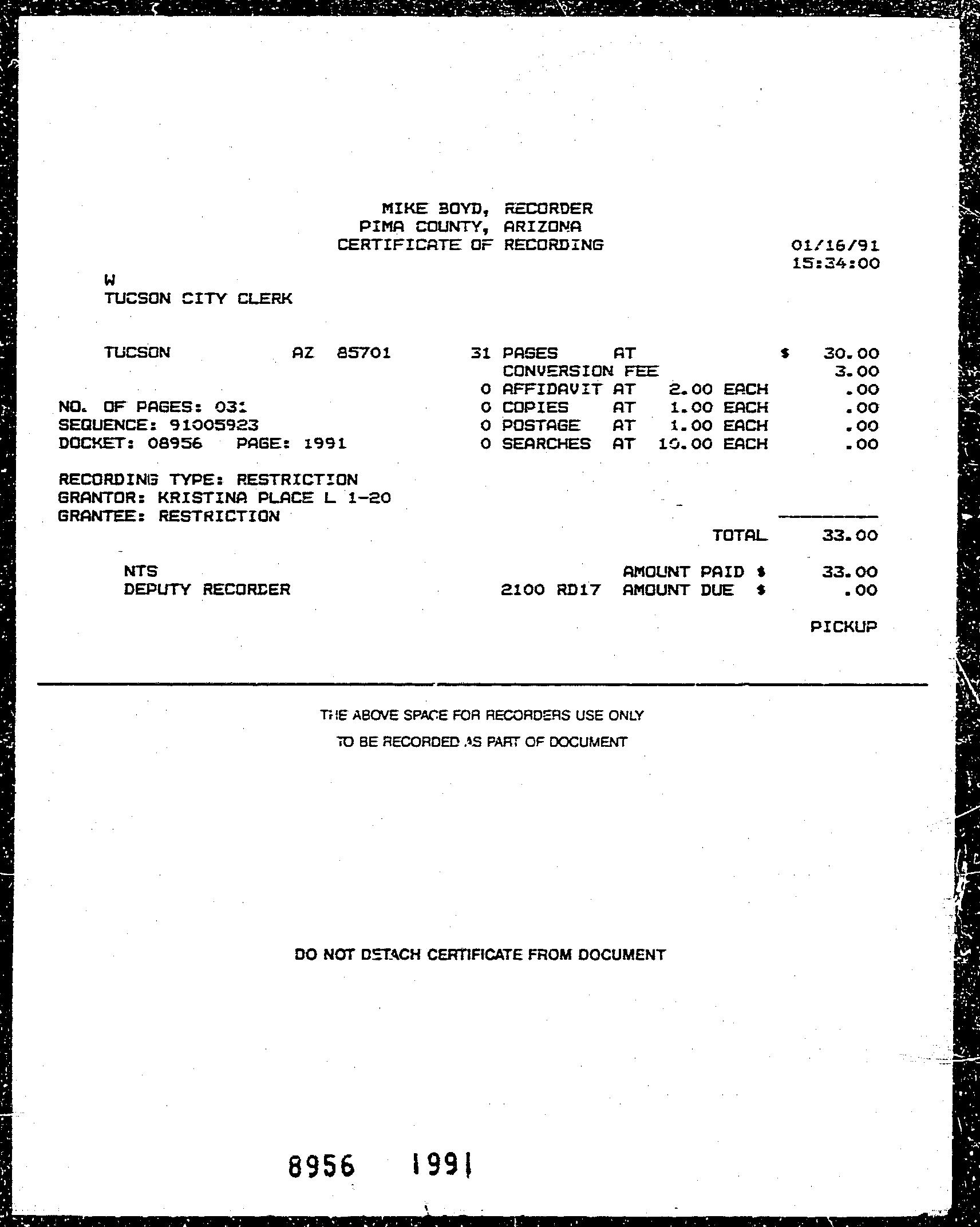 Document #: 1370259 Bedrooms: Pool: Total Tax Value: $154,400 Bath(F/H): / #6 9152 E Creek St Tucson Az 85730