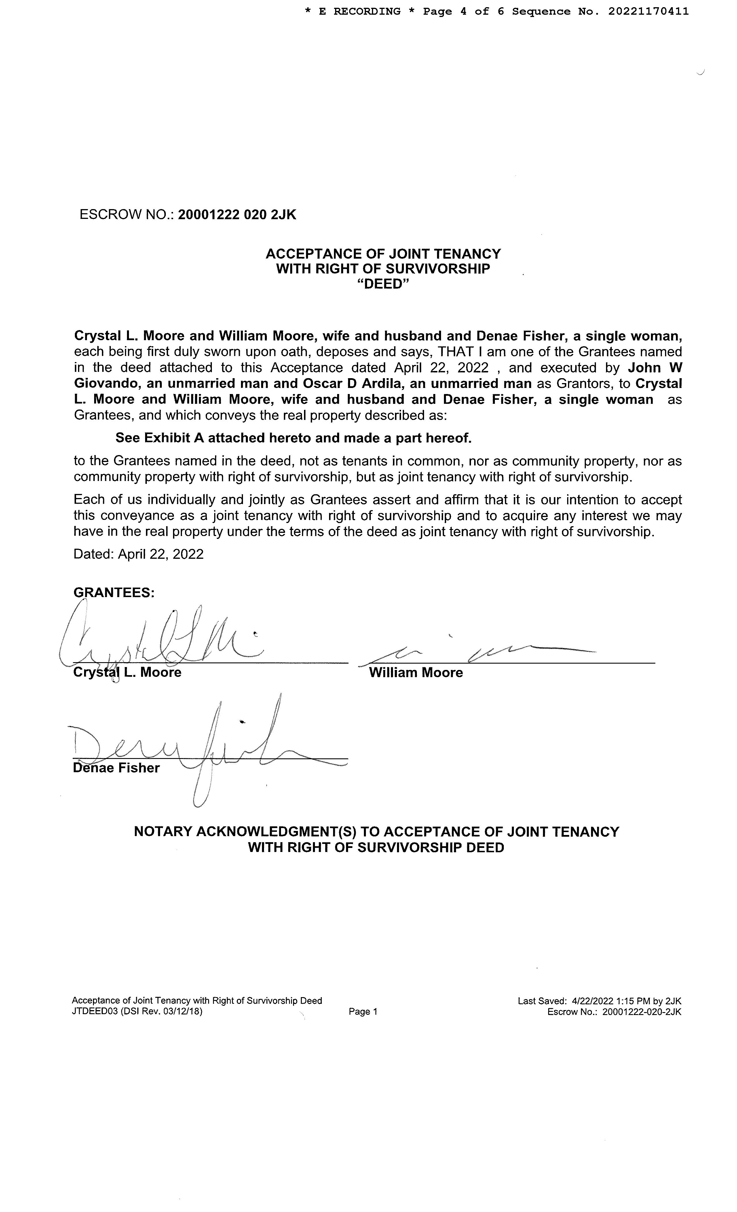 APN / Alternate APN: 117-06-652A / Deed Type: Joint Tenancy Deed Land Use: Condominium