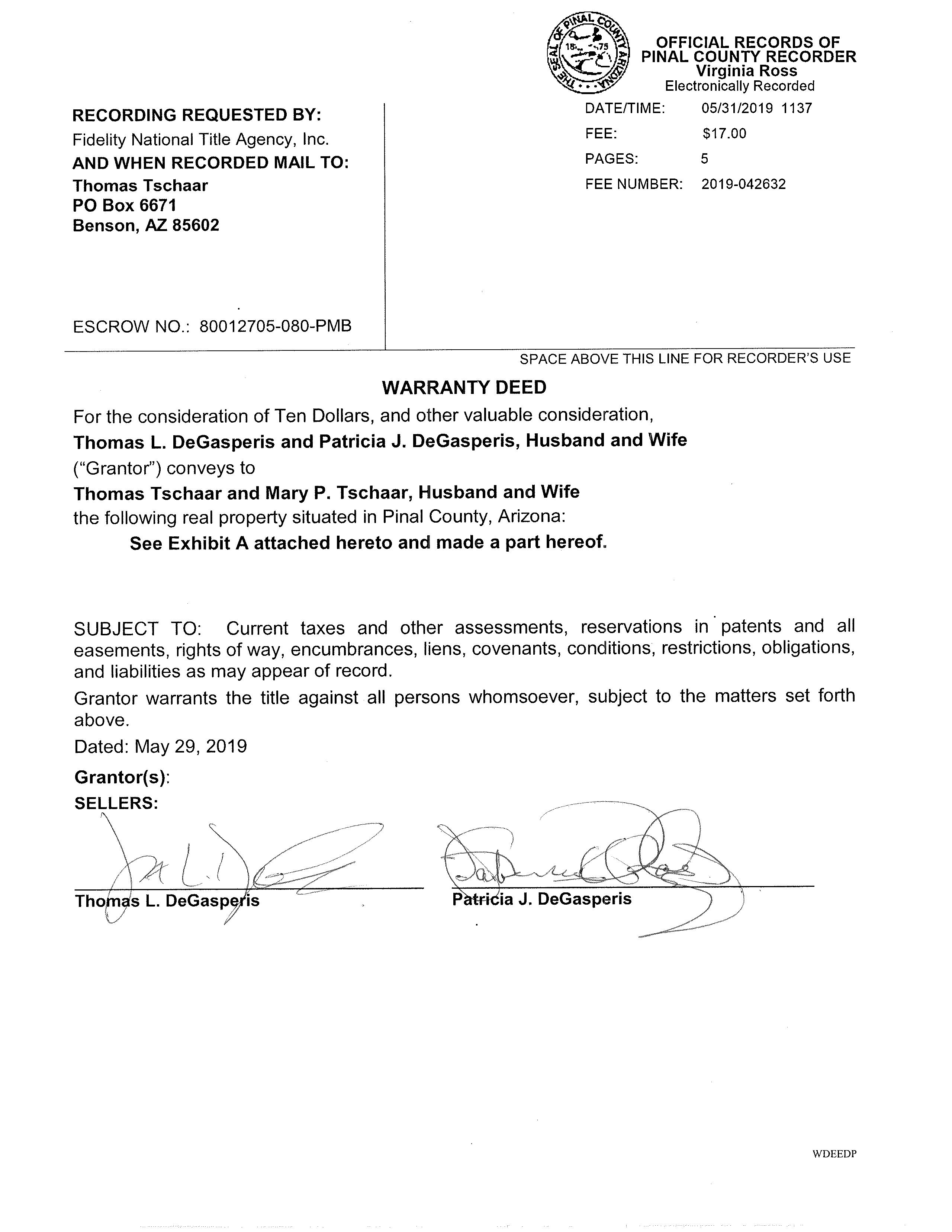 Title Company : Fidelity Title Seller Name : Degasperis Thomas L & Patricia J