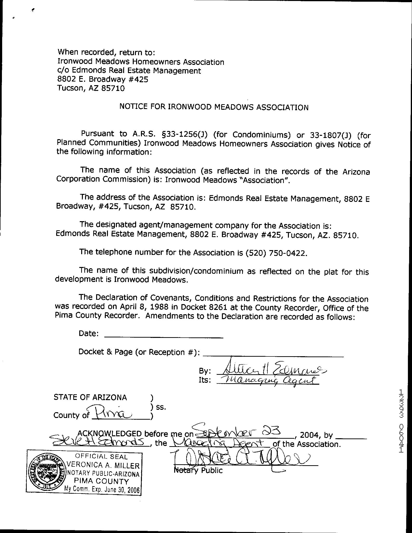 Mailing Address: 9261 N Broken Lance Dr, Tucson, AZ 85742-9006