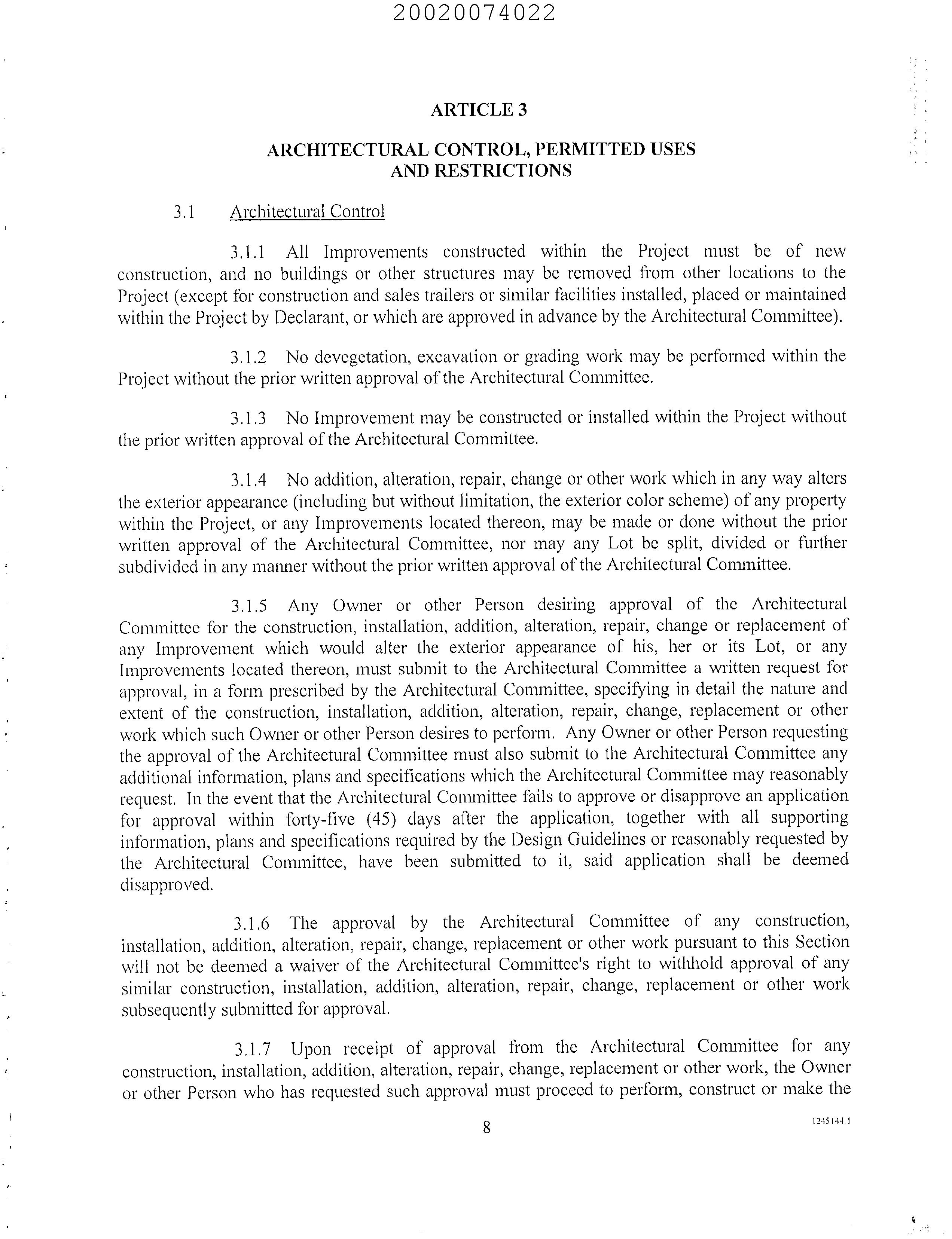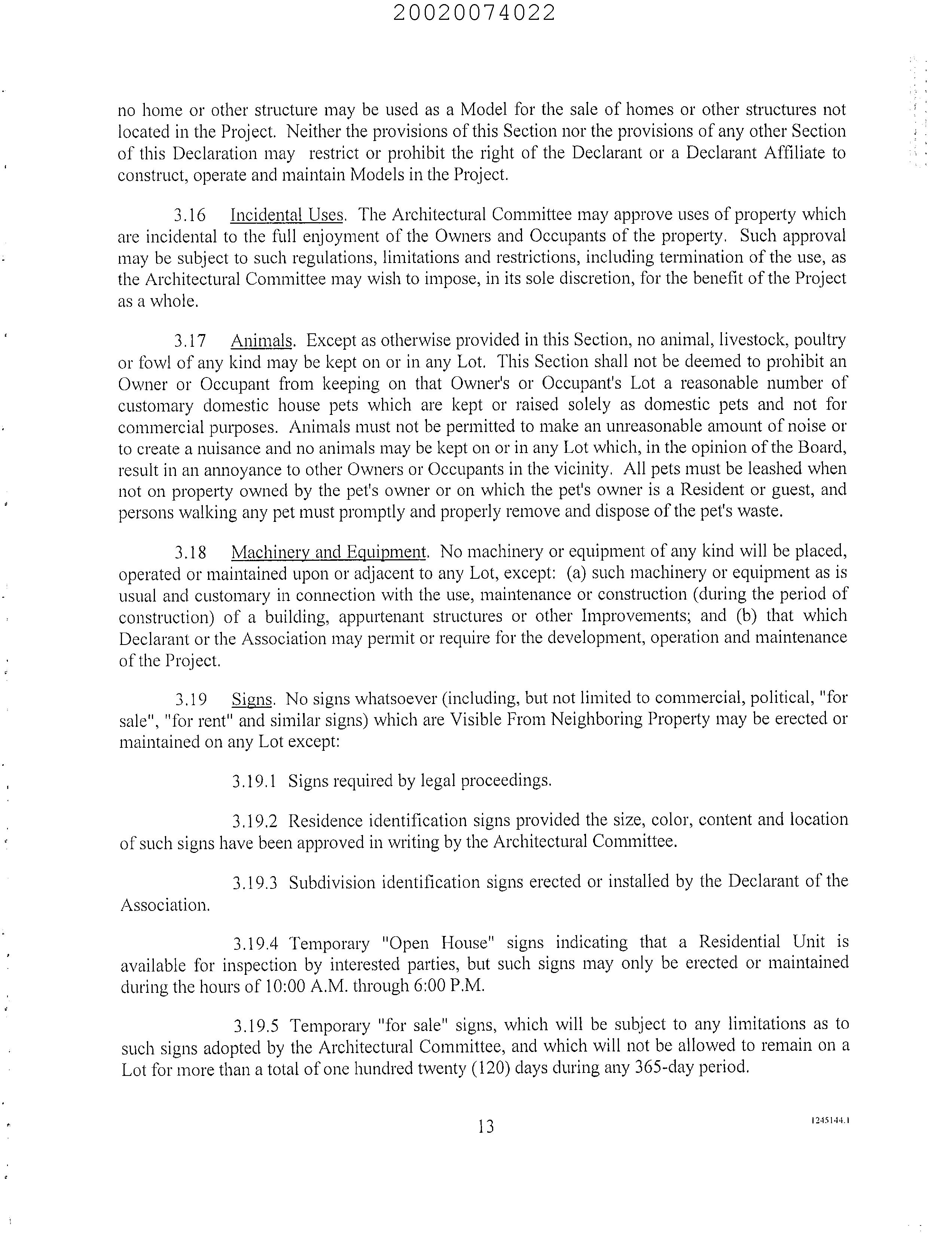 COVENANTS, CONDITIONS & RESTRICTIONS