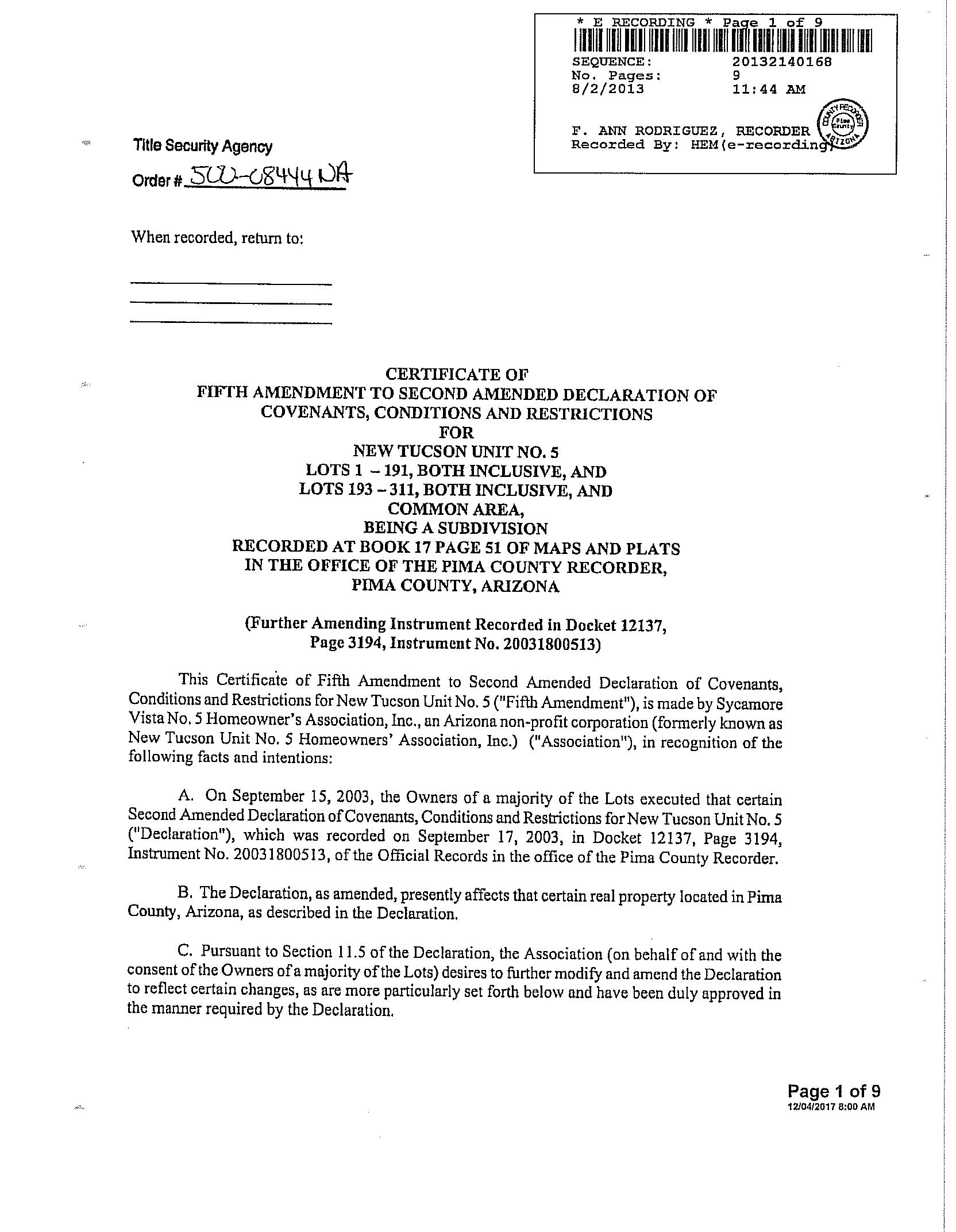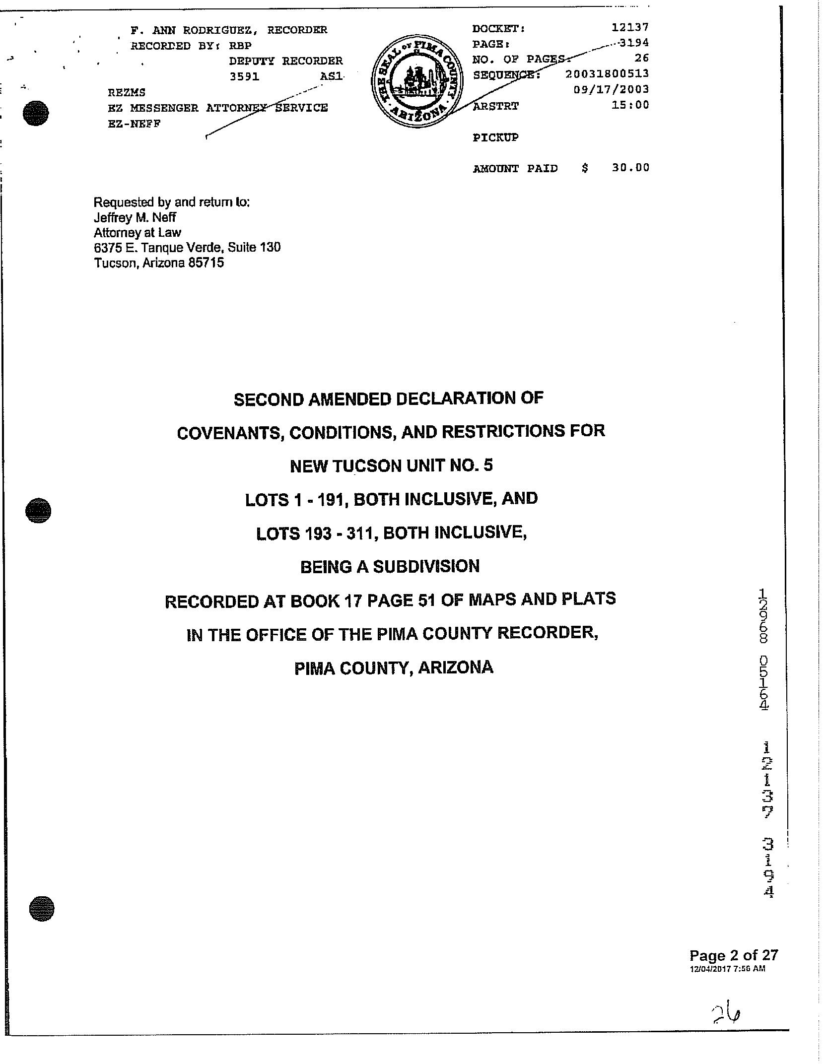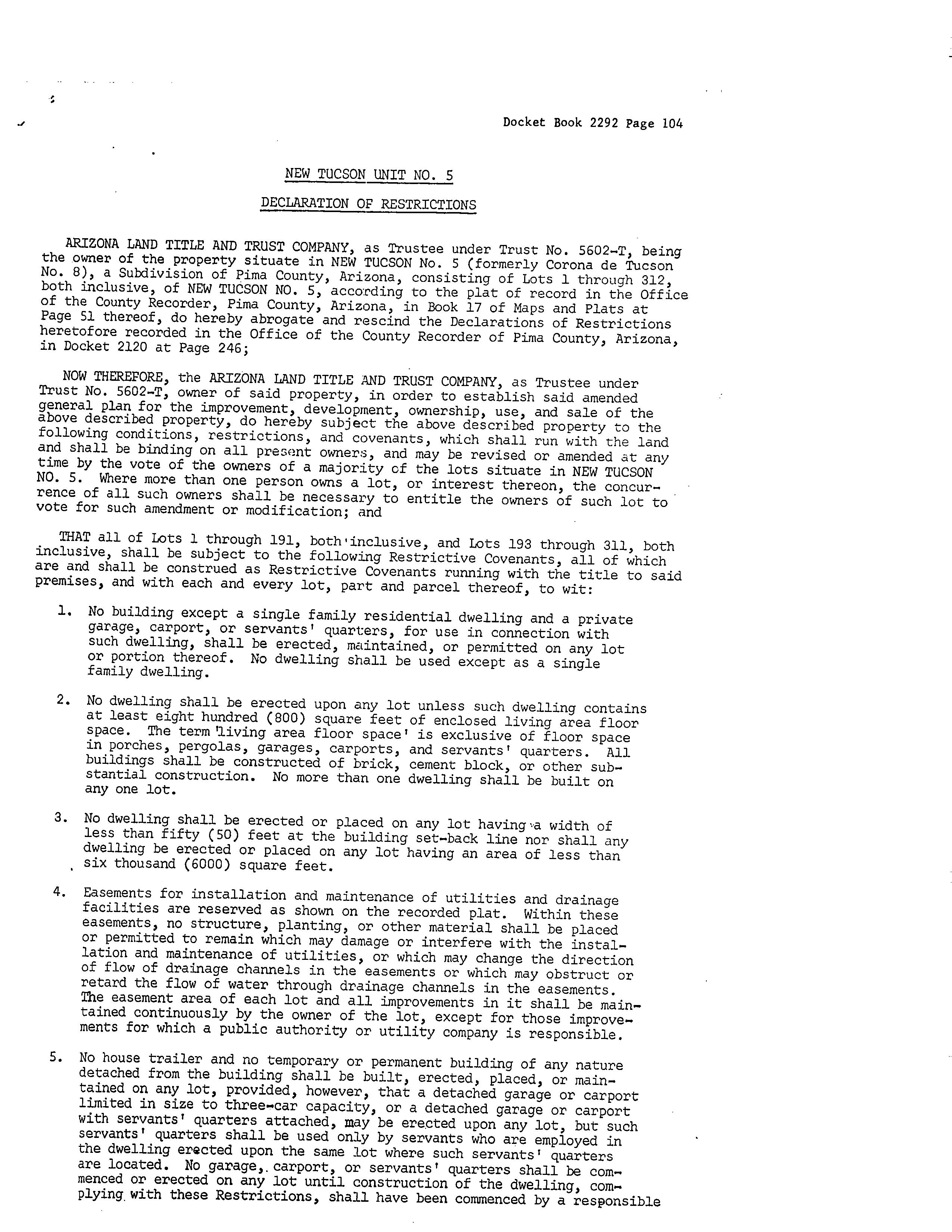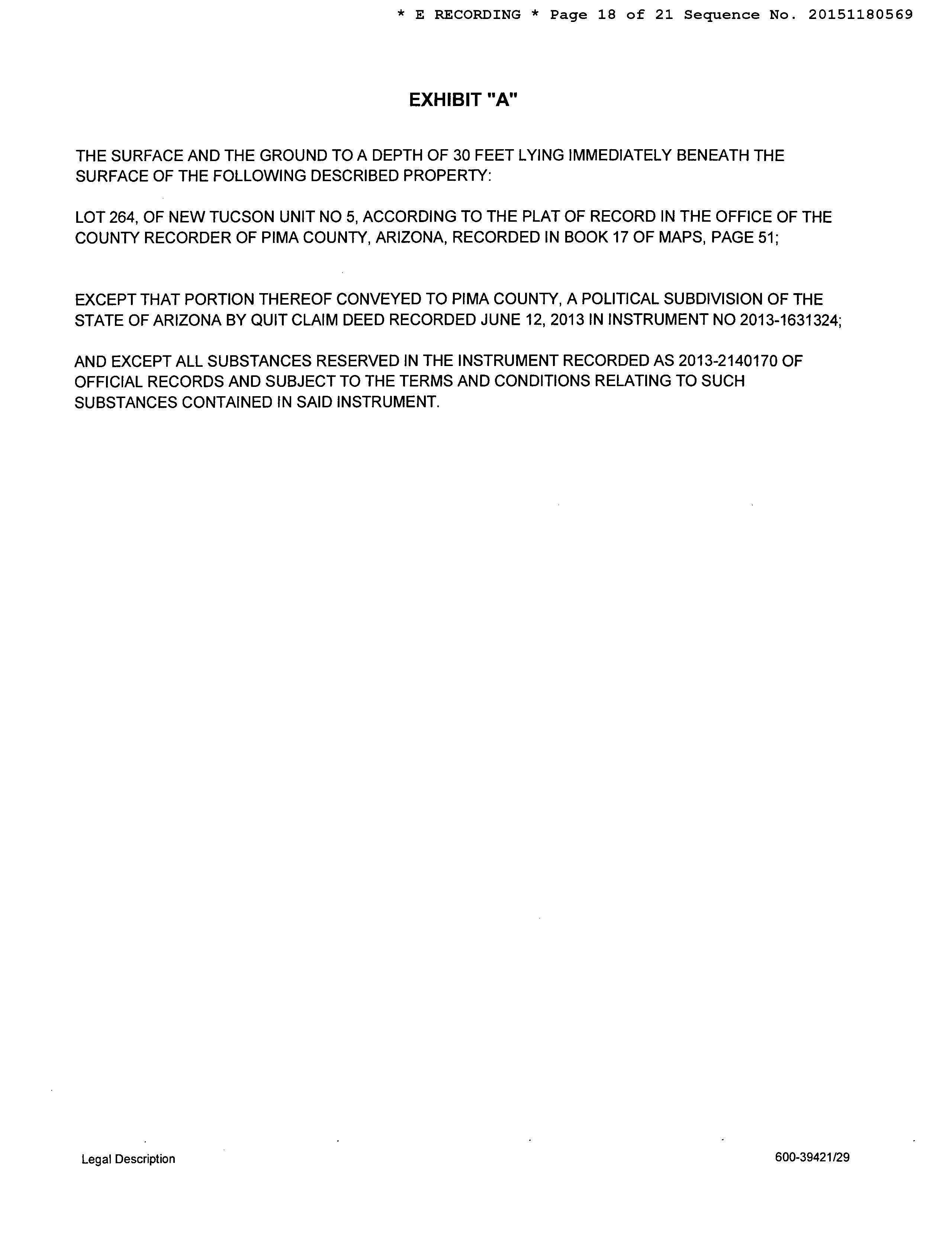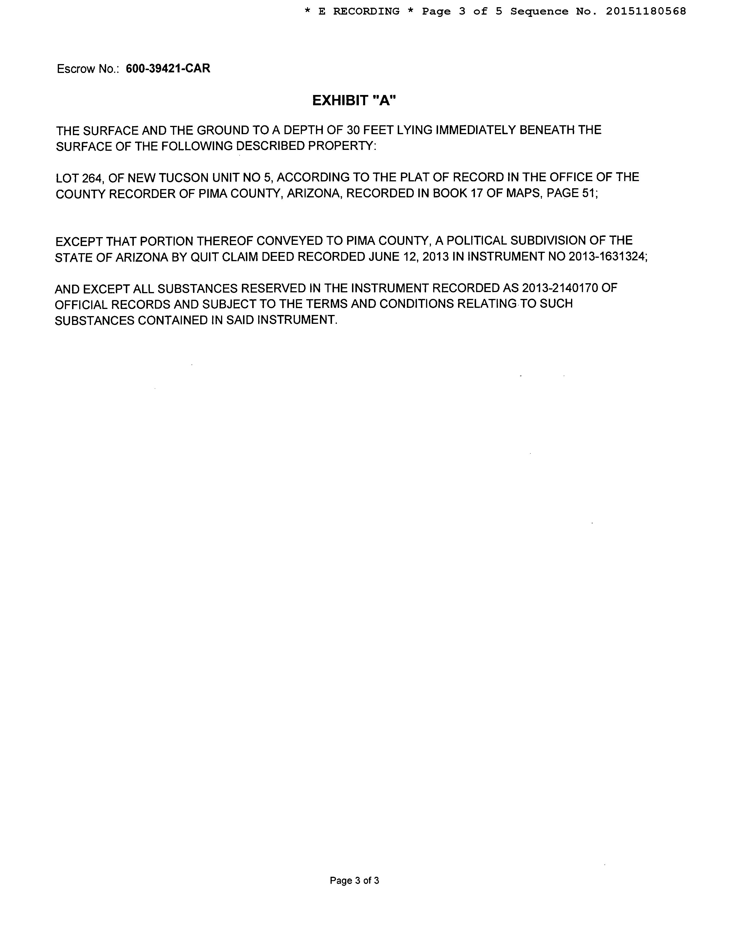 Legal Description : New Tucson Unit No 5 Ptn Lot 264 Lyg N & Adj Rd Exc Mineral Rights Below 30-ft