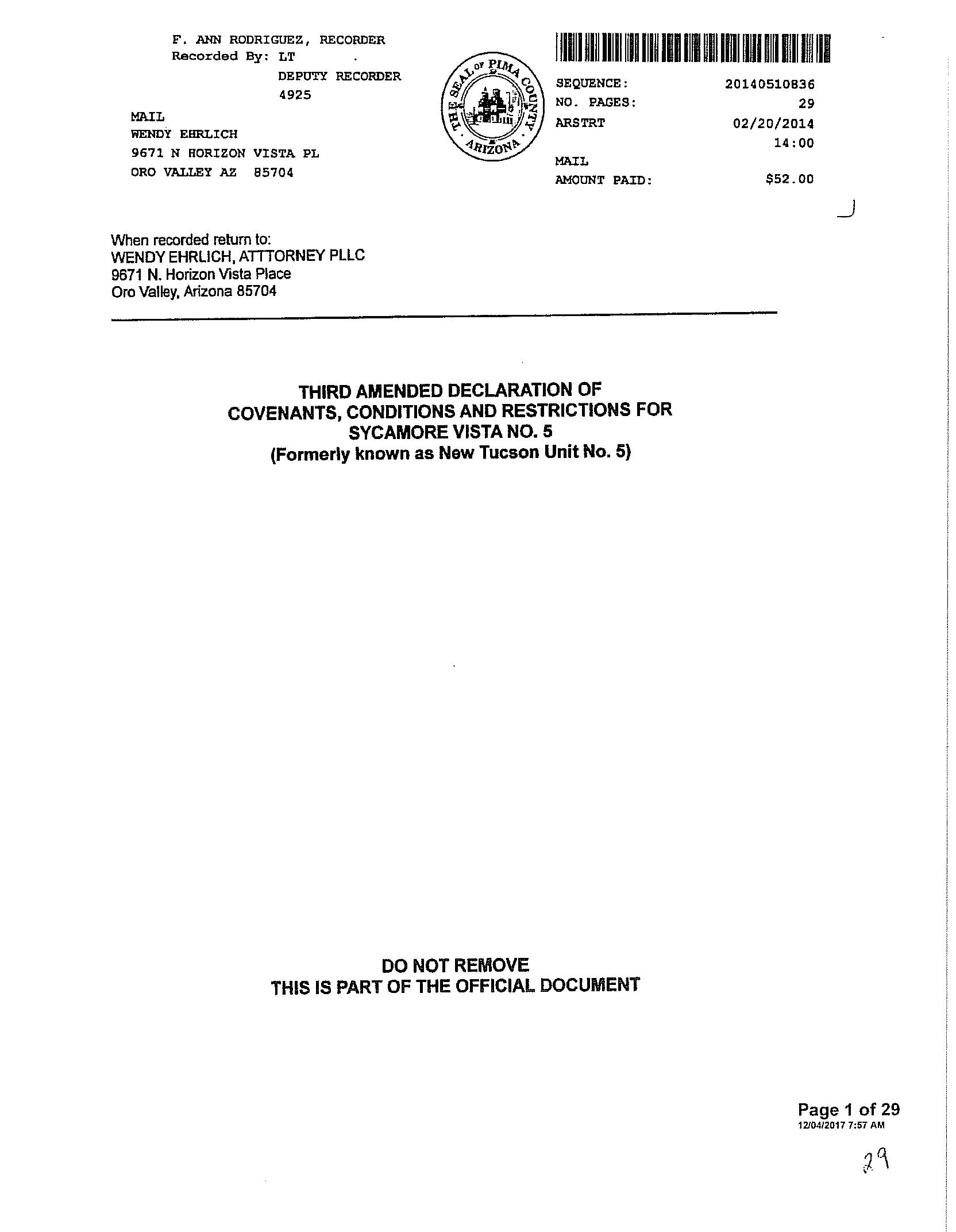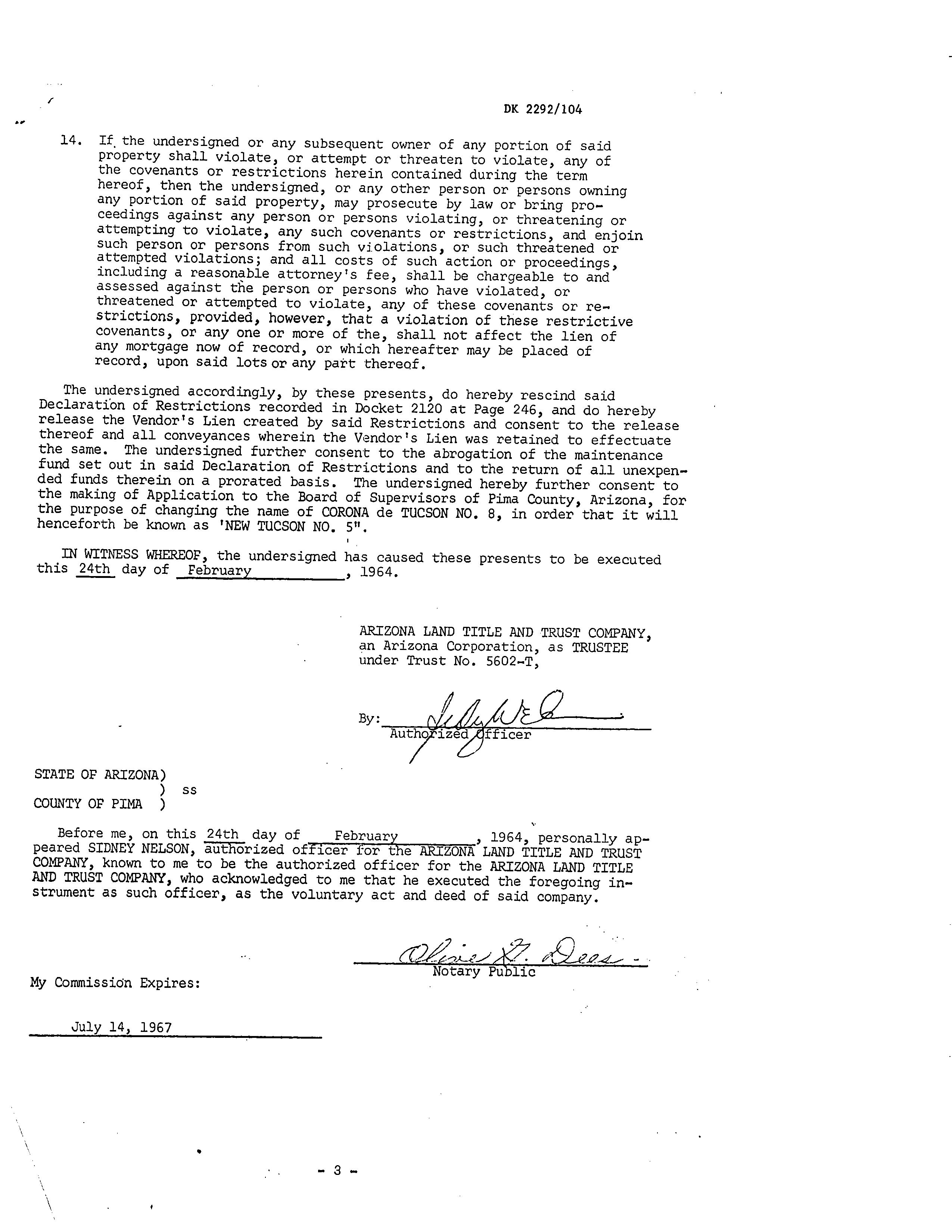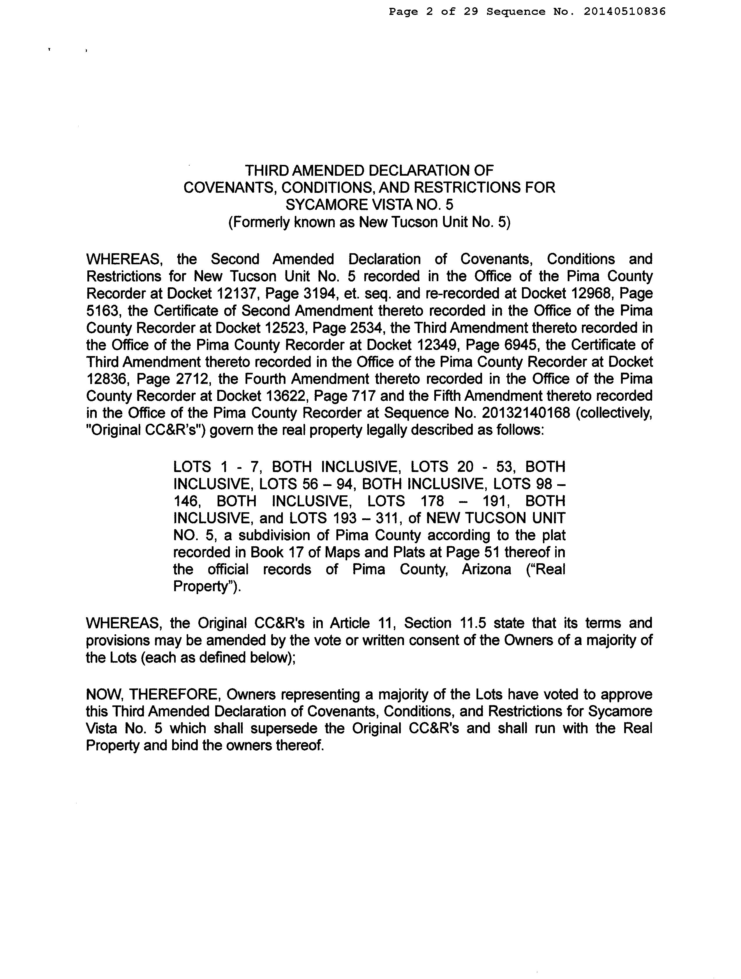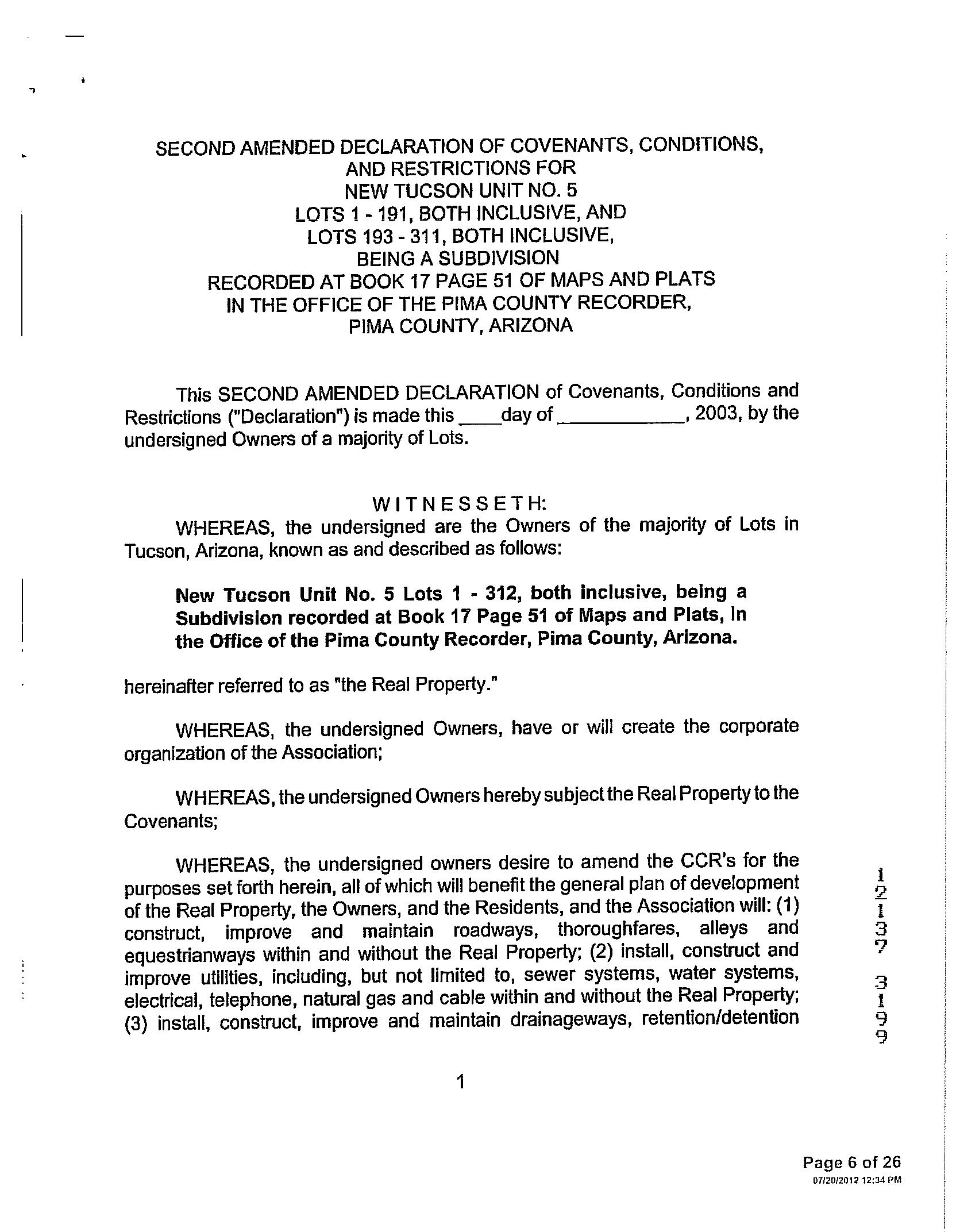 Legal Description : New Tucson Unit No 5 Ptn Lot 264 Lyg N & Adj Rd Exc Mineral Rights Below 30-ft
