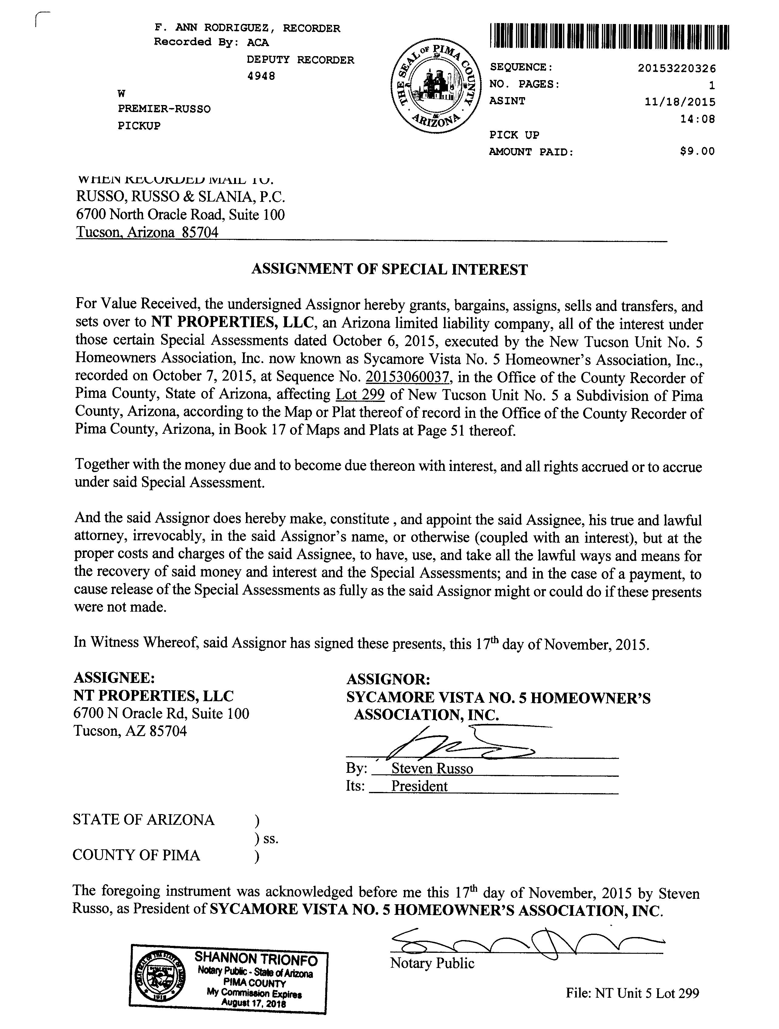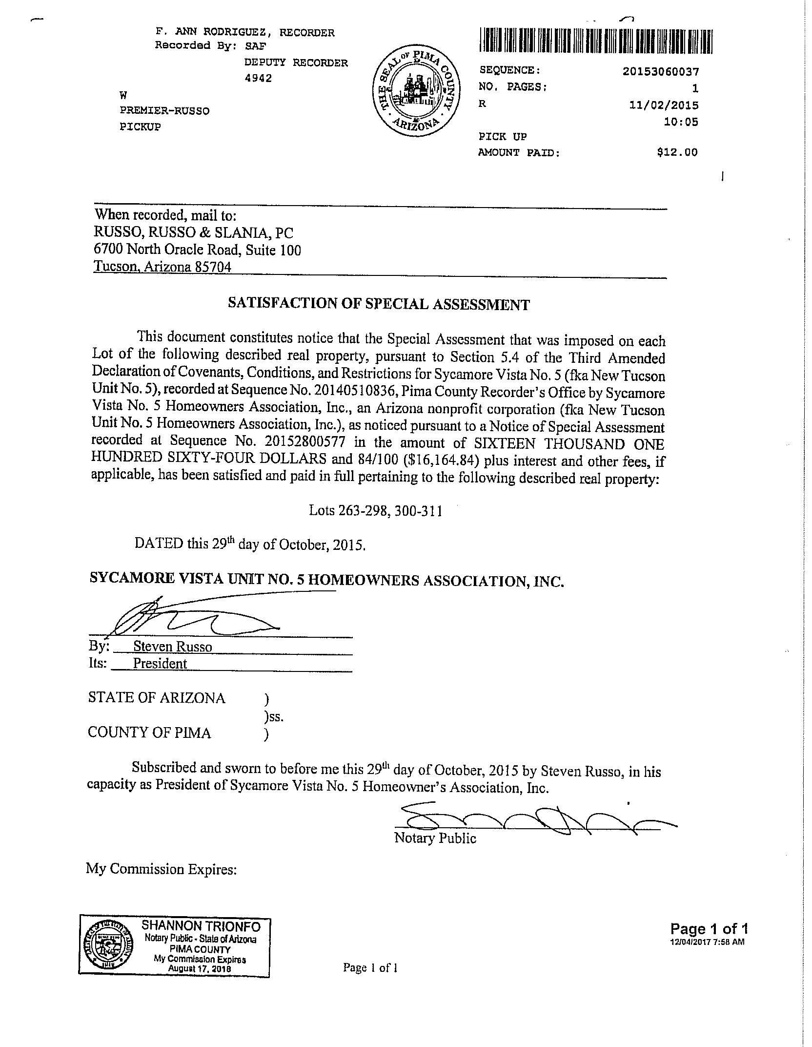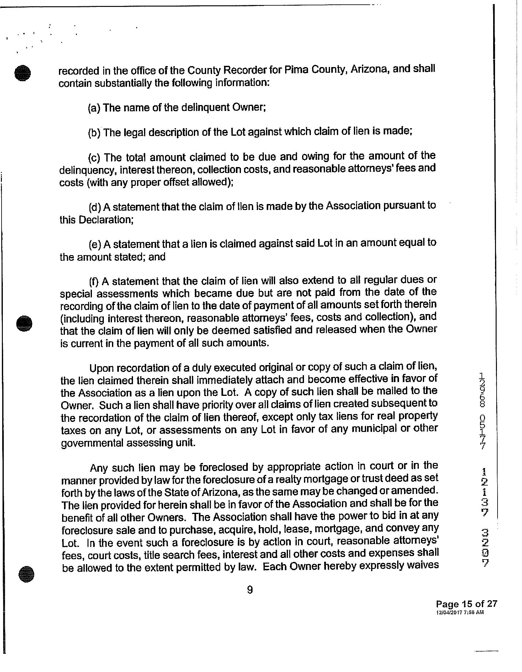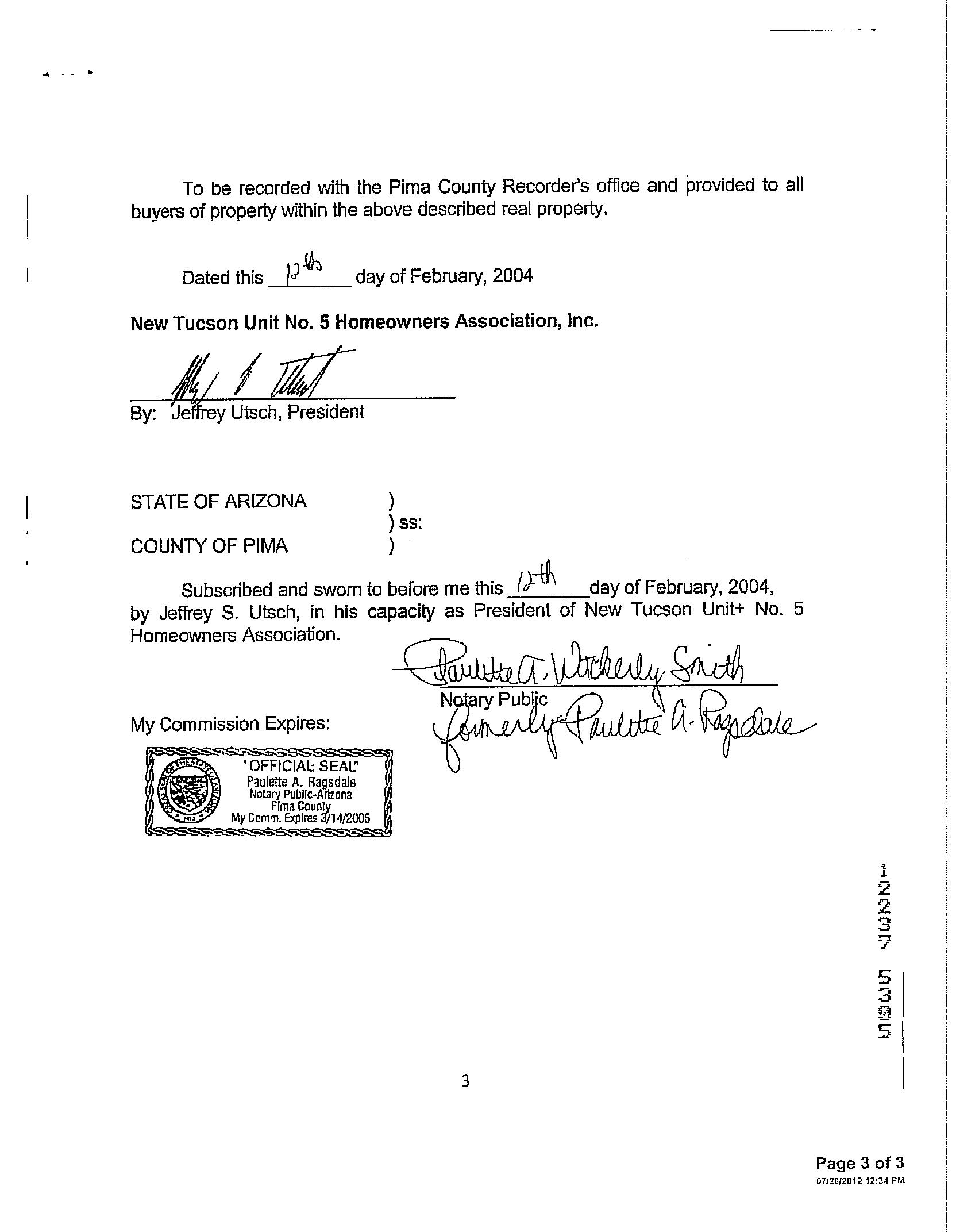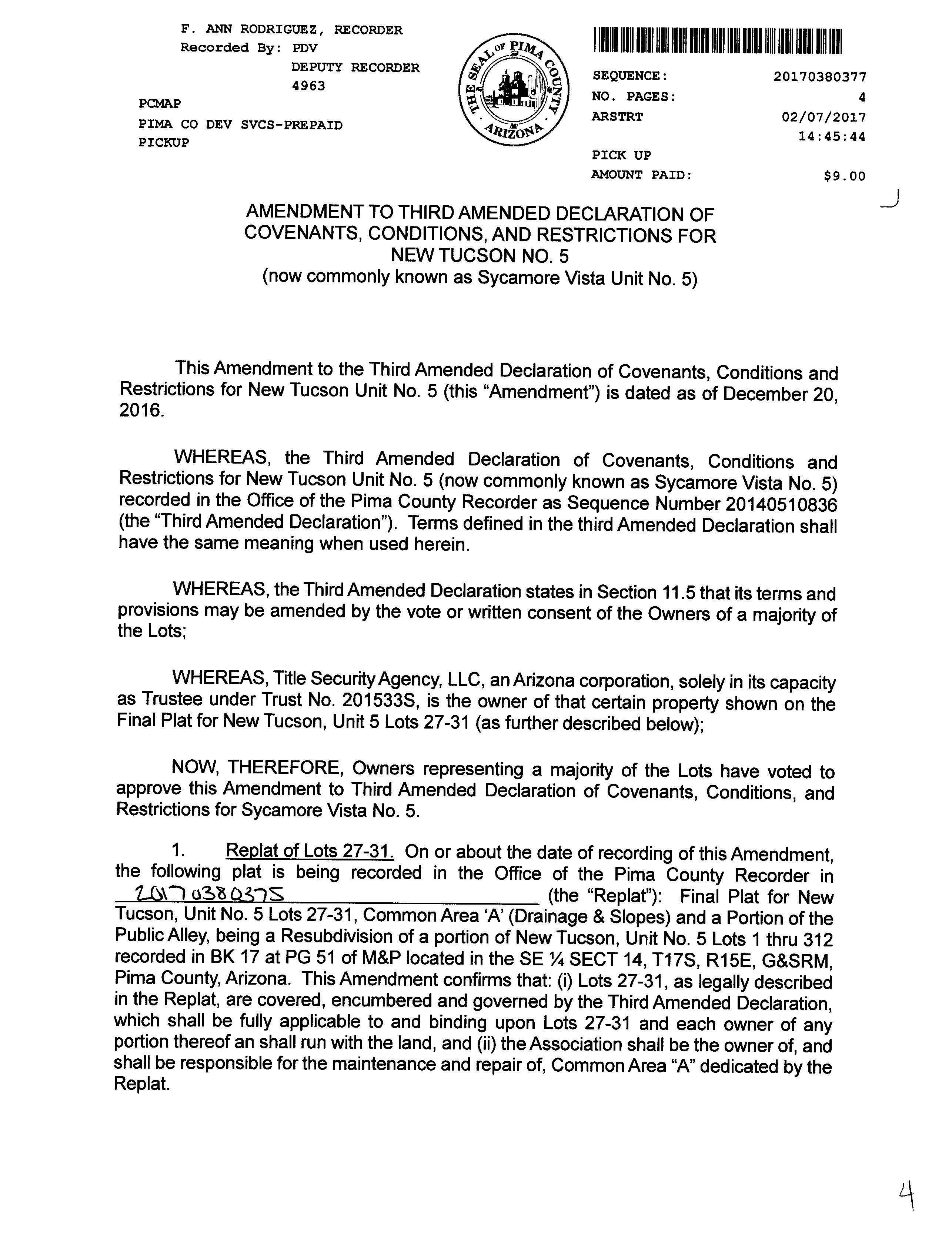 Legal Description : New Tucson Unit No 5 Ptn Lot 264 Lyg N & Adj Rd Exc Mineral Rights Below 30-ft
