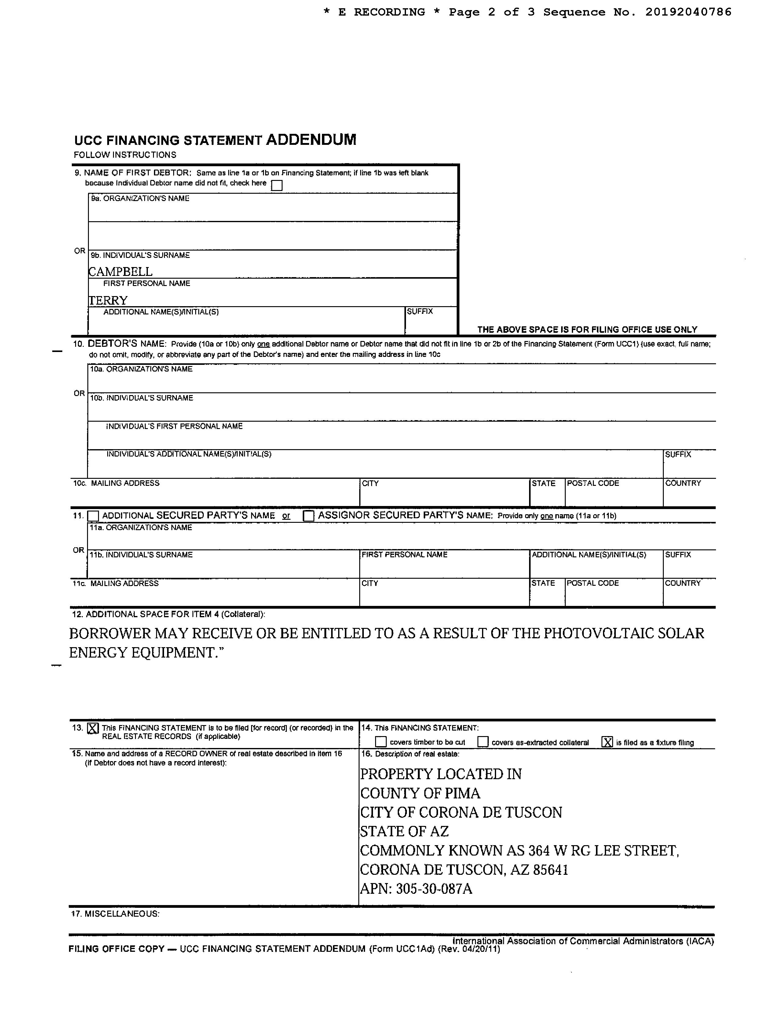 Owner Name : Campbell Terry D / Campbell Dorene E
