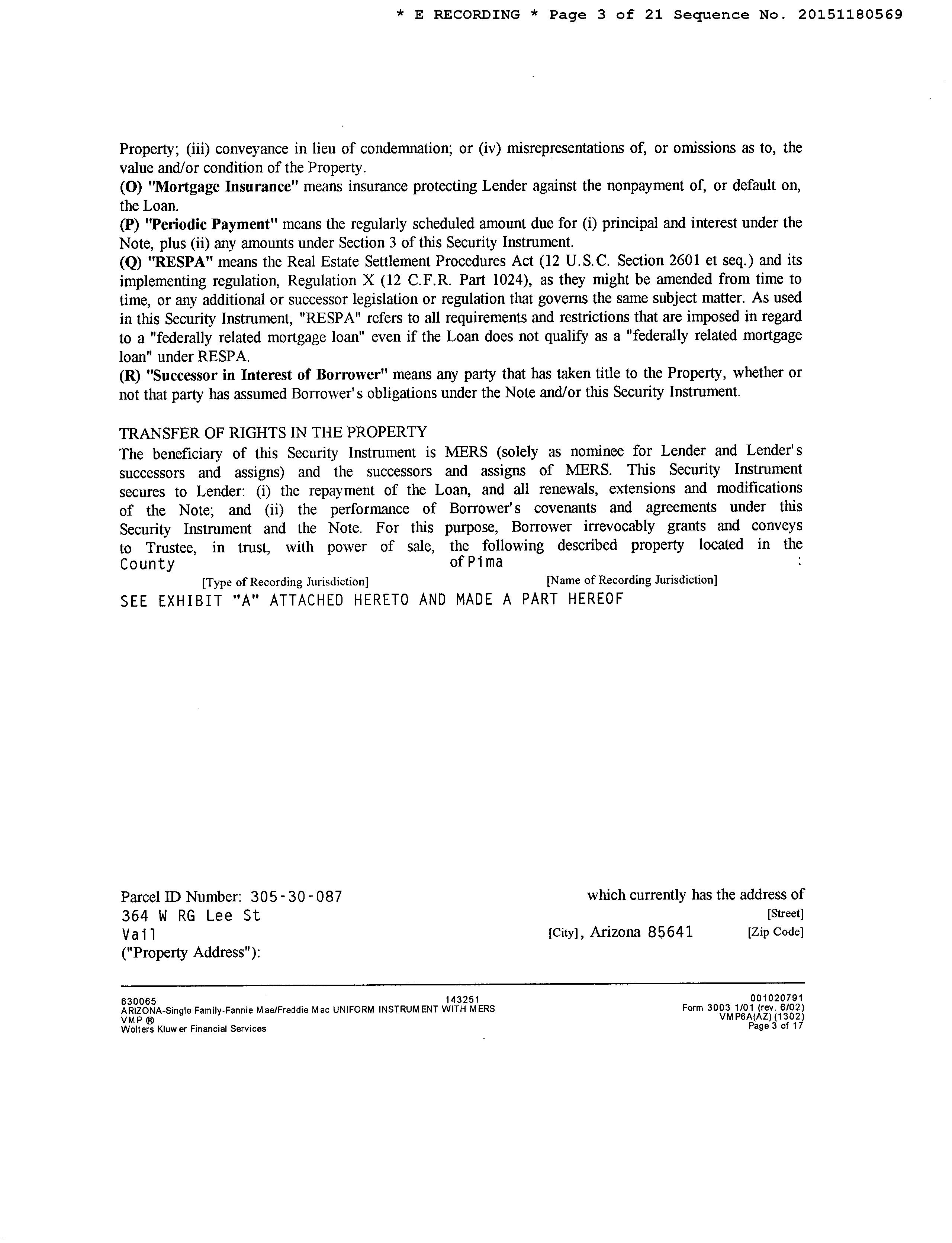 Mailing Address : 364 W R G Lee St, Vail AZ 85641-6318 R017