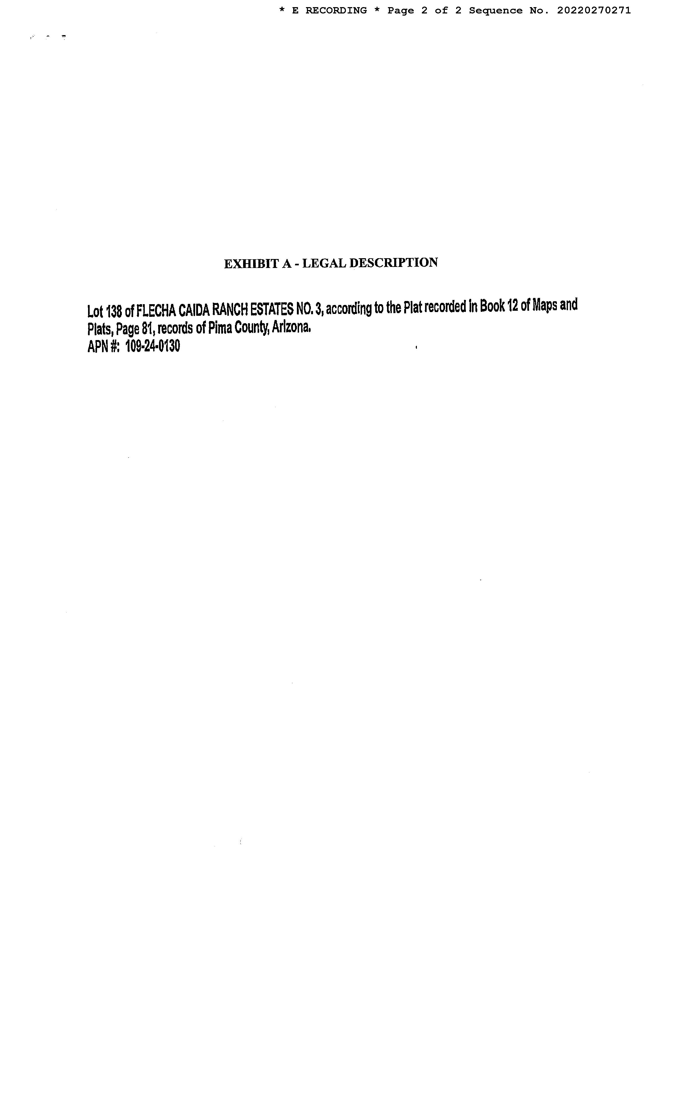 Legal Description : Flecha Caida Ranch Estates No 3 Lot 138