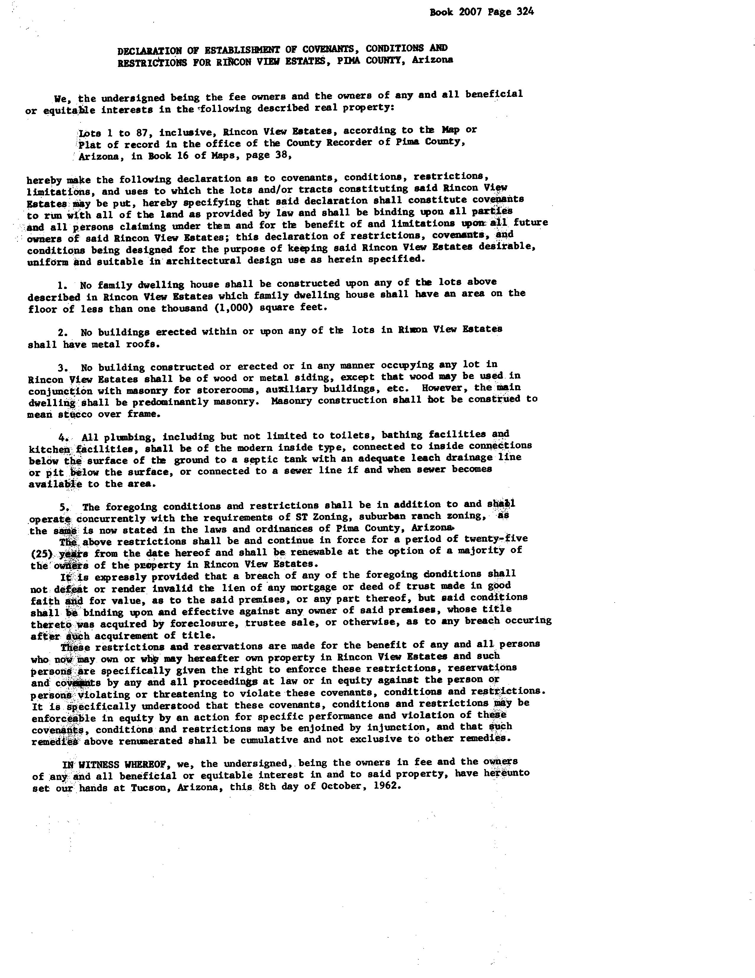 CONDITIONS & RESTRICTIONS PREPARED FOR : First American Title Insurance Company, and the operating divisions thereof, make no express or implied warranty respecting the information presented and assume no responsibility for errors or omissions. First American, the eagle logo, First American Title, and firstam.com are registered trademarks or trademarks of First American Financial Corporation and/or its affiliates. 3760 East Nana Drive Vail, AZ 85641