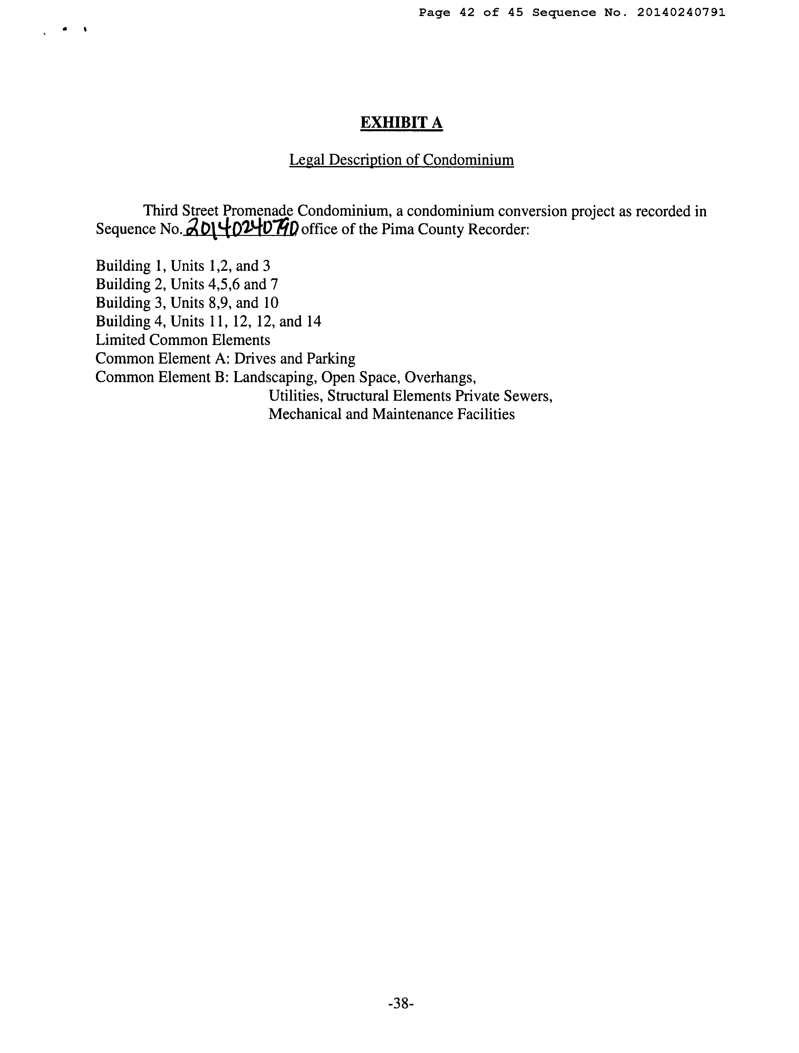 Legal Description : Third Street Promenade Condominium Sq20140240790 Bldg 2 Unit 5 & Int In Common Elements Per Deed Restriction