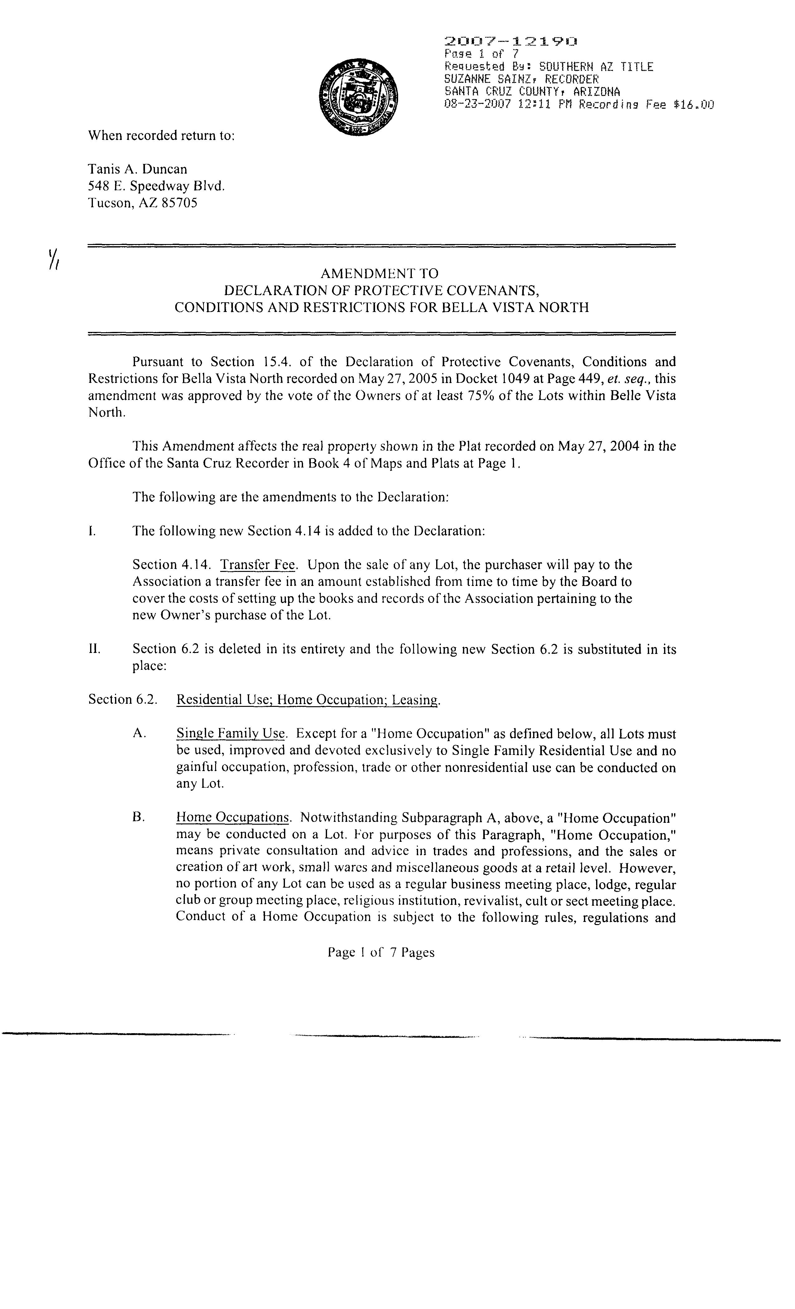 Mailing Address : 384 Via Estrella Vis, Rio Rico AZ 85648-1612 R007