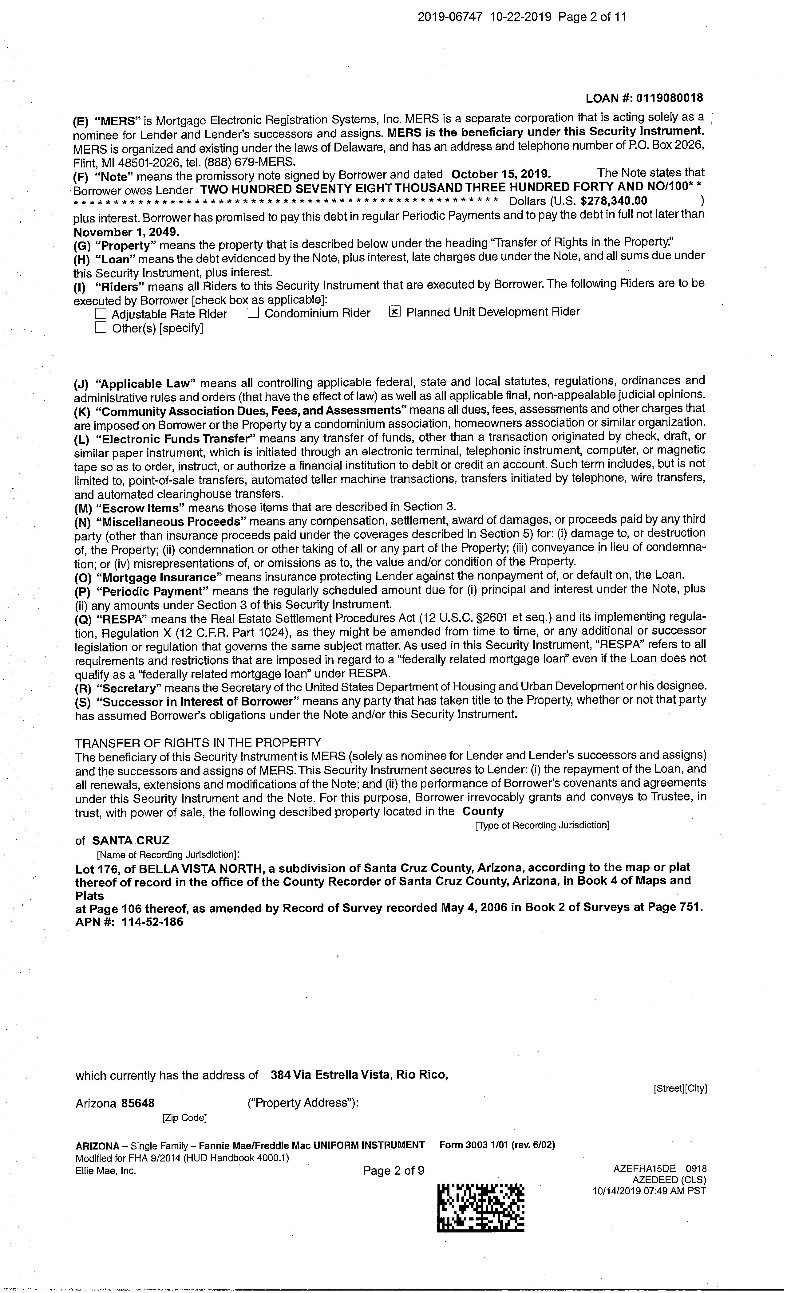 Subject Property : 384 Via Estrella Vis Rio Rico AZ 85648
