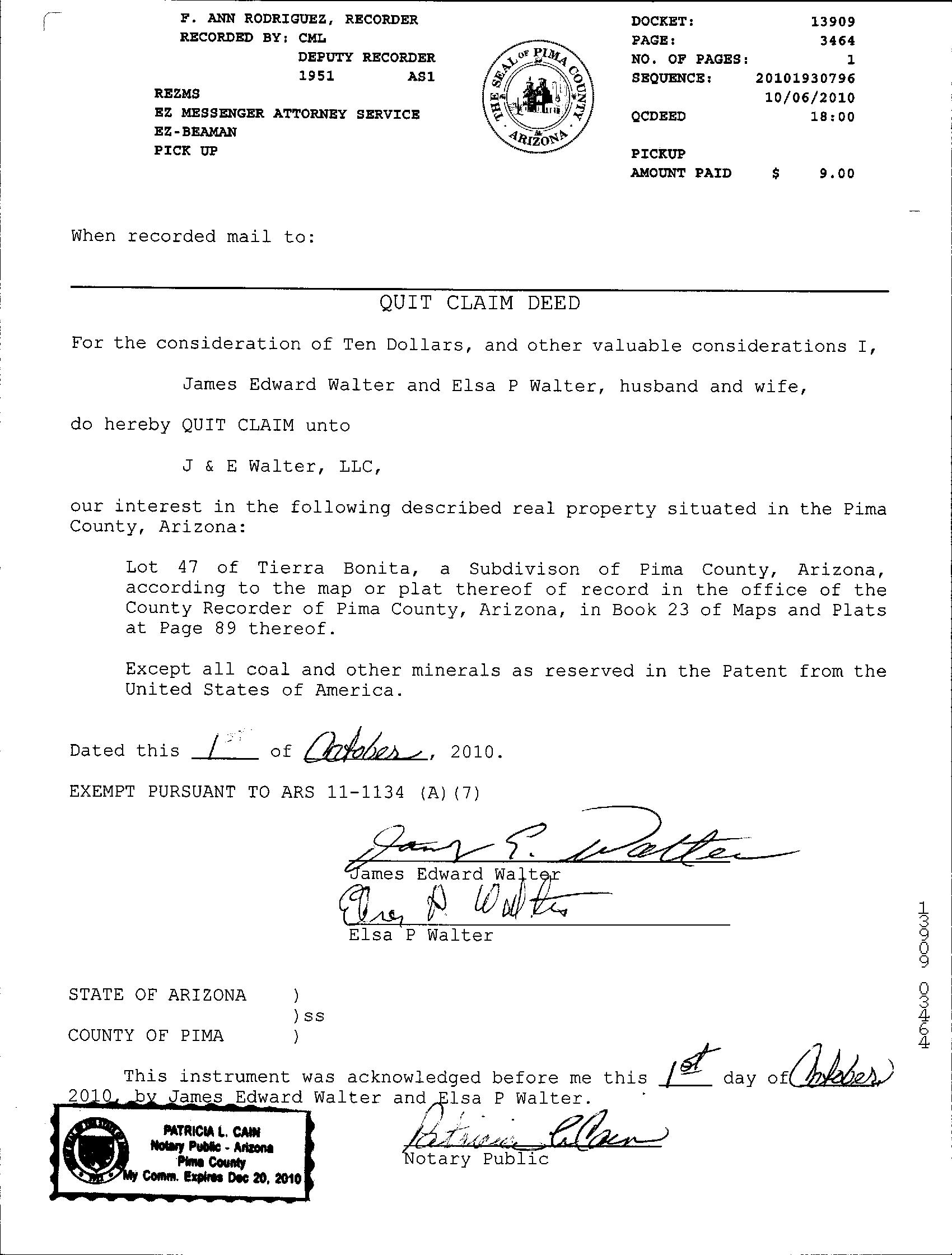 Subject Property : 3860 S Tucson Estates Pkwy # 1 Tucson AZ 85735
