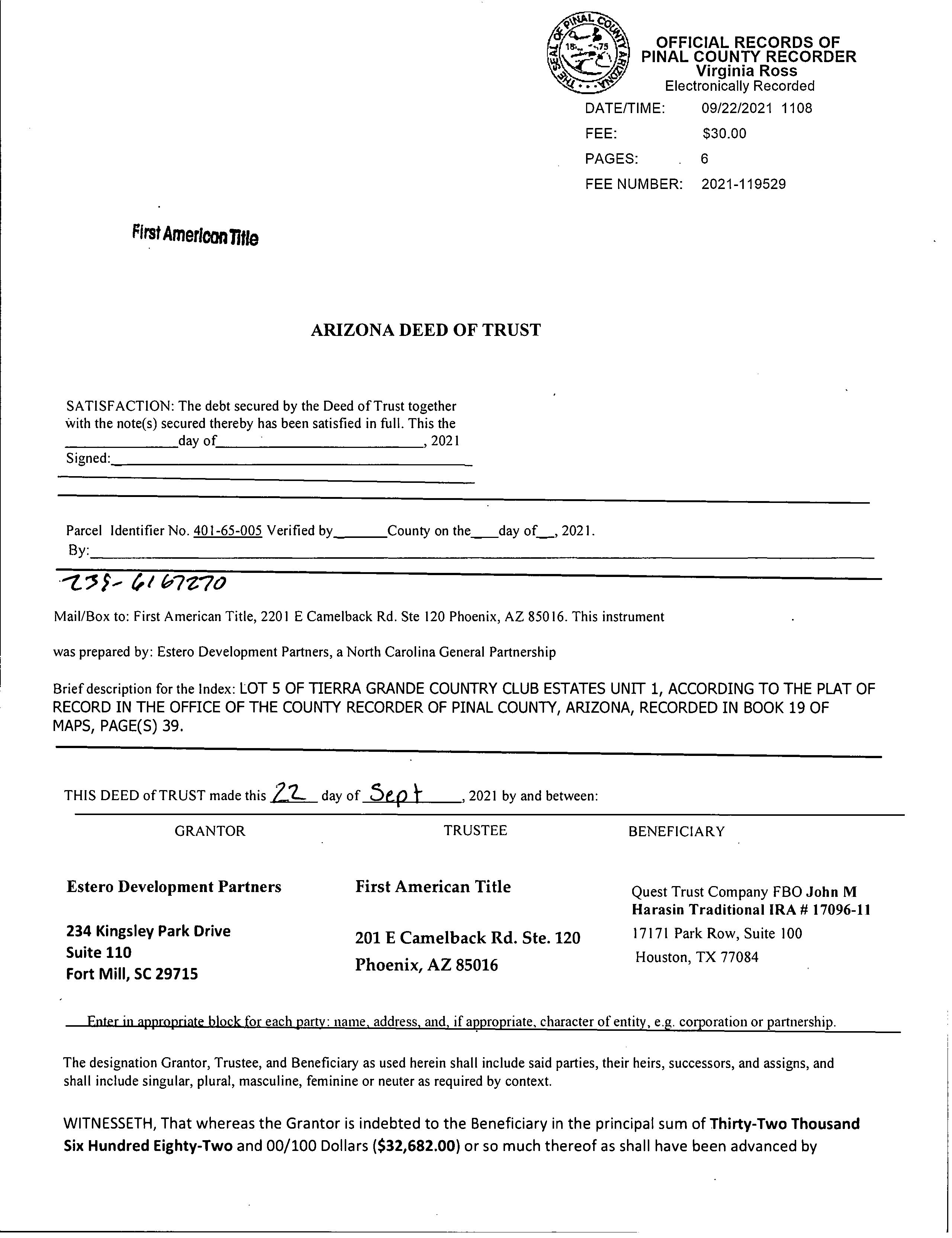 Owner Name: Estero Dev Partners / APN / Alternate APN: 401-65-005 / Deed Type: Warranty Deed
