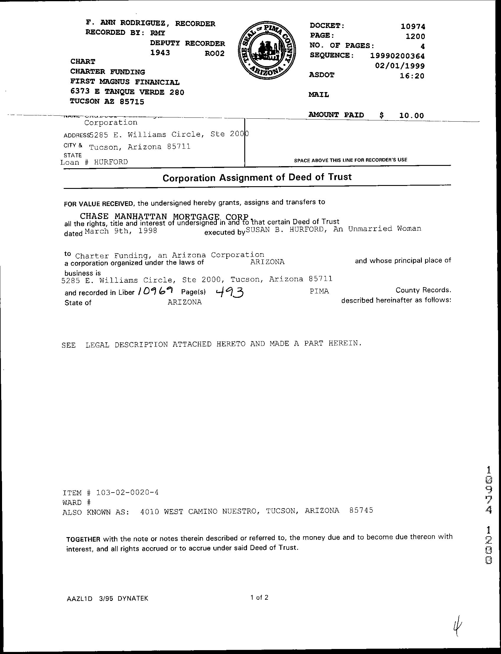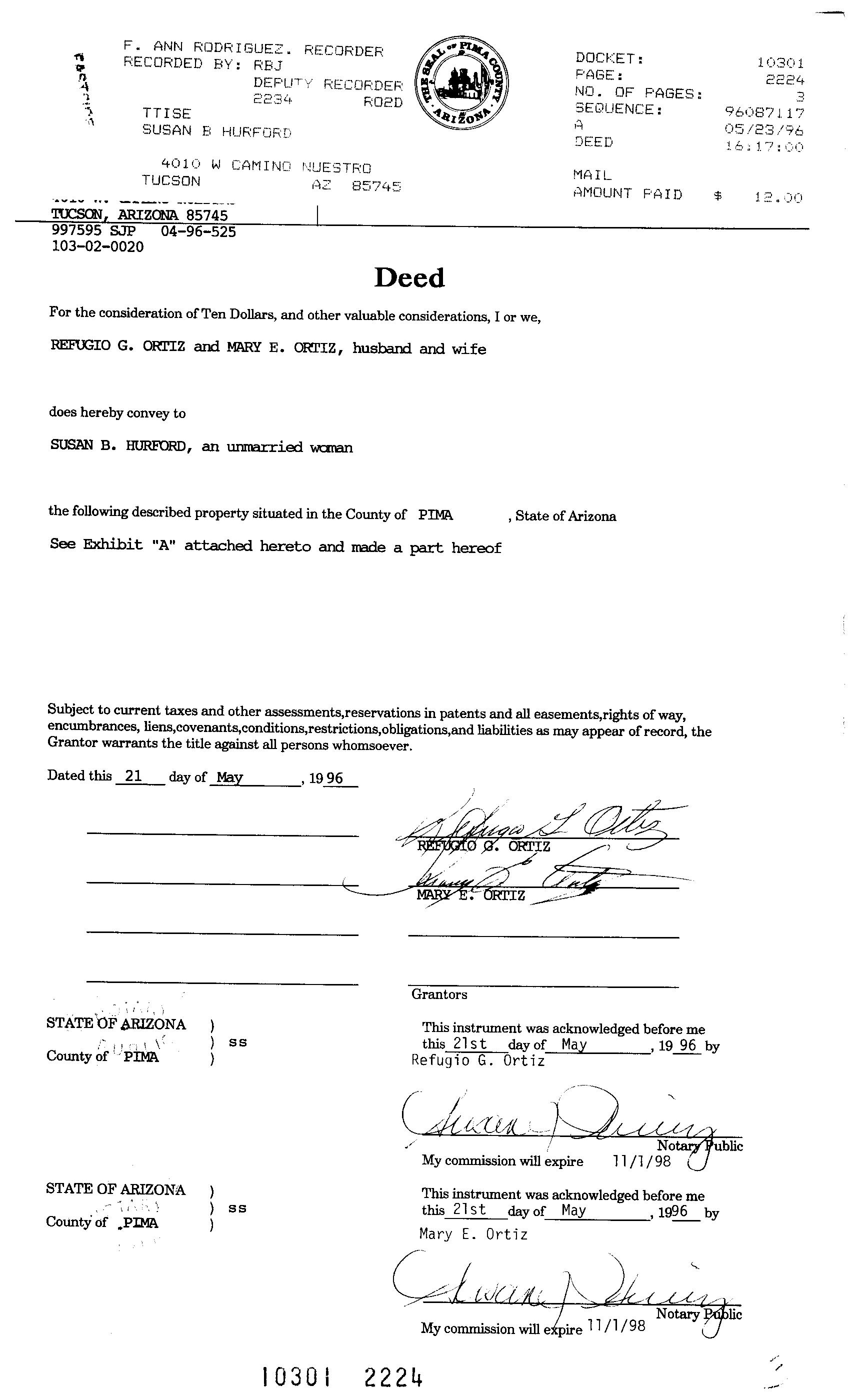 PARCEL: 103-02-0020 PARCEL: 103-02-0020 INSTRUMENT REC DATE