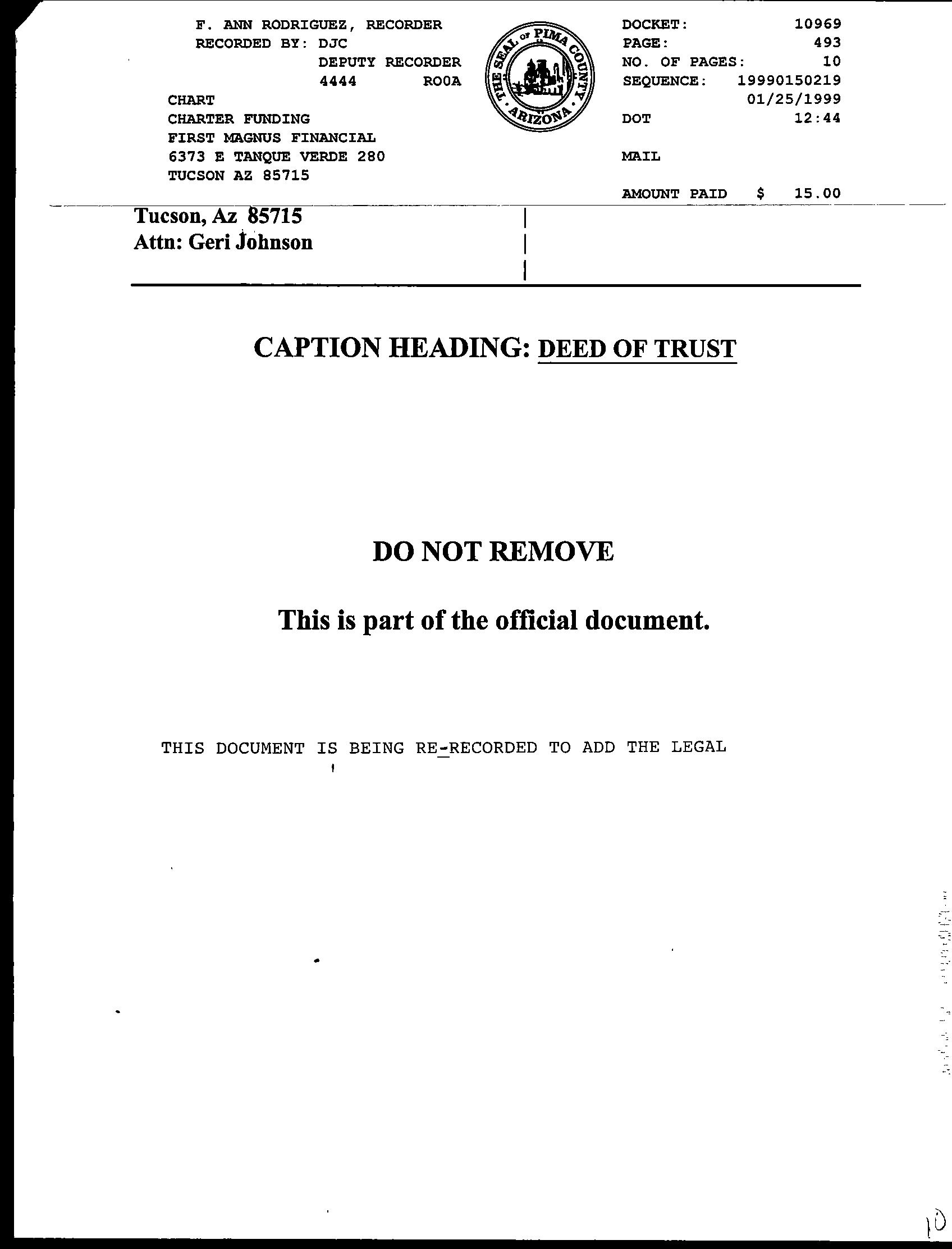 Document # : 10301-2224 1st Mtg Int. Rate/Type : / Adjustable Int Rate Loan