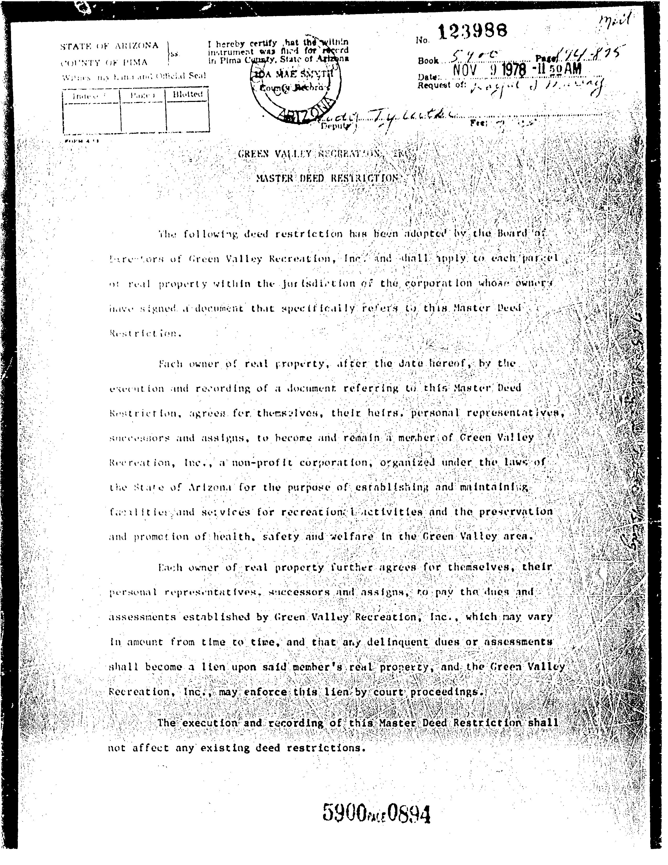 MAIL: 402 E LA ABRA GREEN VALLEY AZ 85614