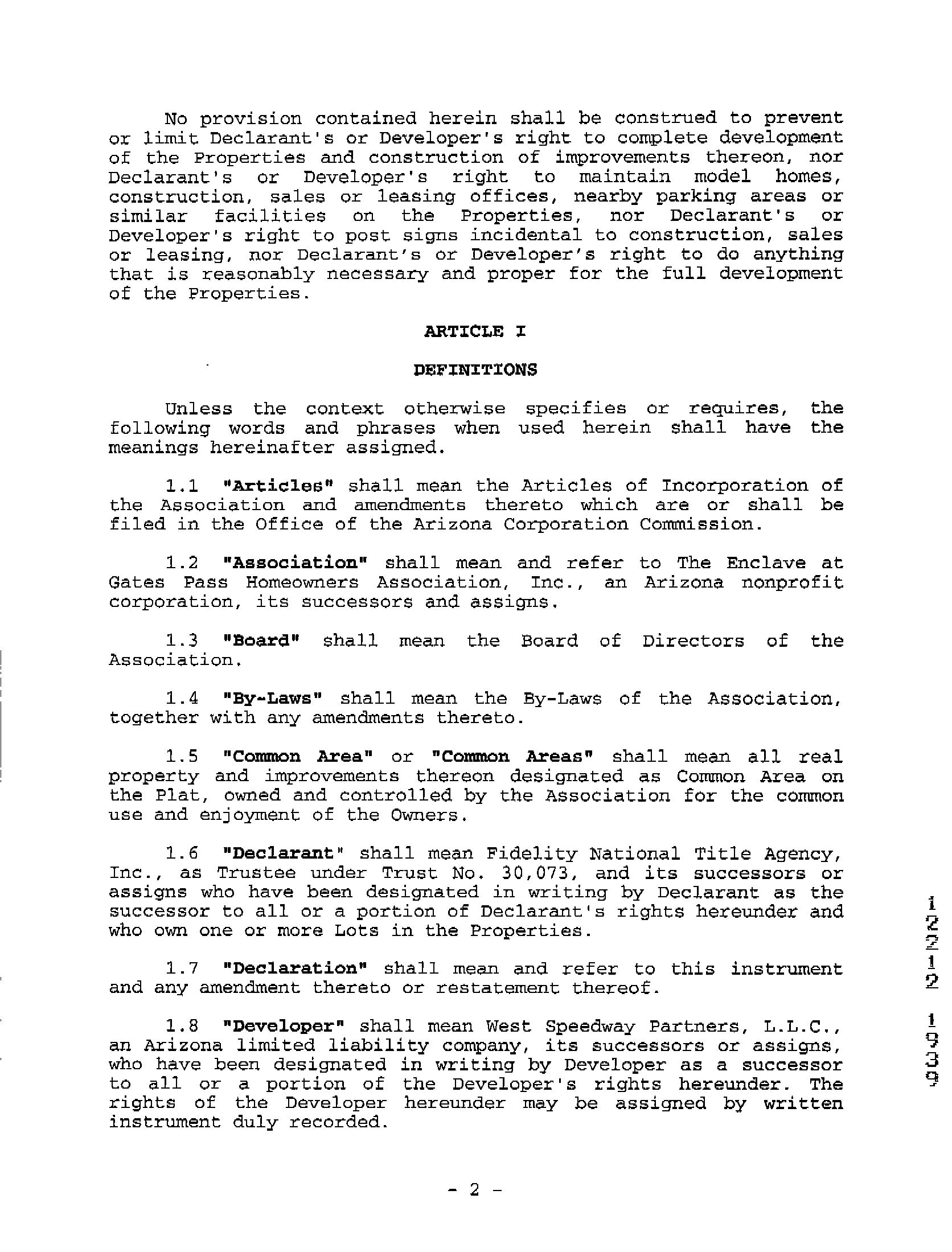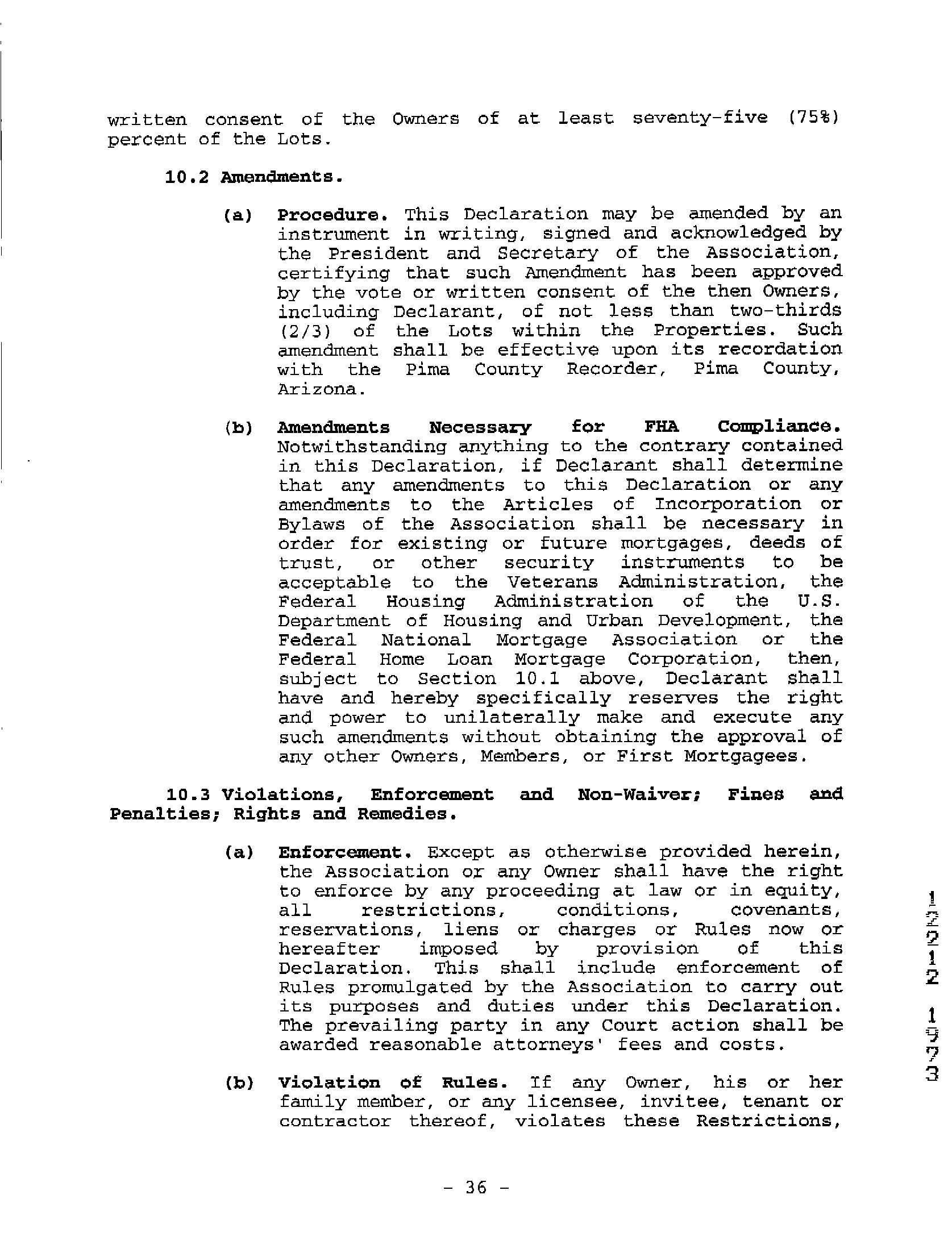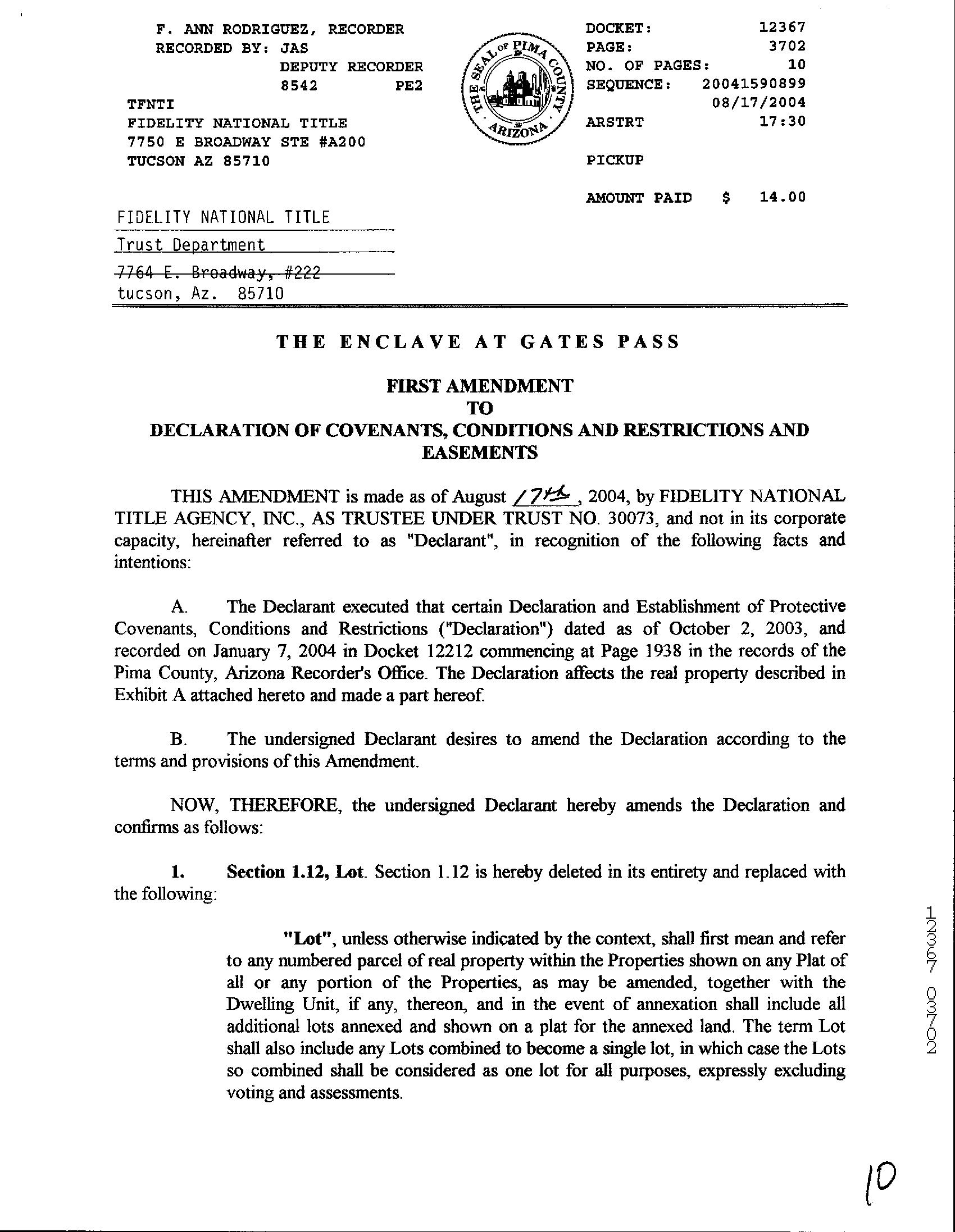 ©2021 First American Financial Corporation and/or its affiliates. All rights reserved. NYSE: FAF 05252610821 COVENANTS, CONDITIONS & RESTRICTIONS PREPARED FOR : First American Title Insurance Company, and the operating divisions thereof, make no express or implied warranty respecting the information presented and assume no responsibility for errors or omissions. First American, the eagle logo, First American Title, and firstam.com are registered trademarks or trademarks of First American Financial Corporation and/or its affiliates. 4091 W. Gates Creek Ct. Tucson, AZ 85745