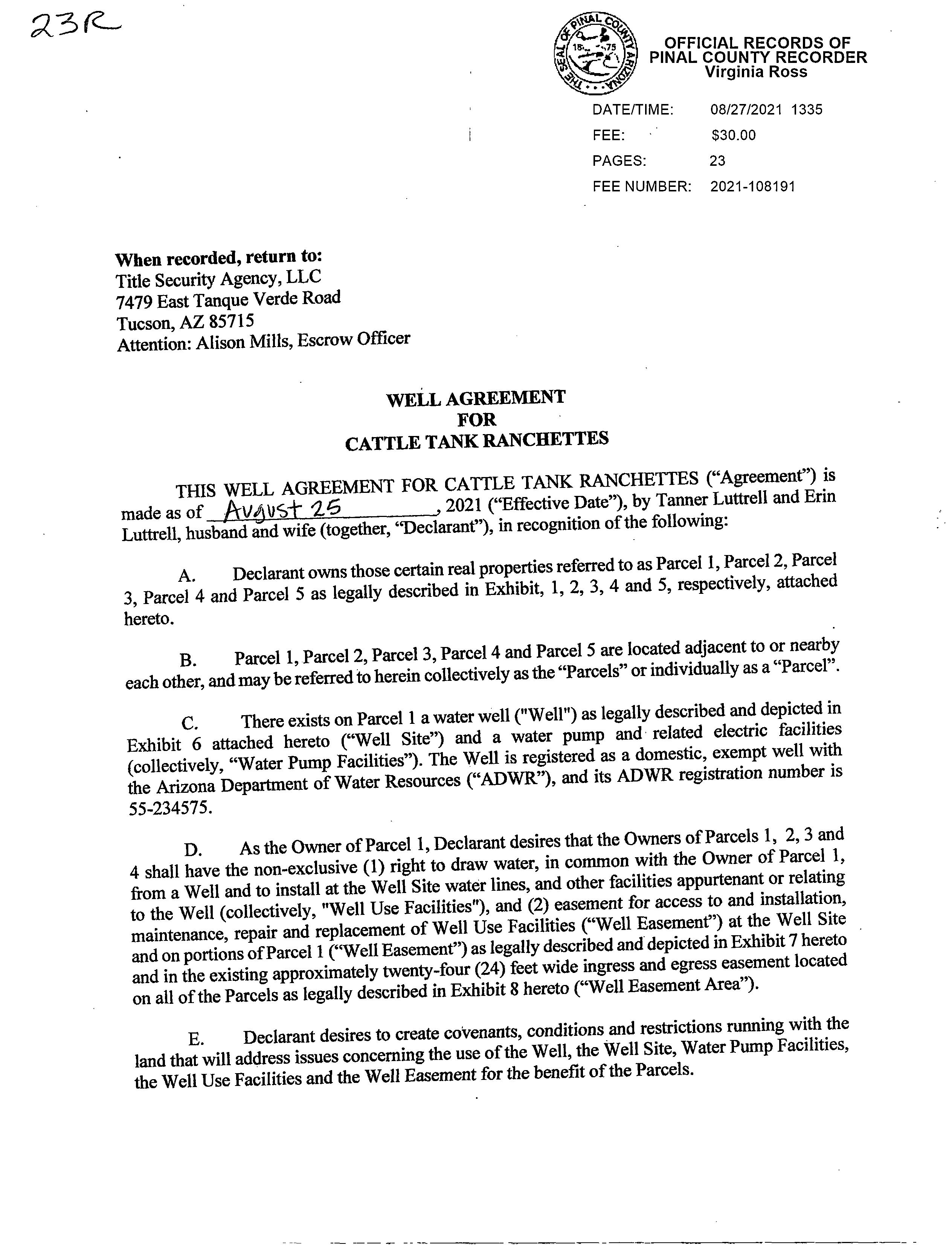 PINAL (PL), AZ Document:XGR 2021.108191 Page:1 of 23 Printed on:10/25/2022 10:24 AM Branch :FC0 User :JSTI