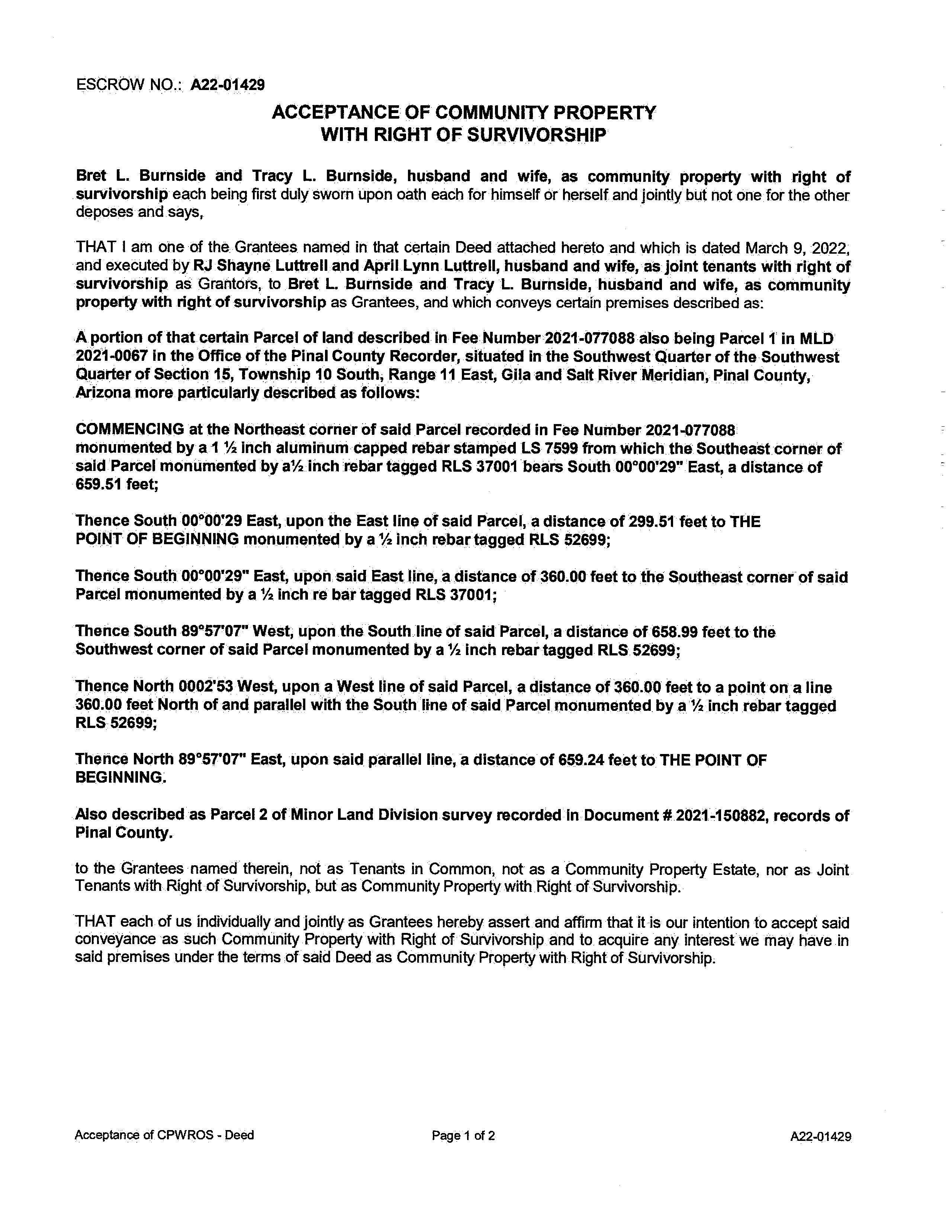 PINAL (PL), AZ Document:DED WAR 2022.30669 Page:2 of 4 Printed on:10/25/2022 10:16 AM Branch :FC0 User :JSTI