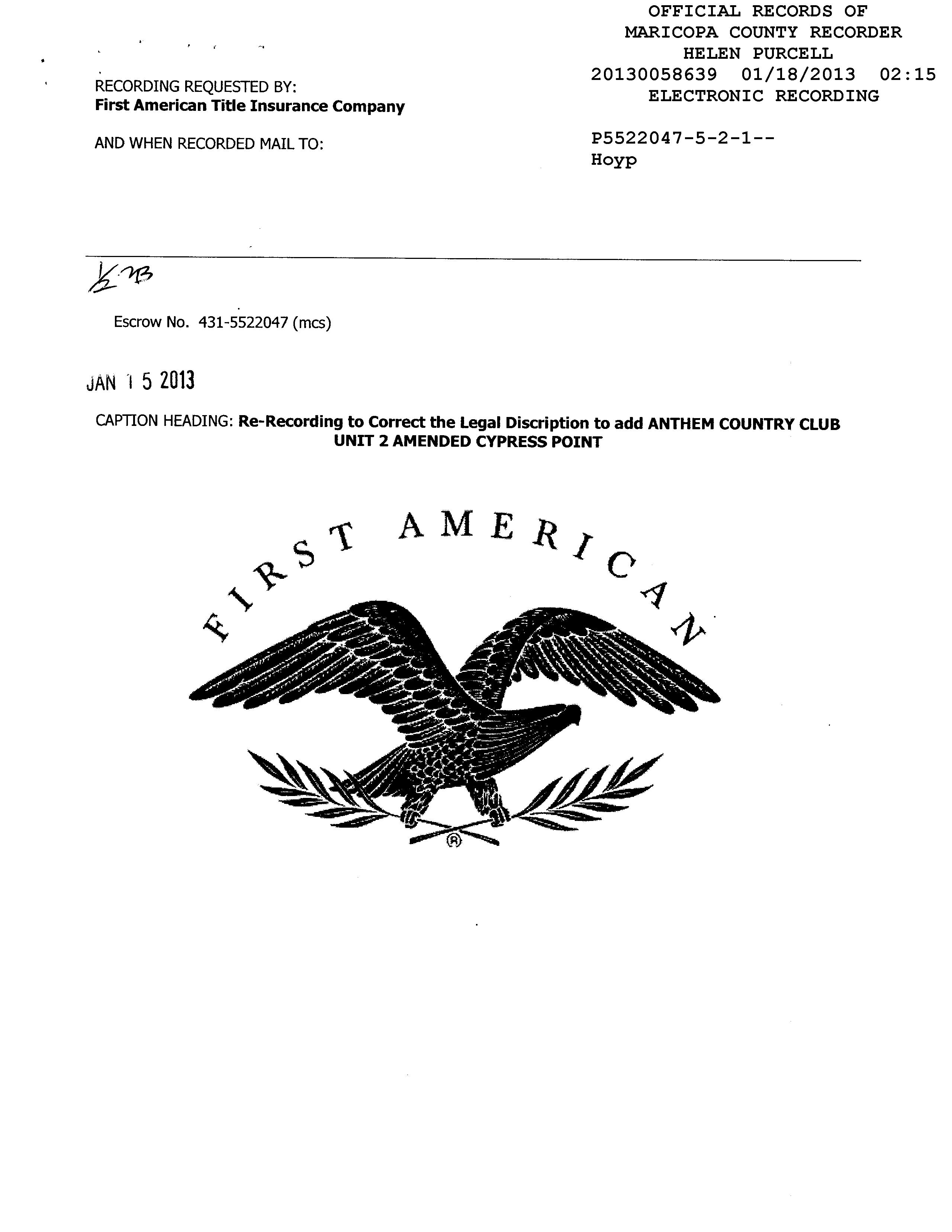 Subdivision : Anthem Country Club Unit 2 Cypress Point Amd