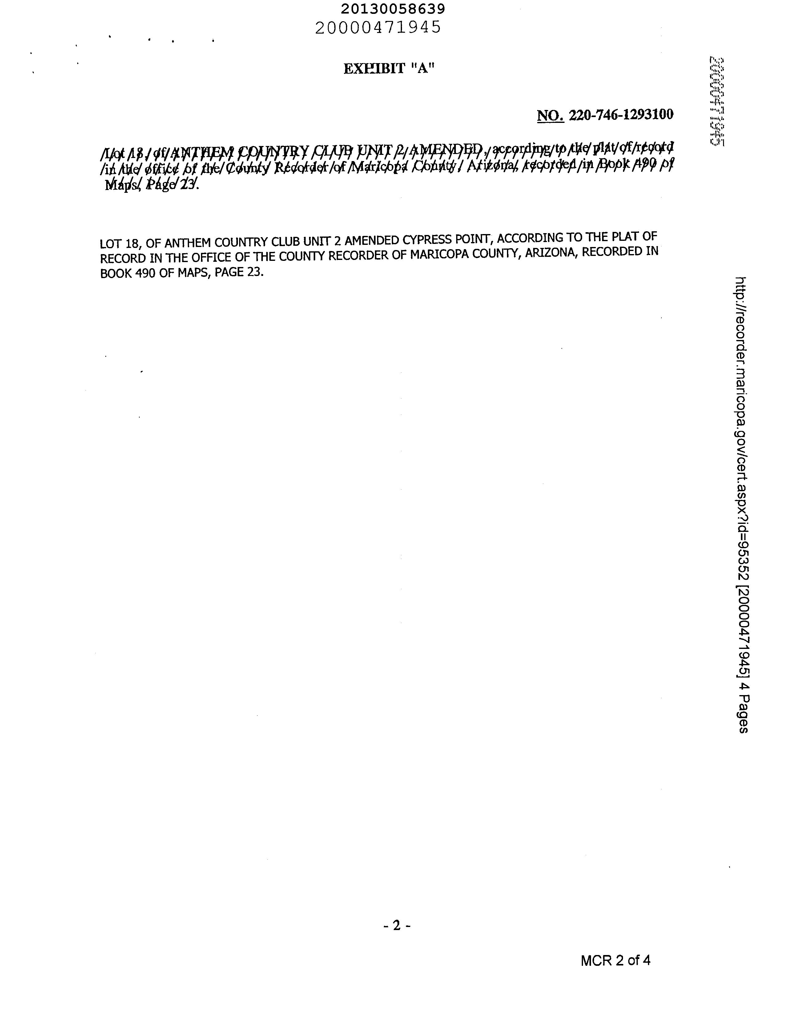 Legal Description : Lot 18 Anthem Country Club Unit 2 Cypress Point Amd Mcr 490-23