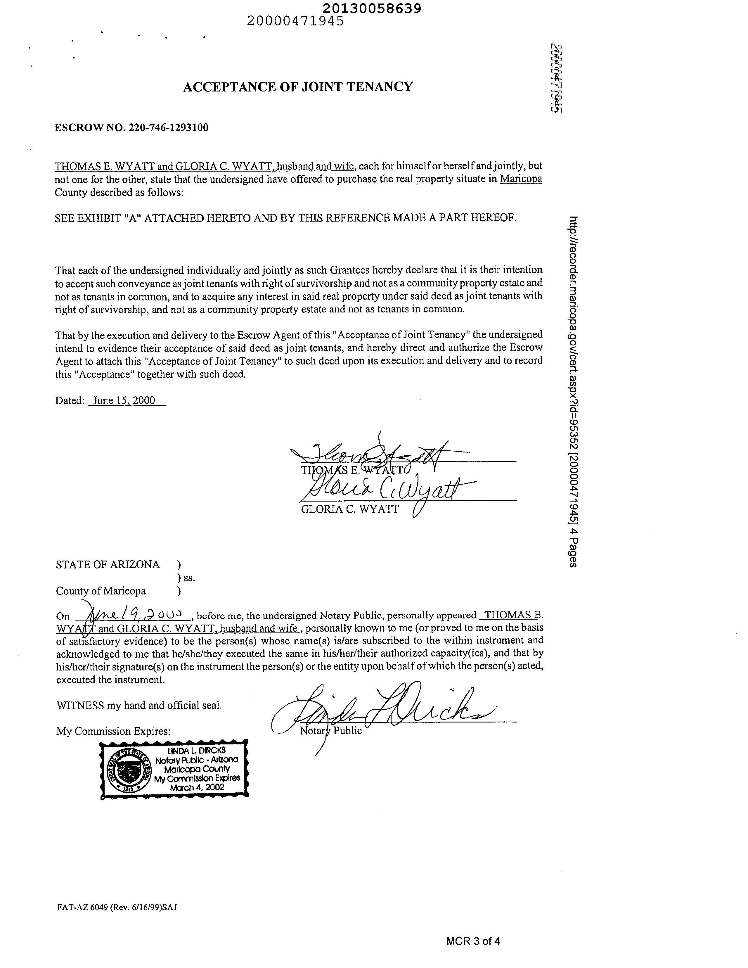 Owner Name : Wyatt Thomas E / Wyatt Gloria C