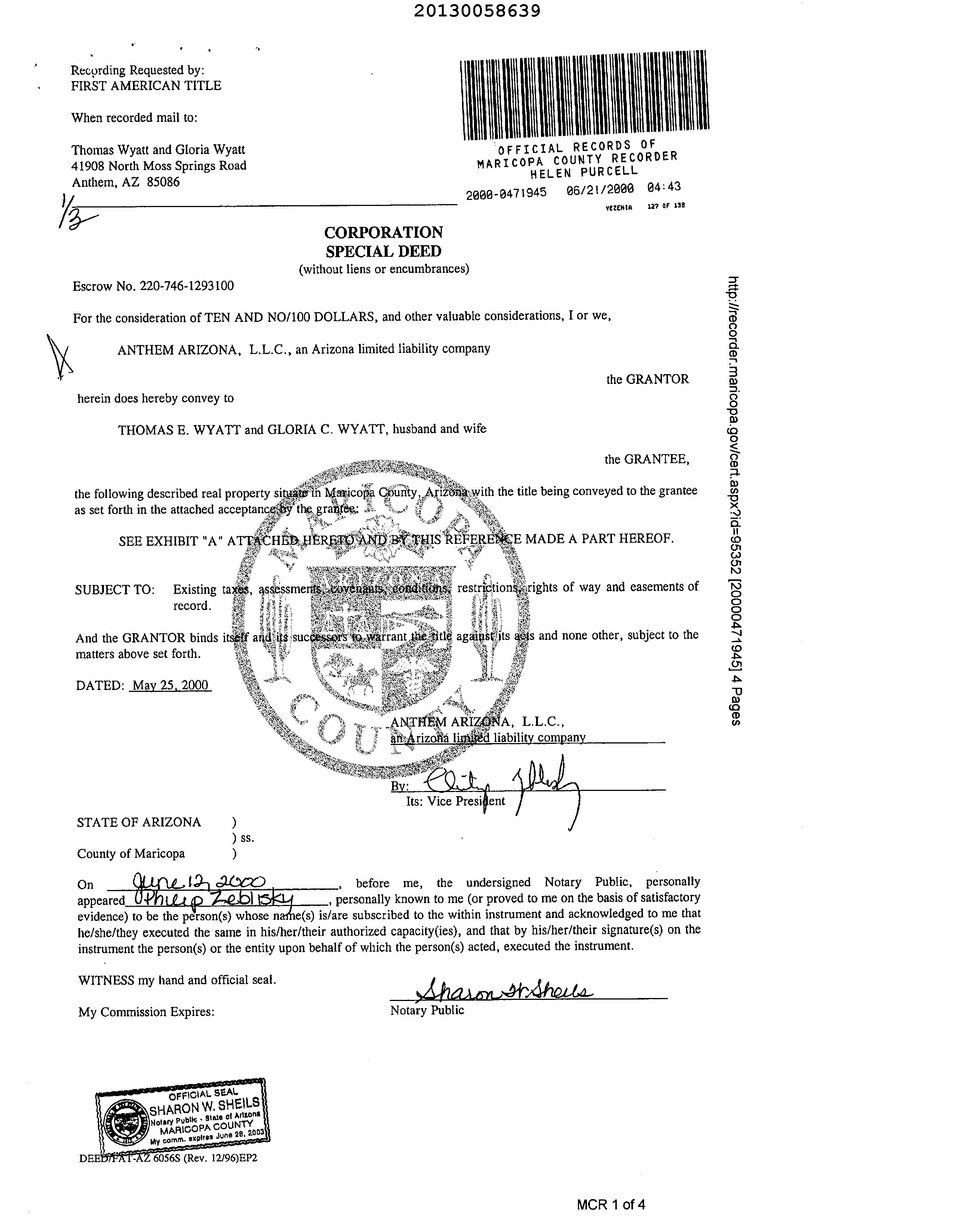 Recording/Sale Date : 06/21/2000 / 05/25/2000