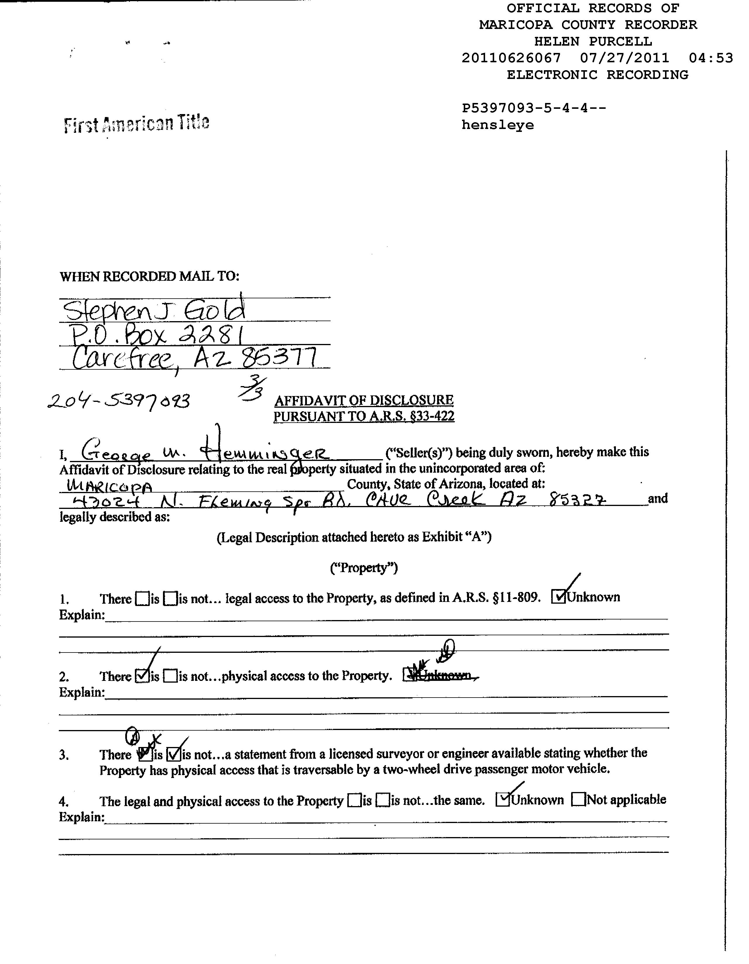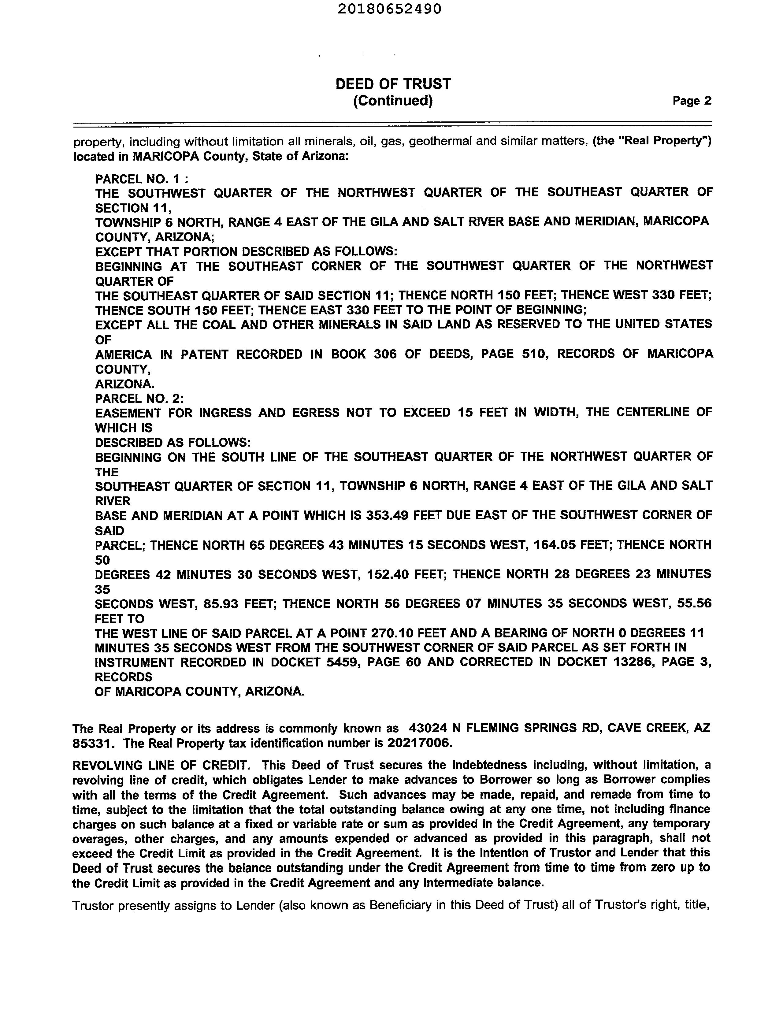 Subject 43024 N Fleming Springs Rd Cave Creek AZ 85331 Gold Stephen J Mailing Address : Po Box 644, Cave Creek AZ 85327-0644 B010 Location Description : Sw4 Nw4 Se4 Ex S 150' Of E 330' 8.86 Ac Maricopa, Az APN : 202-17-006