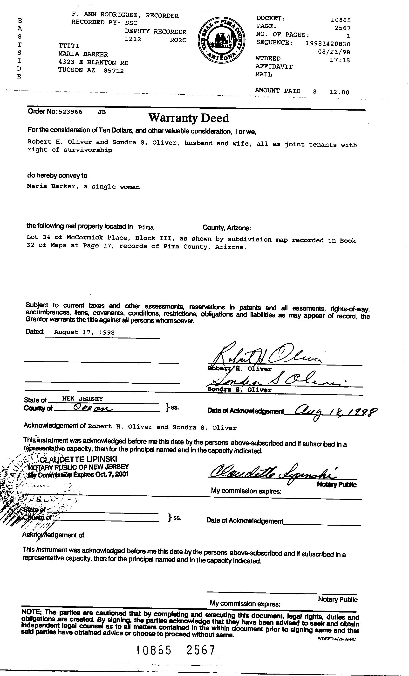 Recording/Sale Date : 08/21/1998 / 08/00/1998