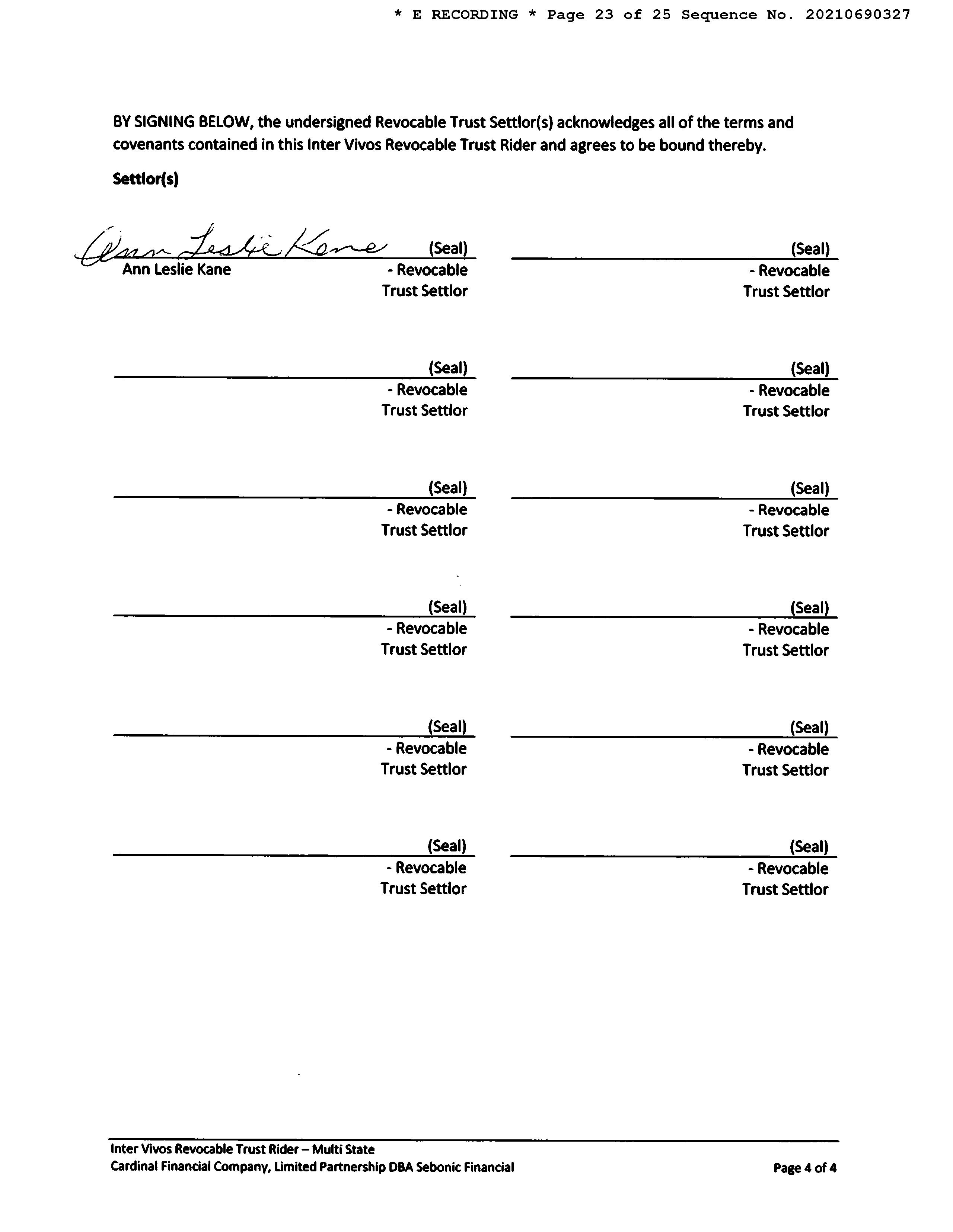 Vesting Codes : / / Revocable Trust