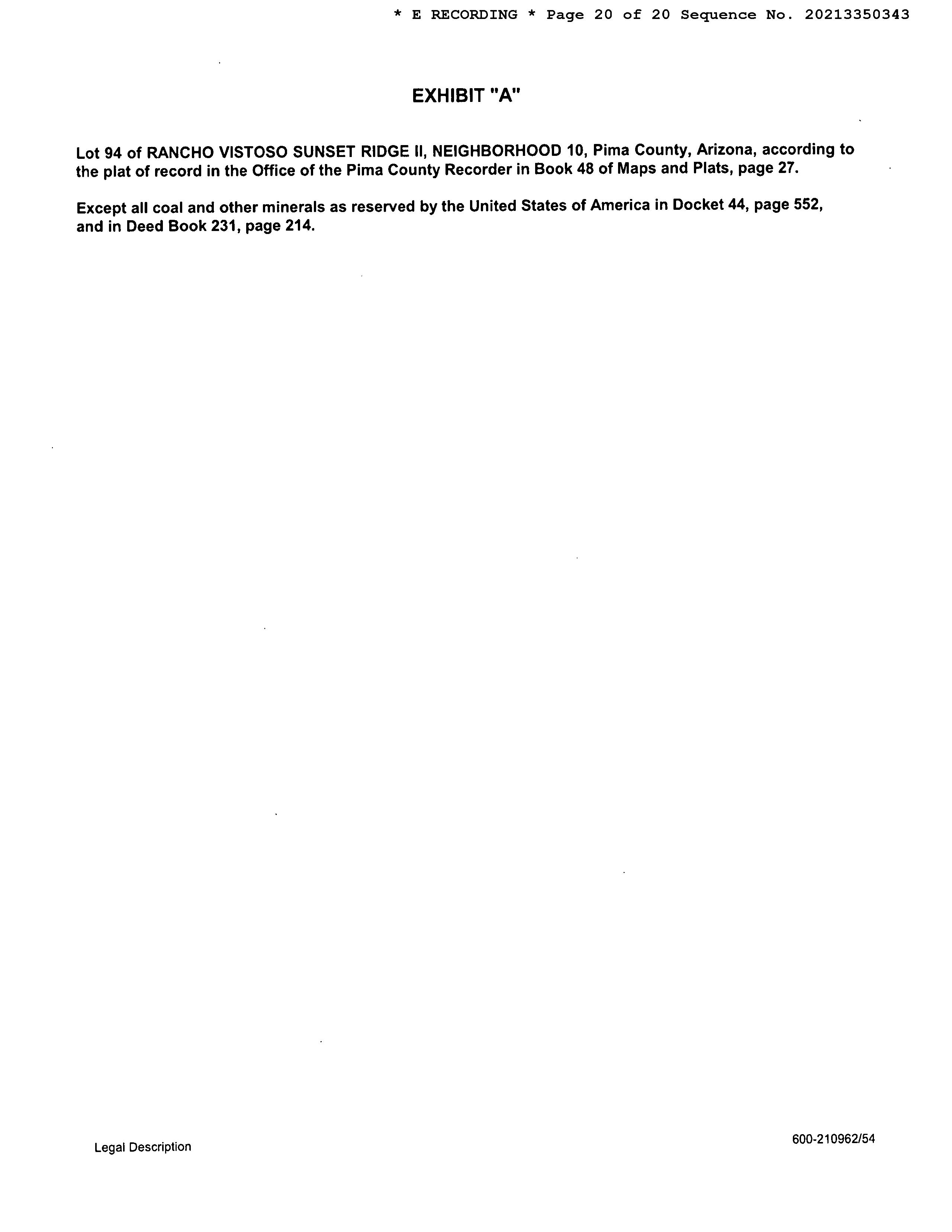 Legal Description : Rancho Vistoso Sunset Ridge Ii Lot 94 Neighborhood 10 County : Pima, Az